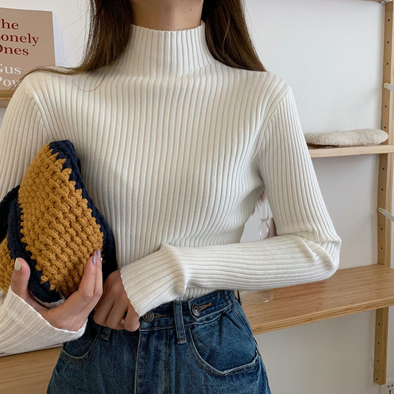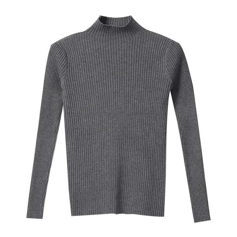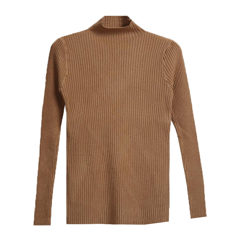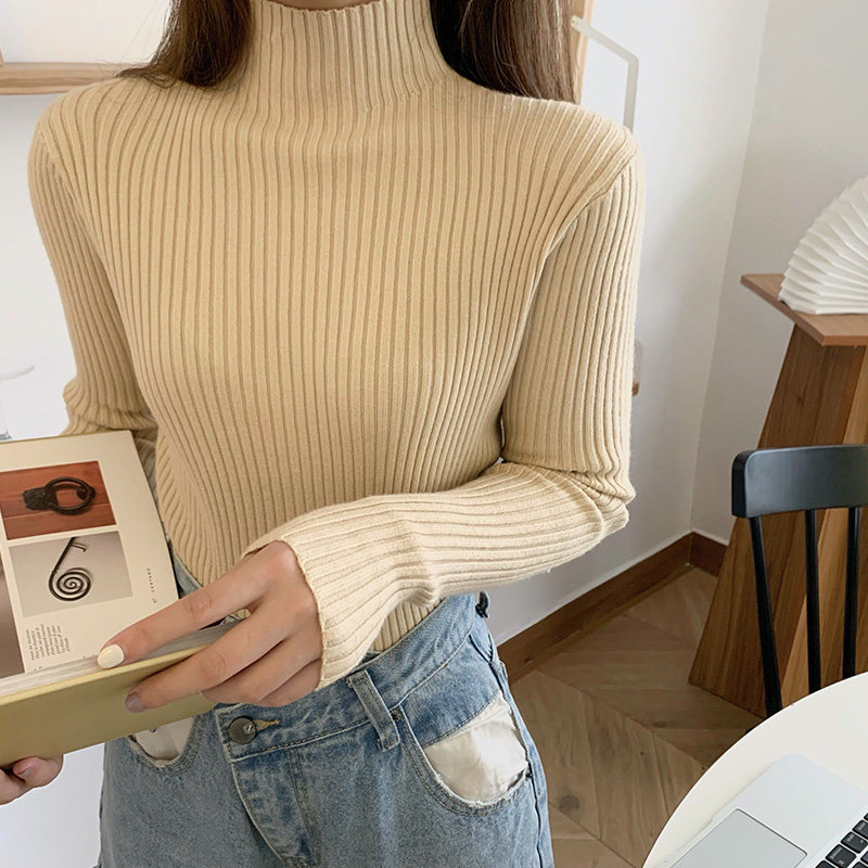 Свитер, базовый приятный телу демисезонный приталенный трикотажный лонгслив, высокий воротник, коллекция 2021, в западном стиле, в обтяжку