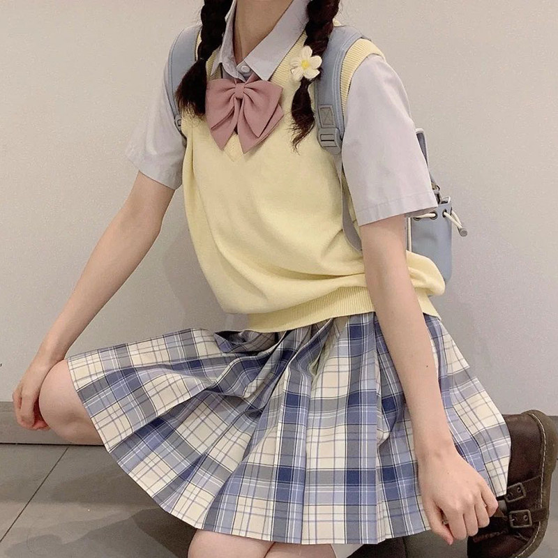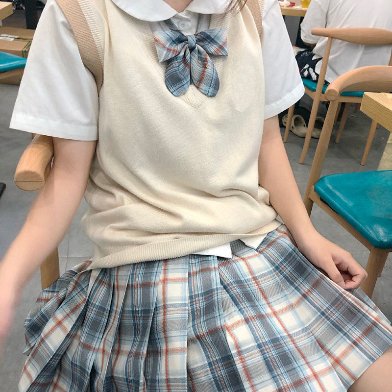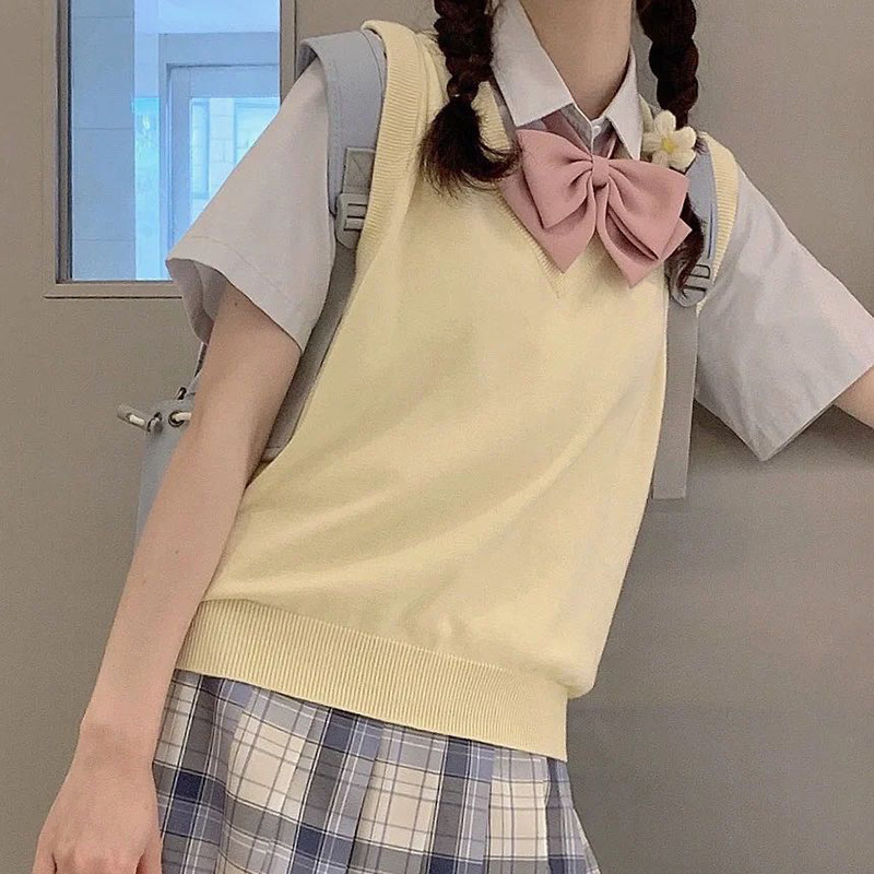 Базовый жилет, майка топ, осенняя куртка, японская школьная юбка для школьников и студентов, трикотажный свитер, V-образный вырез