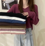 Трикотажный осенний модный свитер, базовый приятный телу лонгслив, в западном стиле, оверсайз