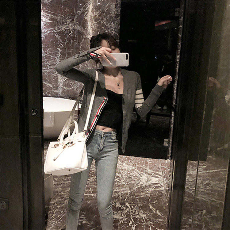 Трикотажный осенний свитер, кардиган, лонгслив, куртка, в корейском стиле, защита от солнца, в западном стиле