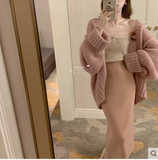 Свитер, куртка, трикотажный кардиган, увеличенная толщина, 2021 года, в западном стиле, свободный крой