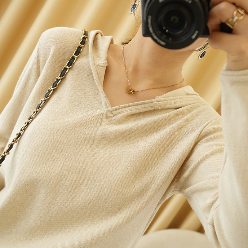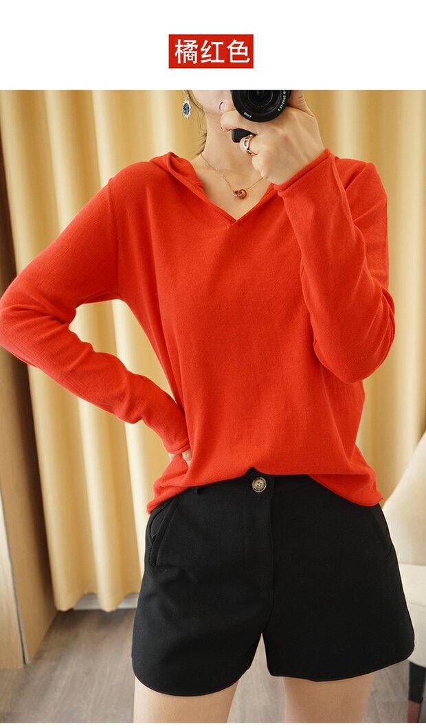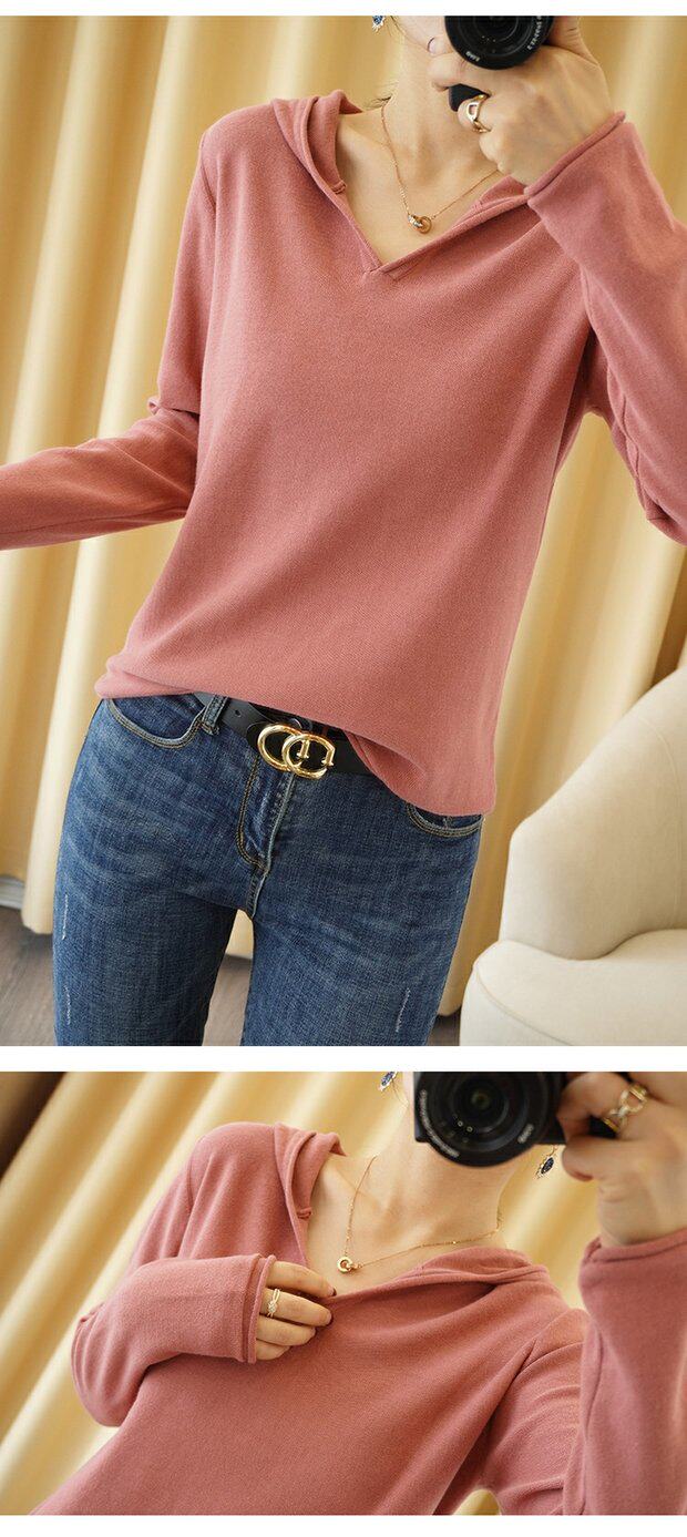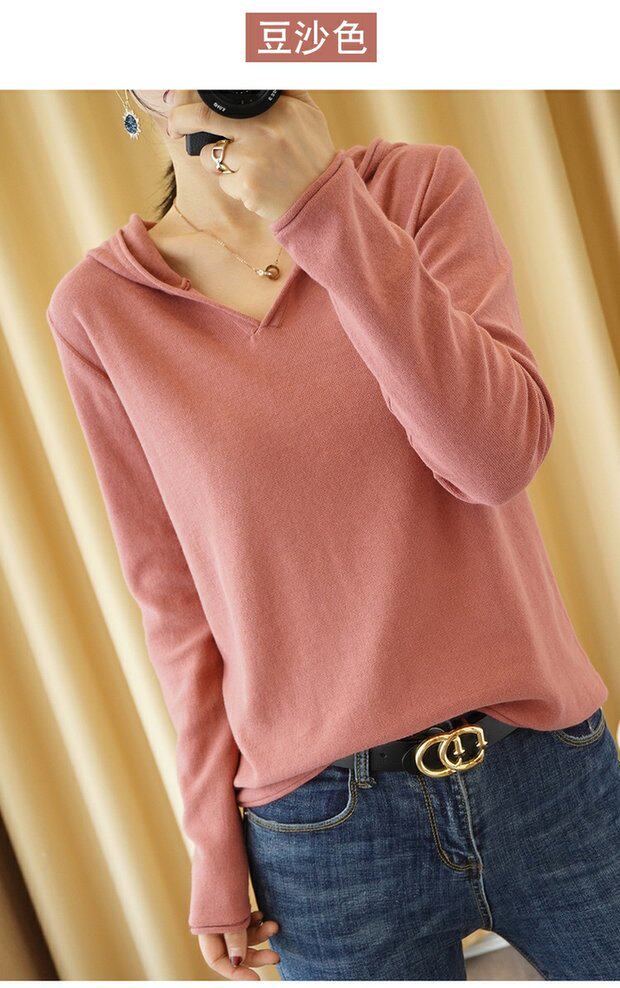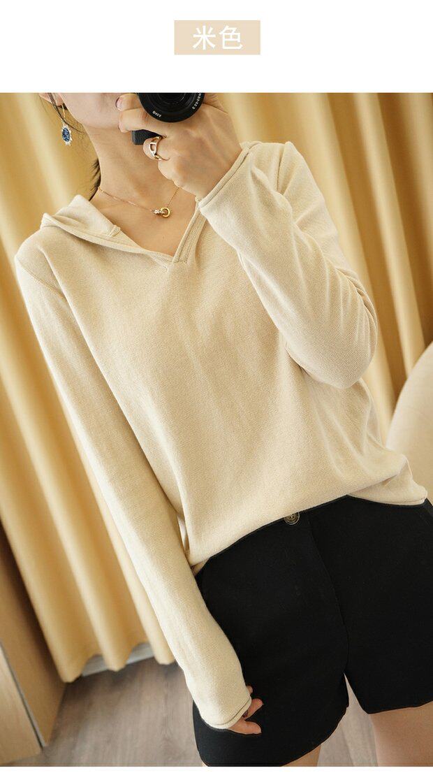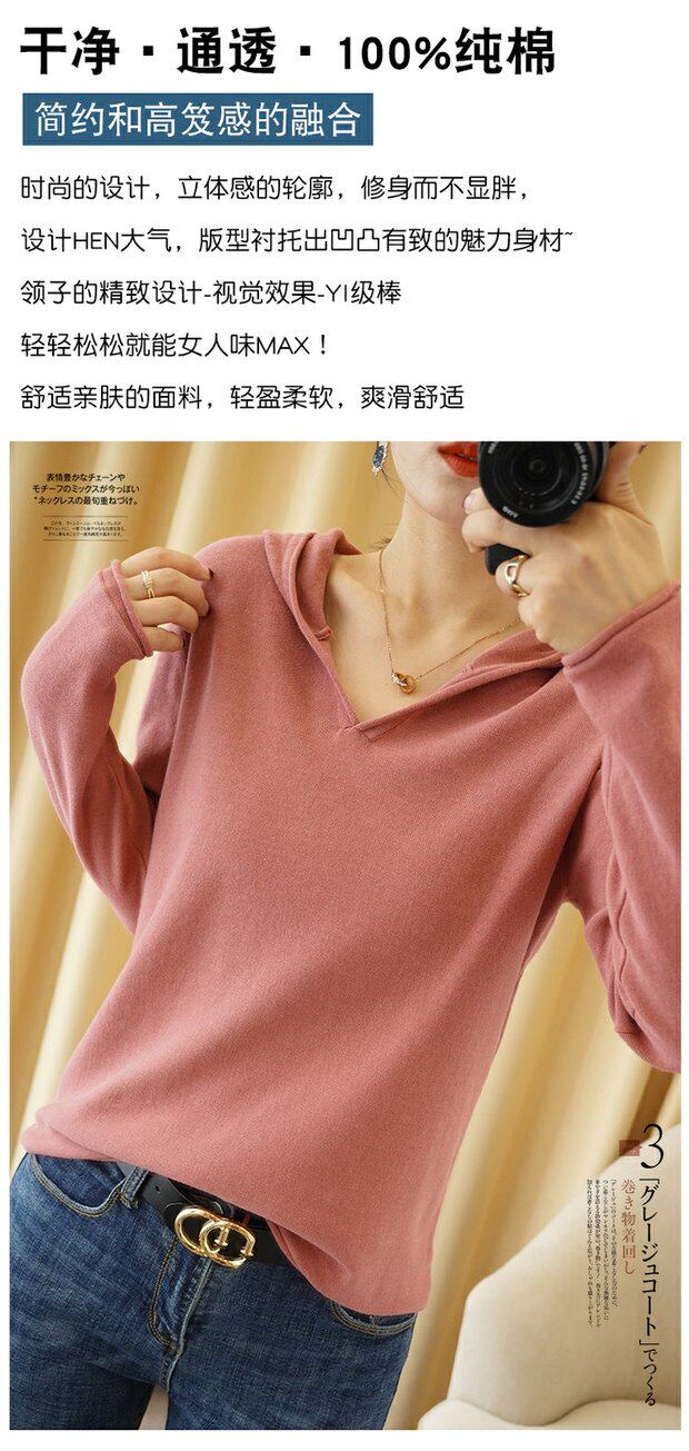 Демисезонный свитер, трикотажный лонгслив, базовый приятный телу балахон, из хлопка и льна, оверсайз, V-образный вырез