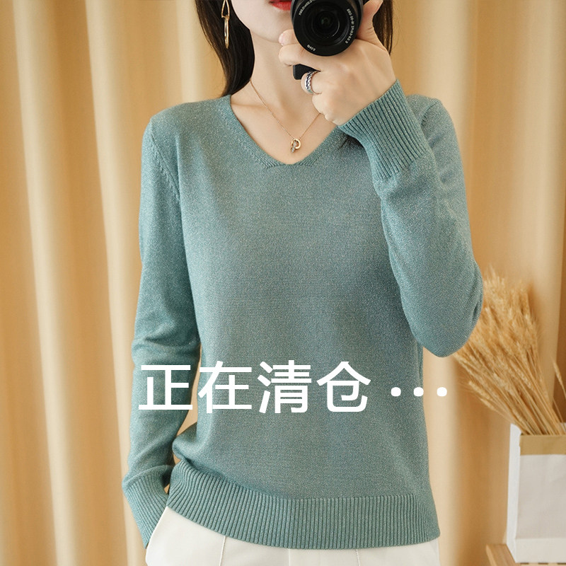 Осенний трикотажный свитер, тонкий модный лонгслив, V-образный вырез