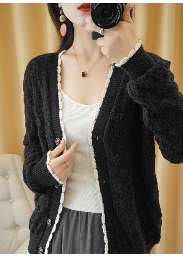 Хлопковый кардиган, куртка, лонгслив, осенний свитер, оверсайз, в западном стиле