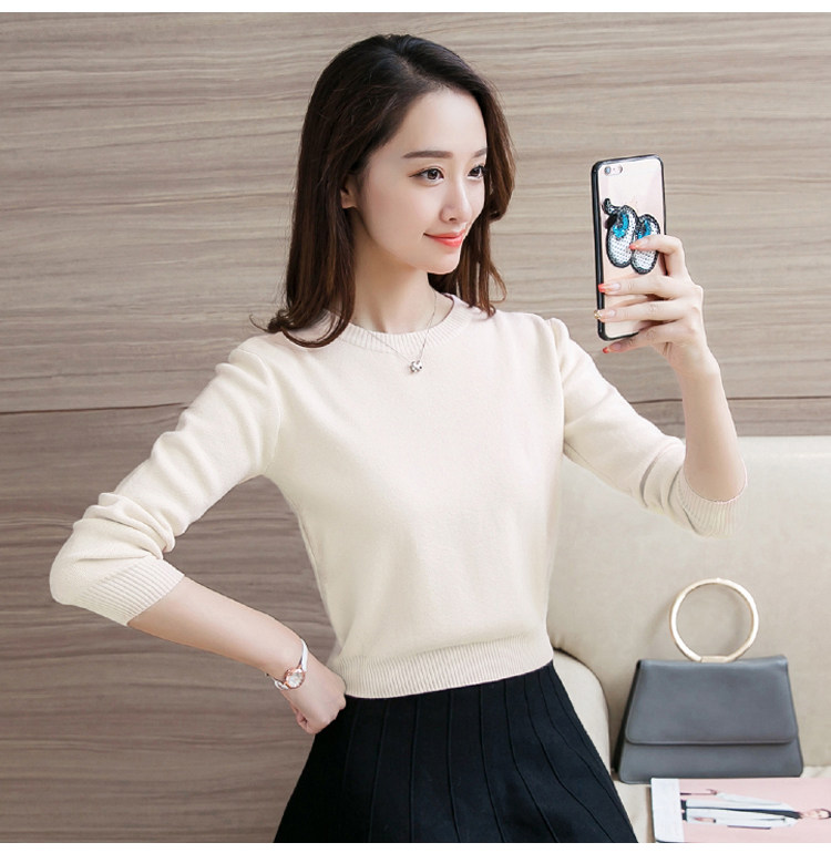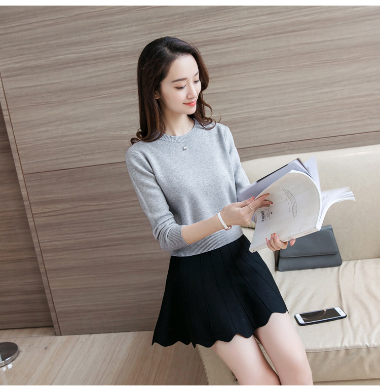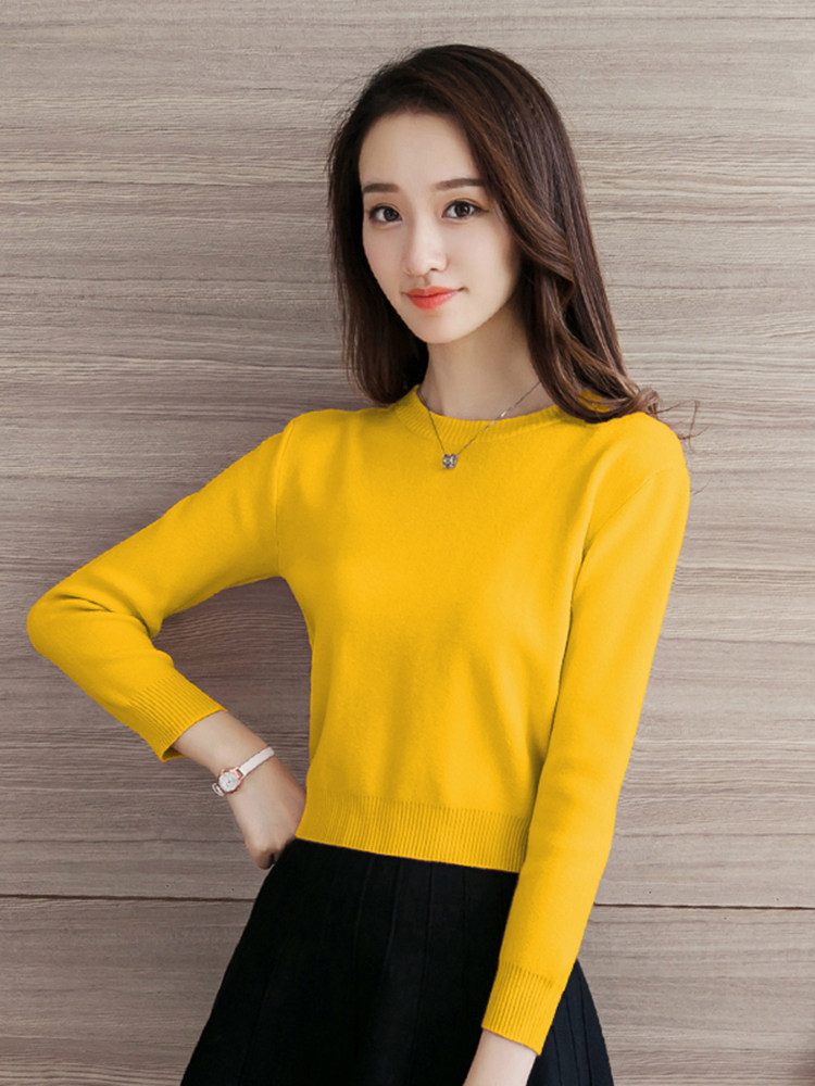 Шерстяной короткий базовый приятный телу свитер