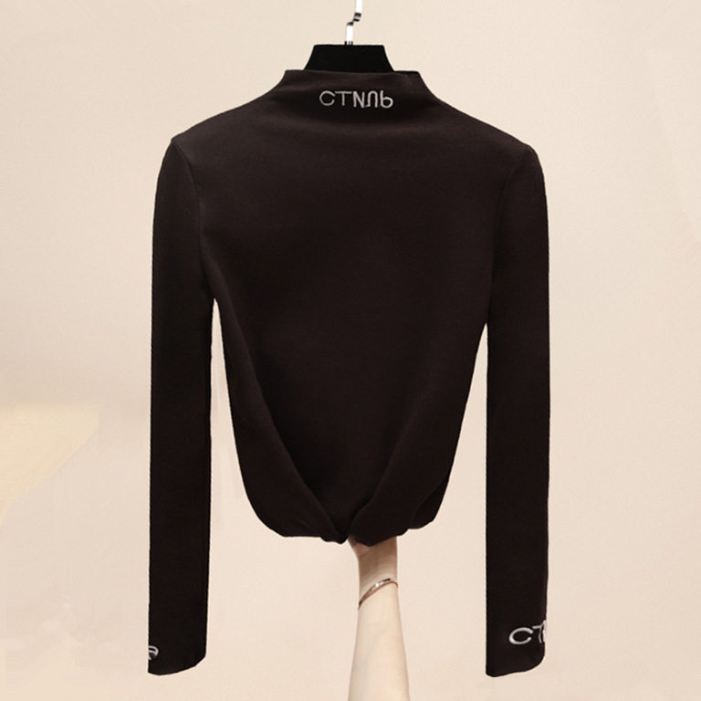 Черный базовый приятный телу весенний осенний демисезонный трикотажный лонгслив, футболка, высокий воротник, облегающий крой, 2022