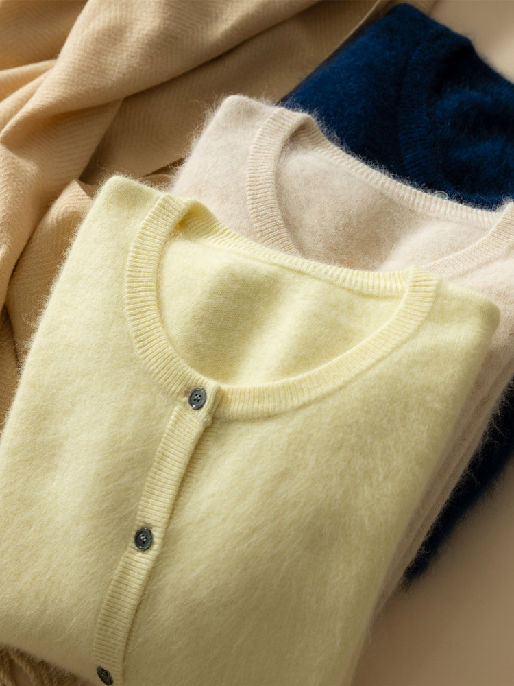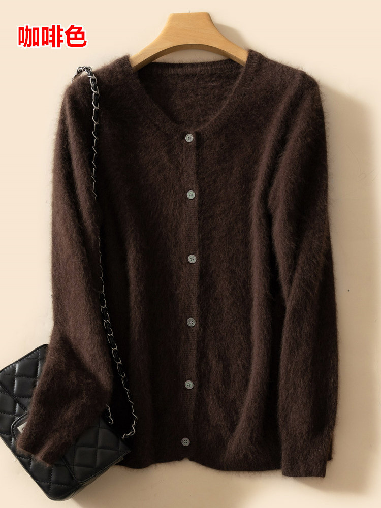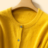 Осенний кардиган с круглым воротником, шерстяная куртка, свитер, короткая бархатная рубашка, большой размер