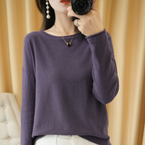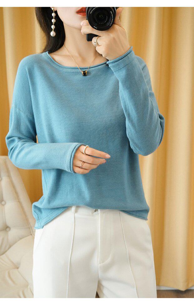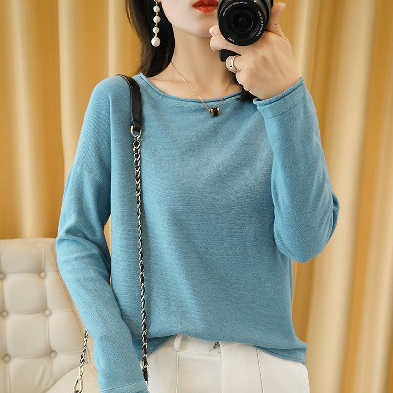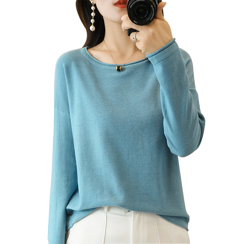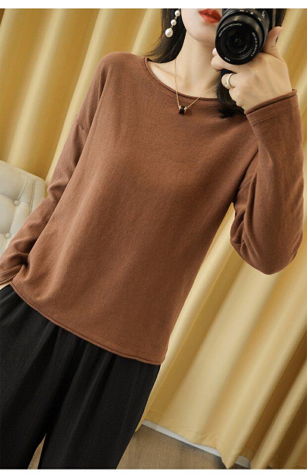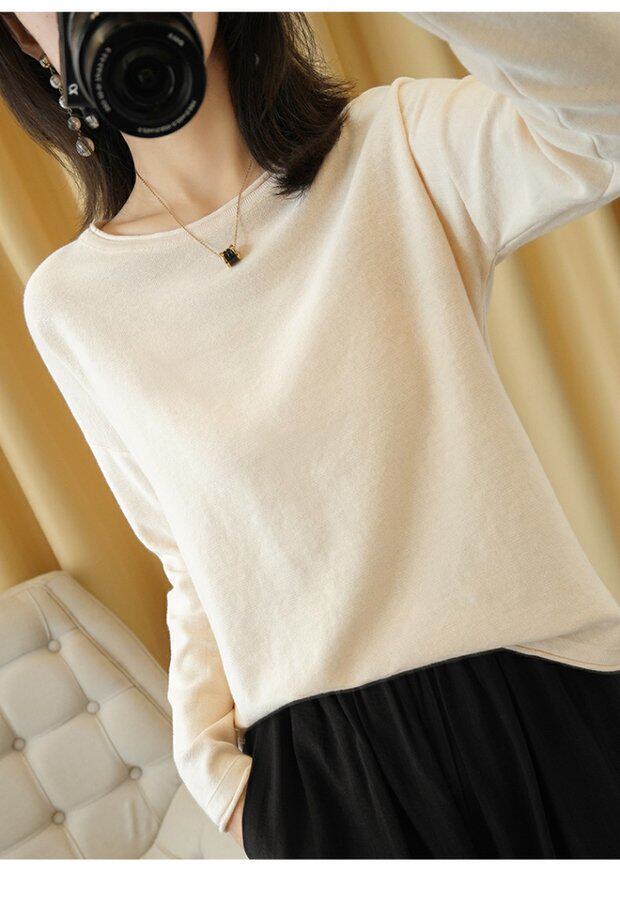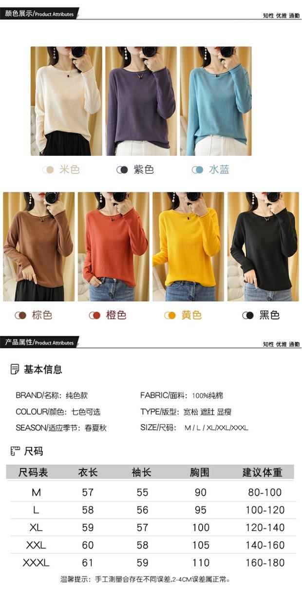 Тонкий хлопковый трикотажный свитер с круглым воротником, лонгслив, базовые приятные телу нарукавники, большой размер