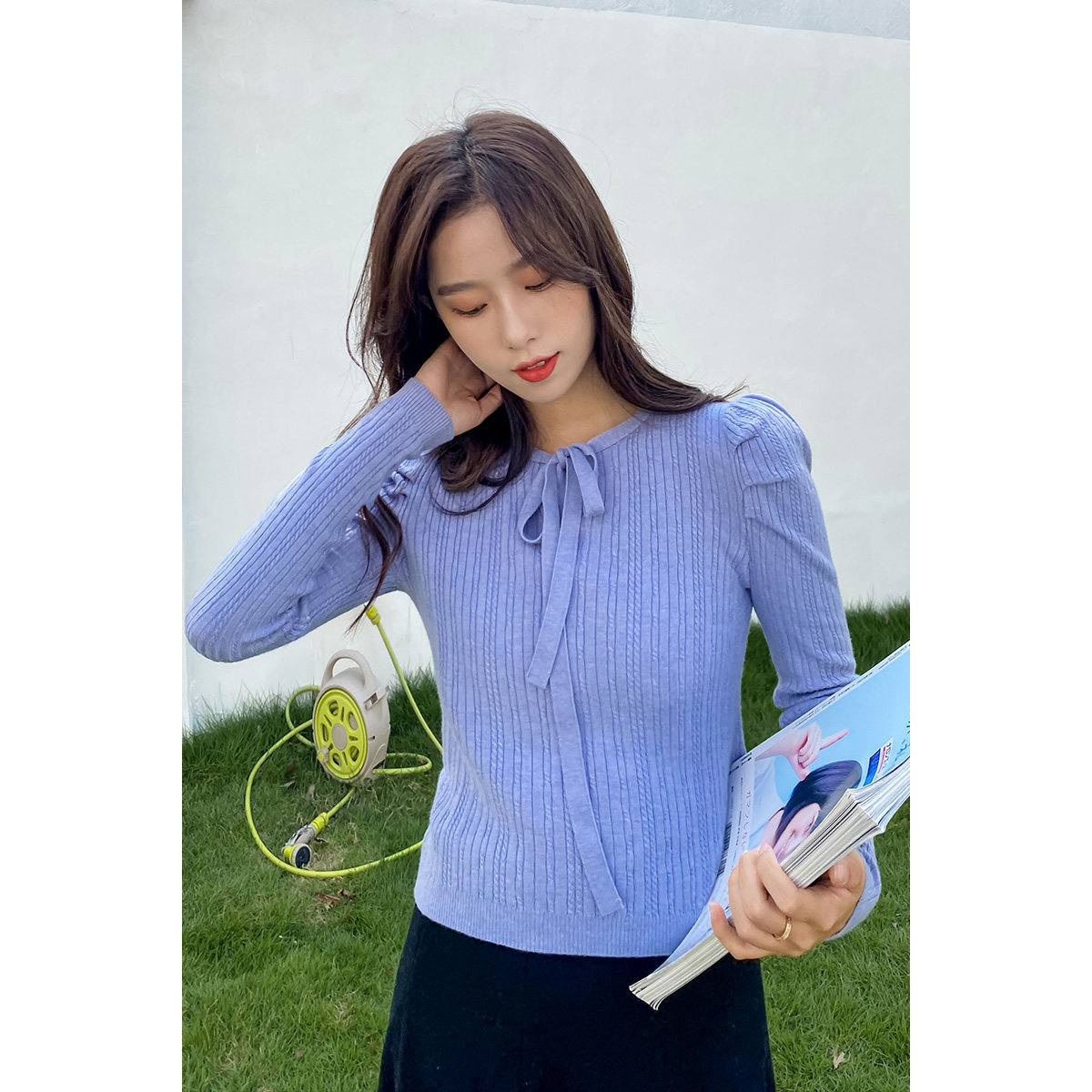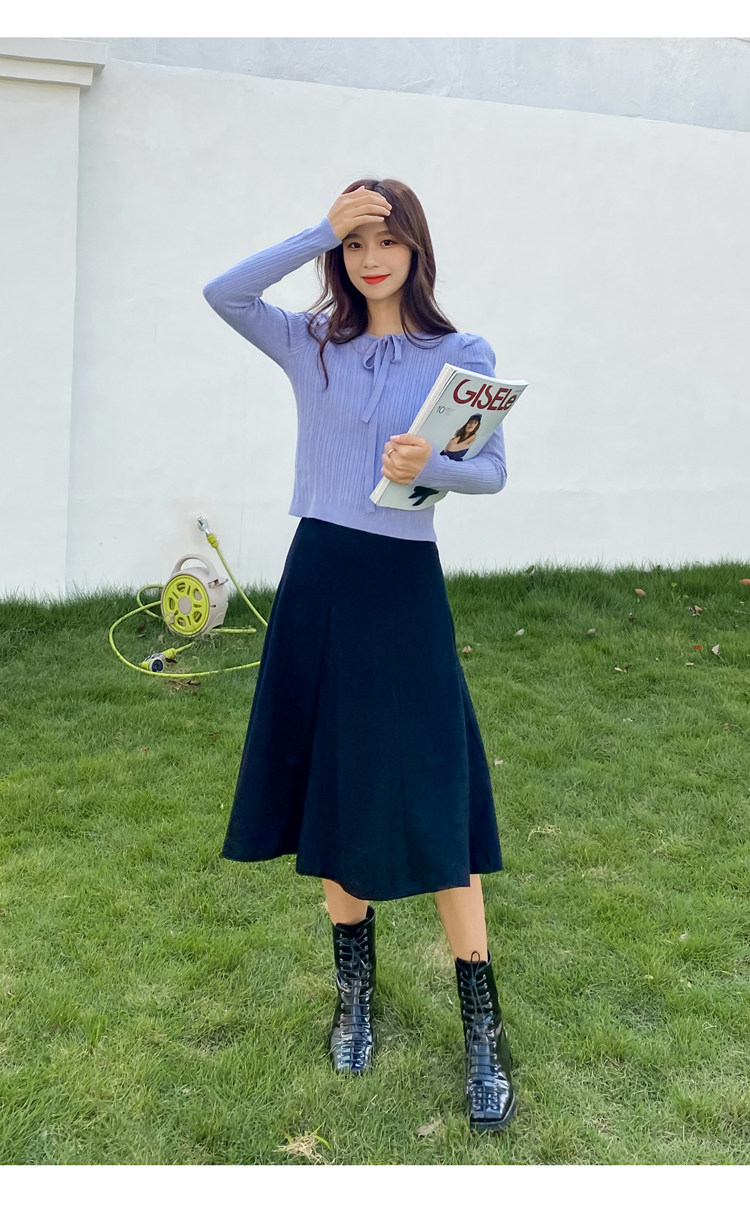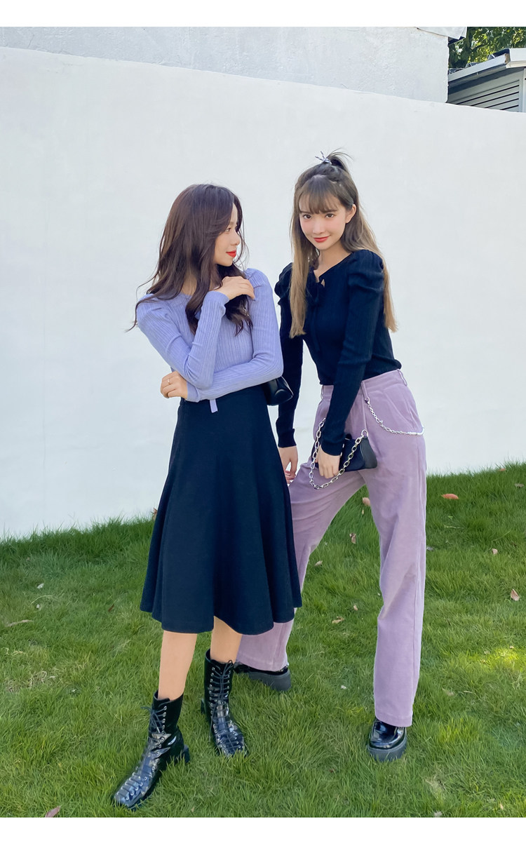 Черные базовые приятные телу нарукавники, демисезонный трикотажный свитер с круглым воротником, рукава фонарики, 2020