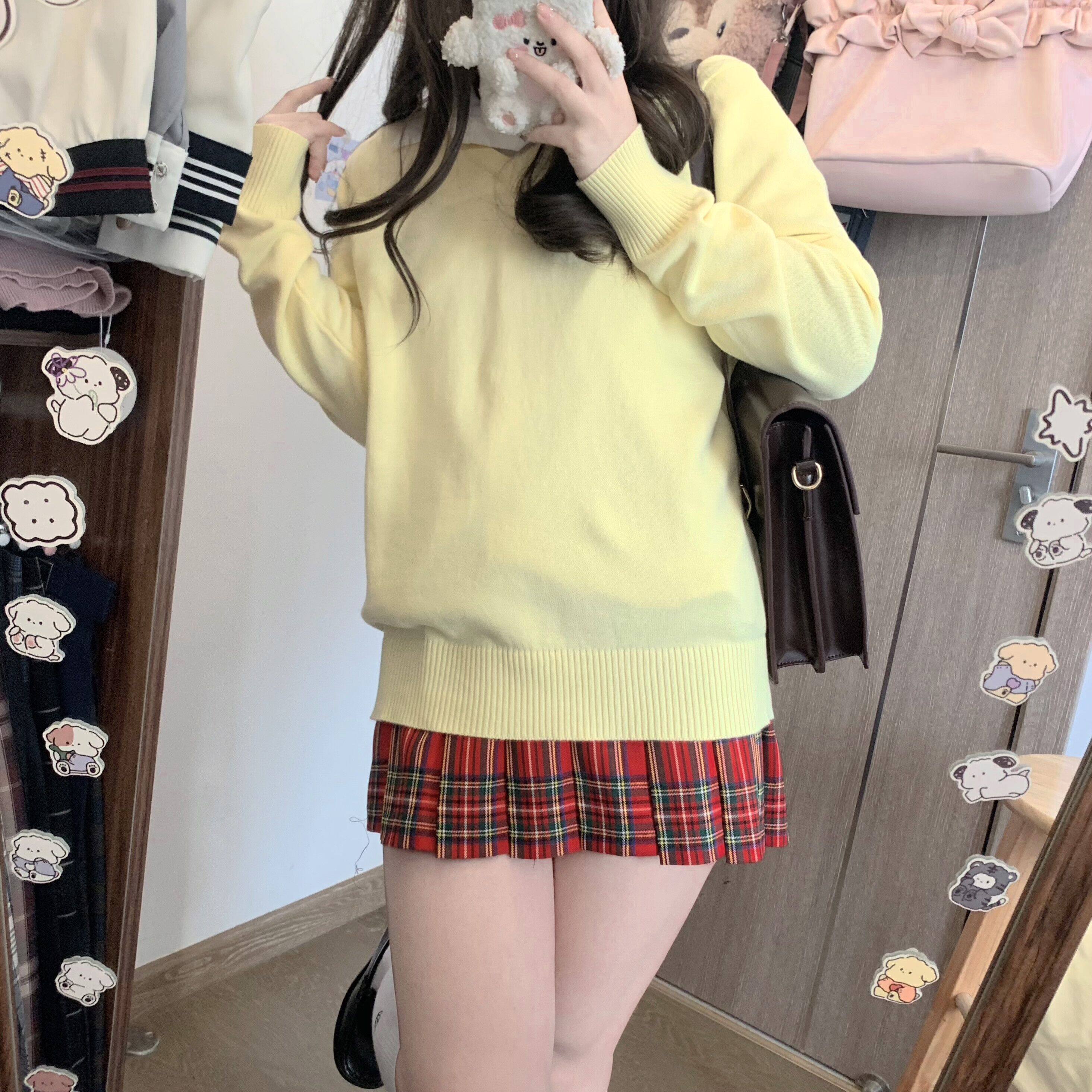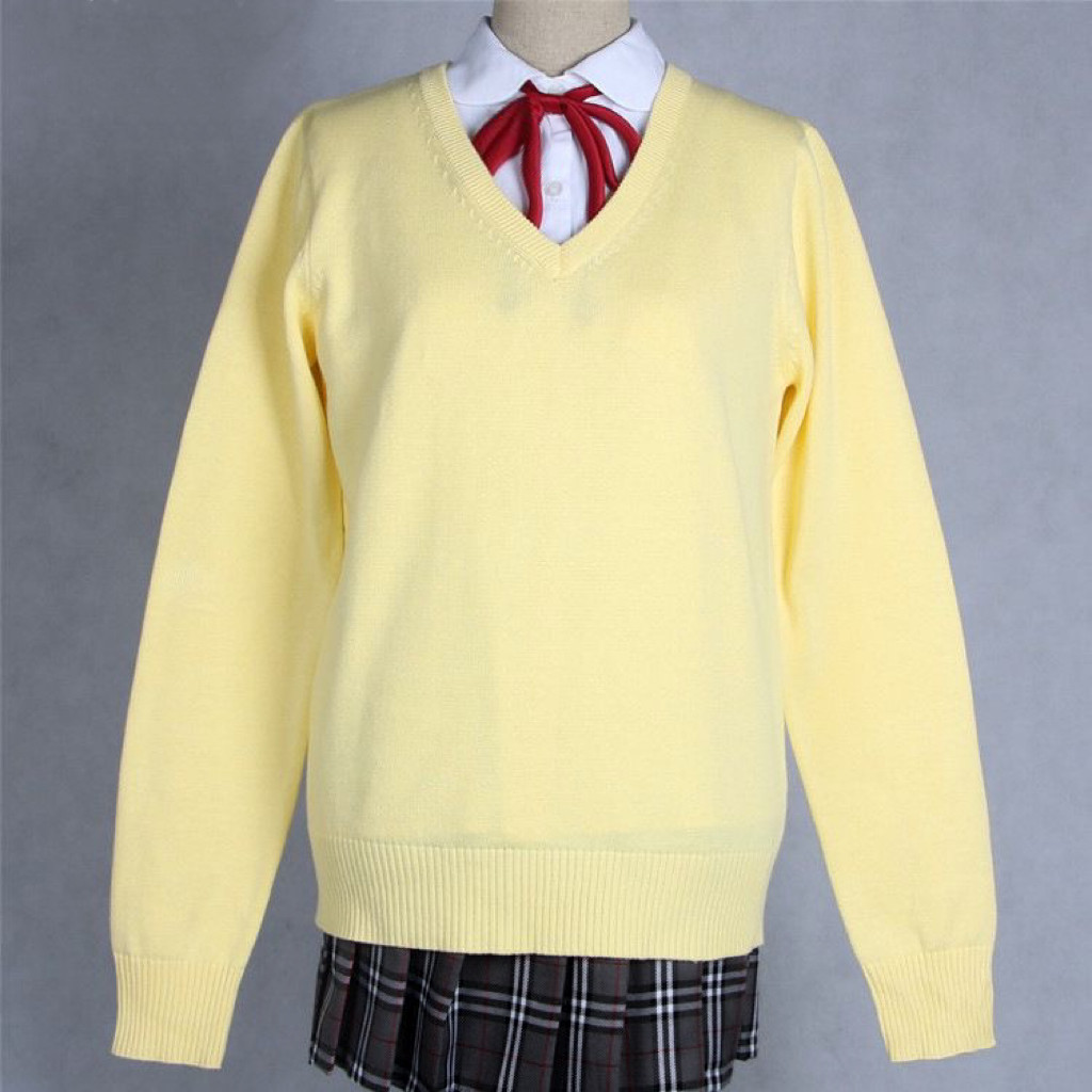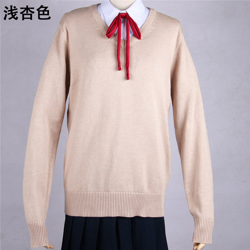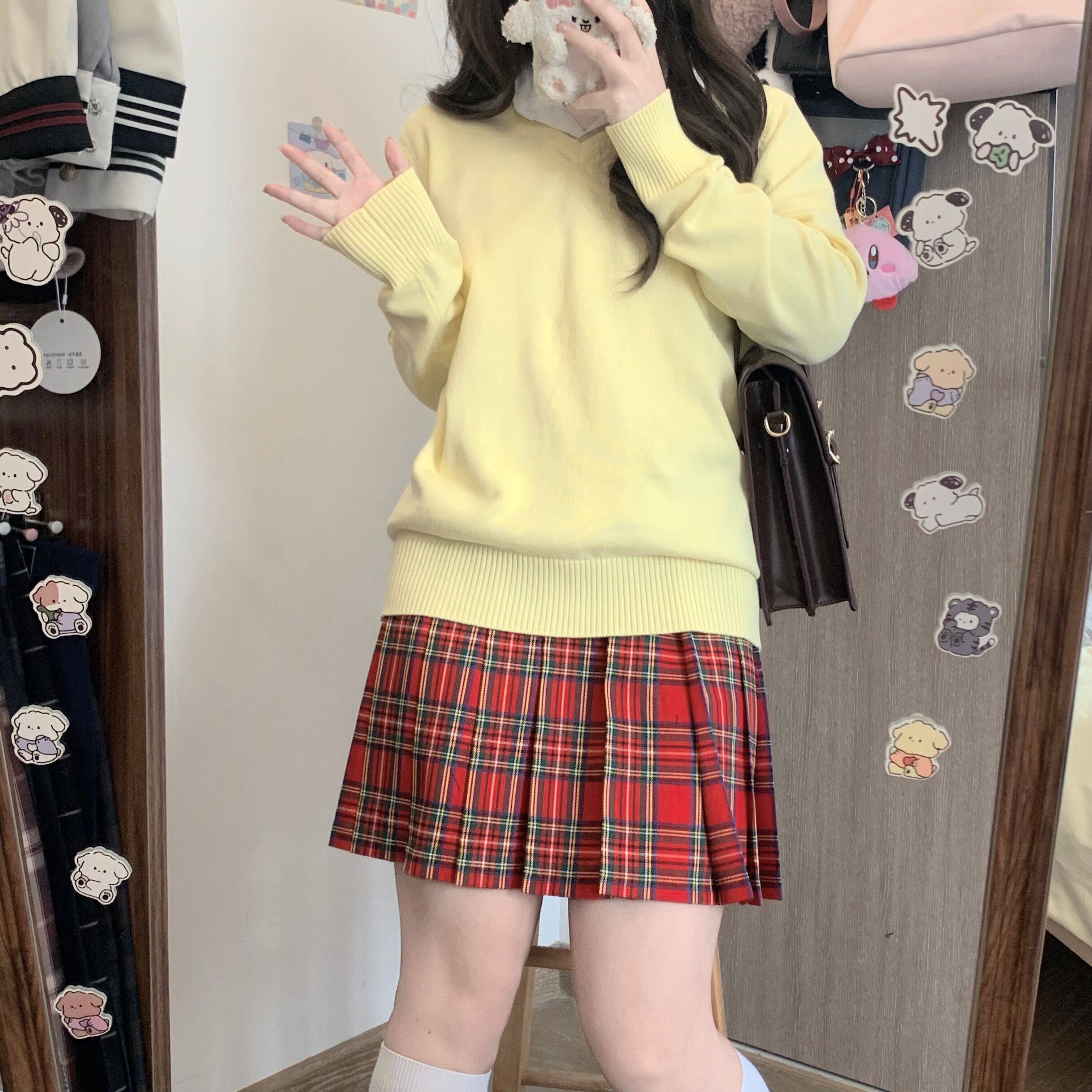 Японский свитер, японская школьная юбка, трикотажный лонгслив, (в наличии на складе), 13 цветов, V-образный вырез