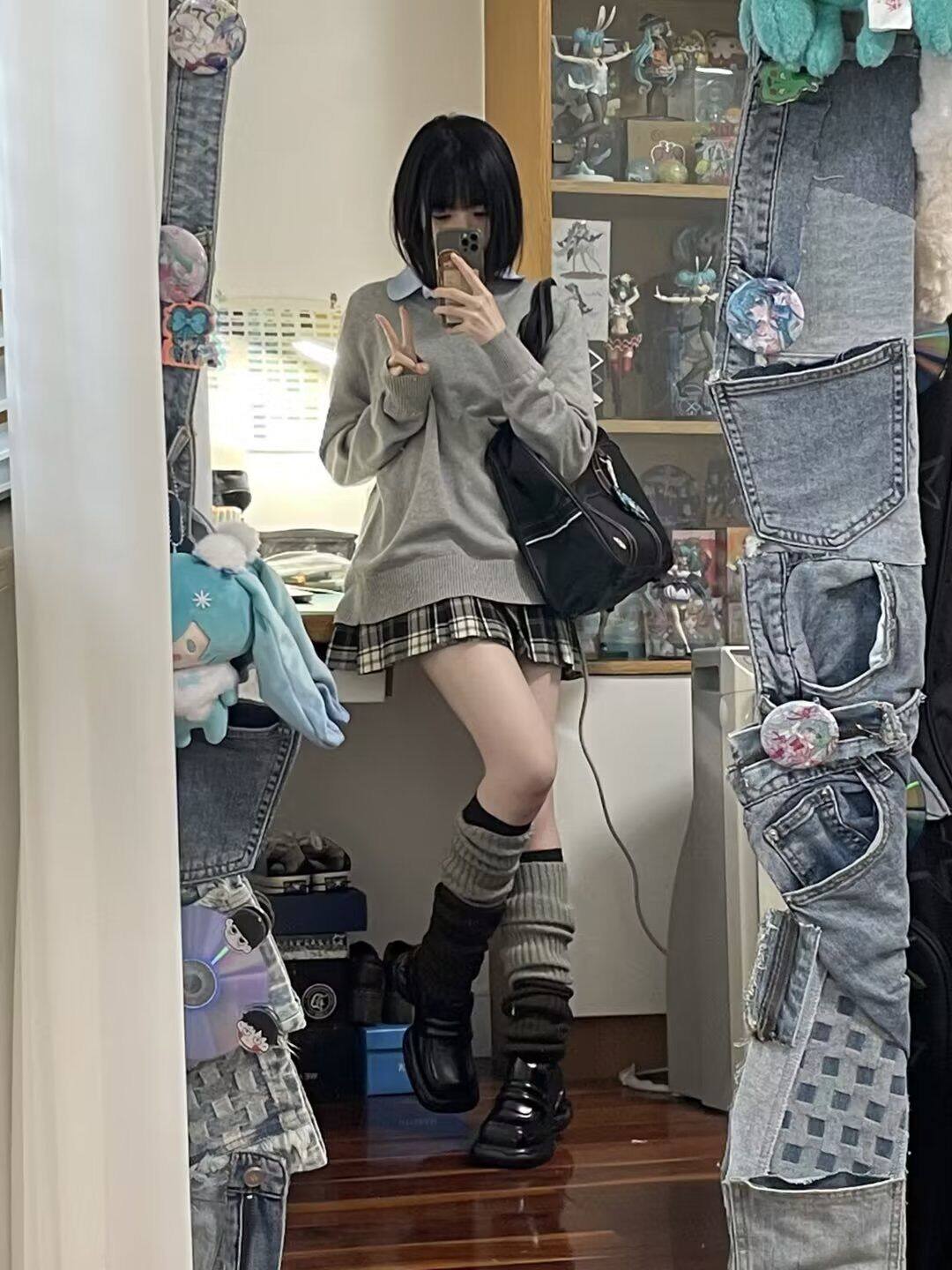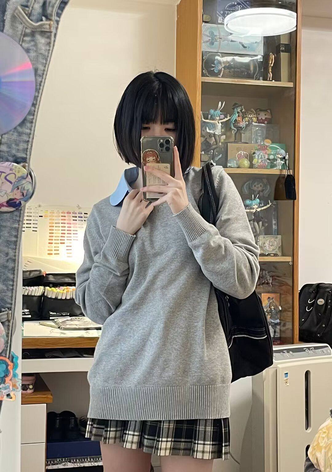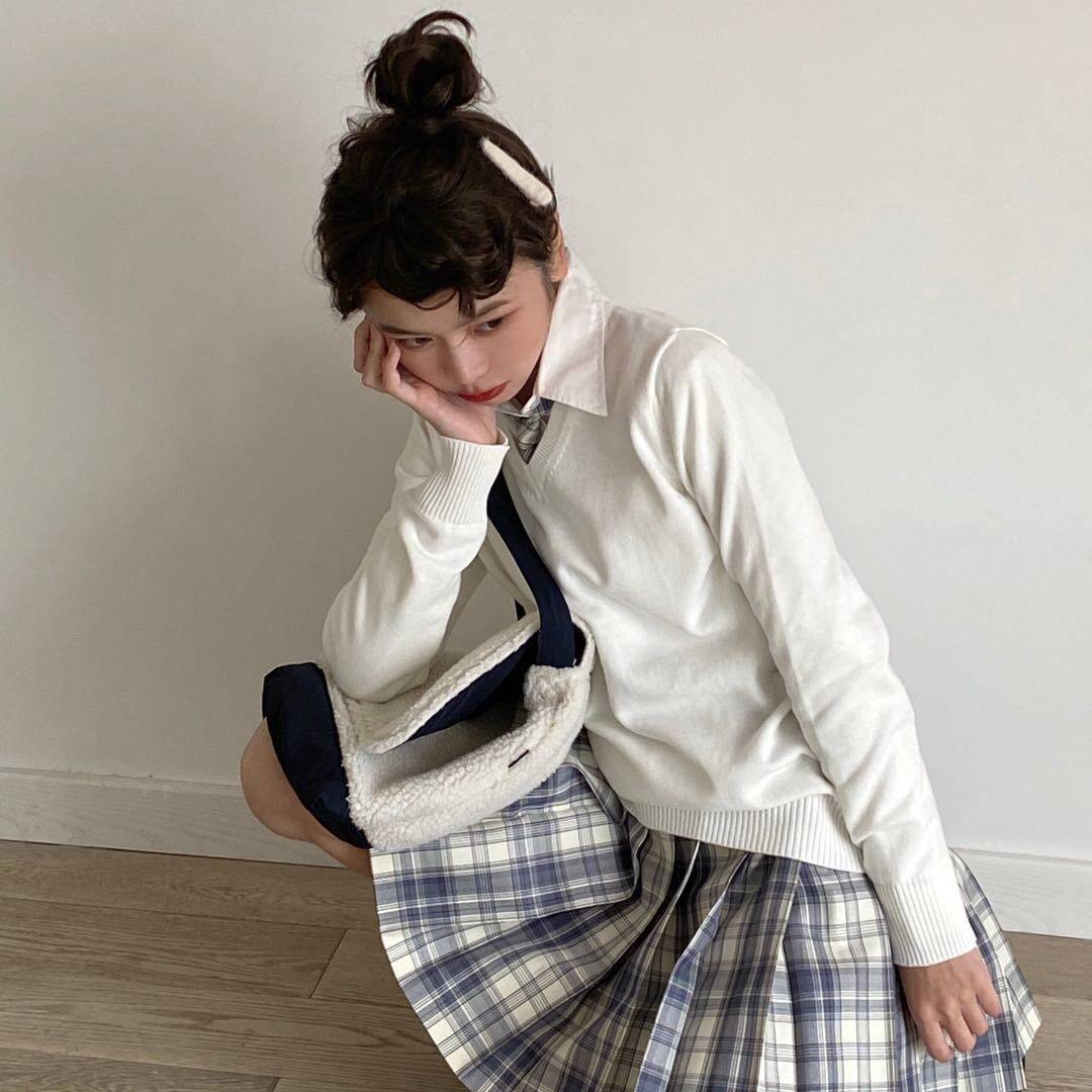 Японский свитер, японская школьная юбка, трикотажный лонгслив, (в наличии на складе), 13 цветов, V-образный вырез