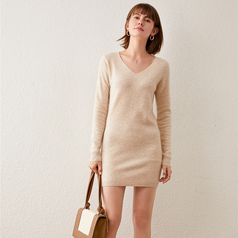 Трикотажное демисезонное длинное трикотажное платье, базовый лонгслив, 2020, V-образный вырез, в западном стиле, с акцентом на бедрах