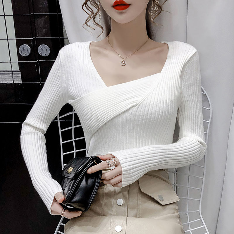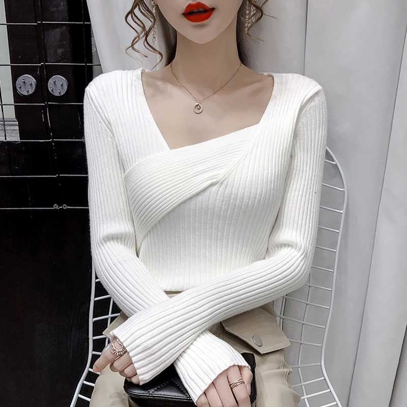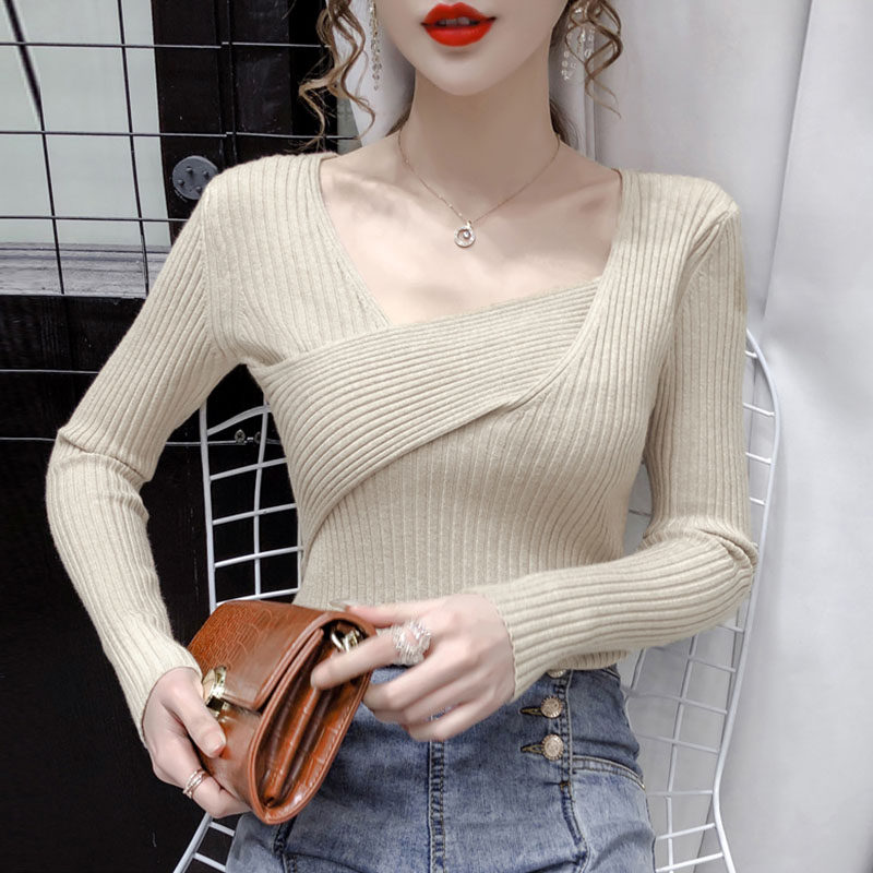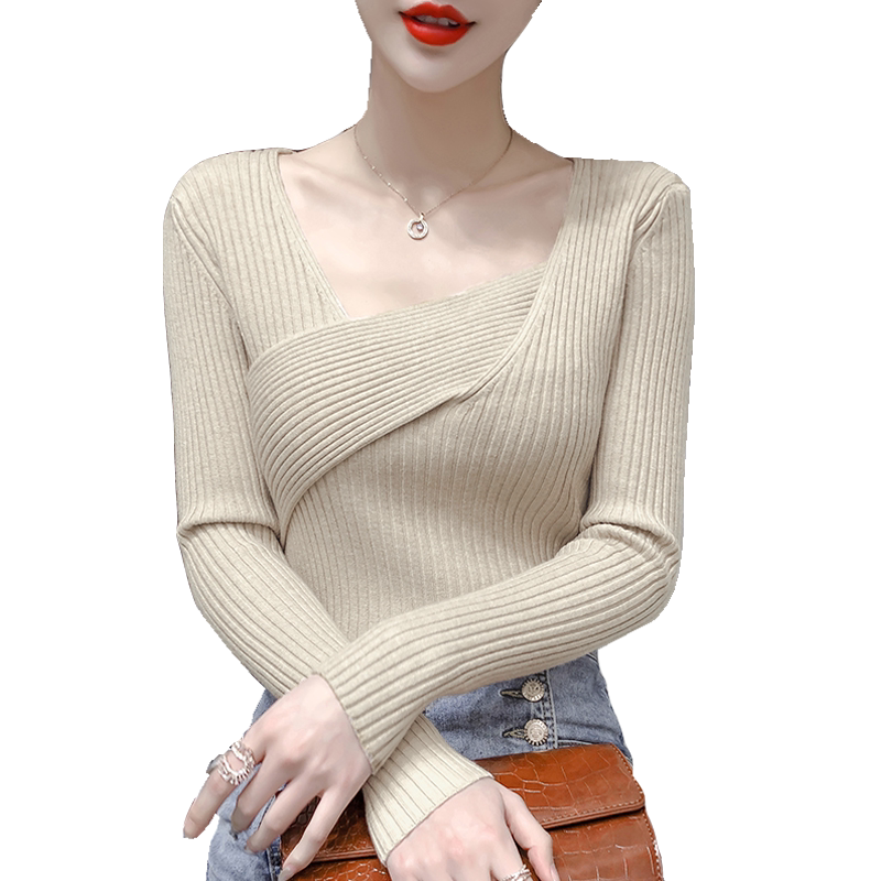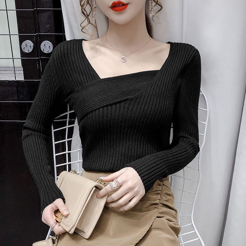 Трикотажный демисезонный лонгслив, 2020, в корейском стиле, в западном стиле, квадратный вырез