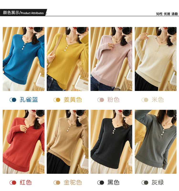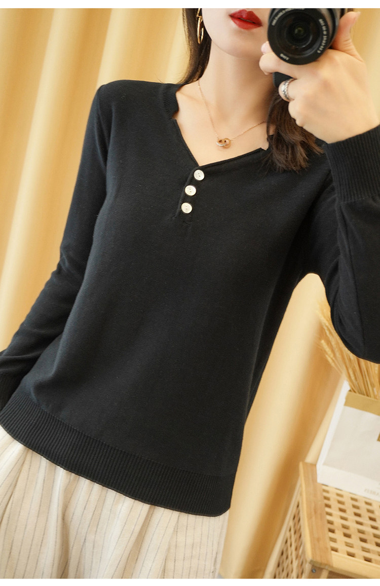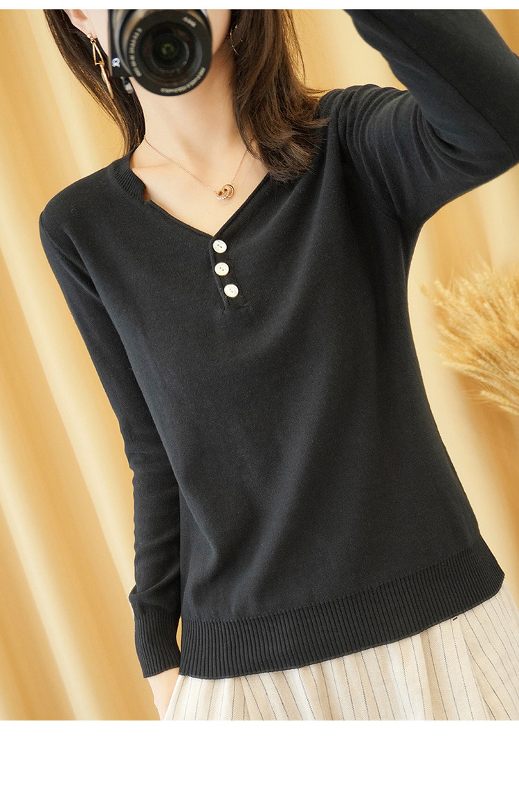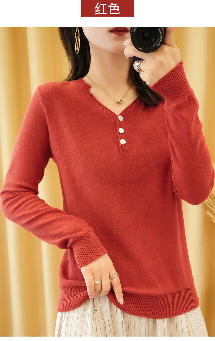 Осенний хлопковый лонгслив, трикотажный свитер, V-образный вырез, свободный крой, 100% хлопок, из хлопка и льна