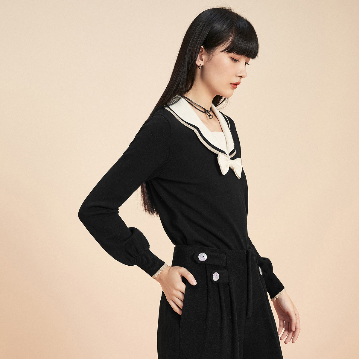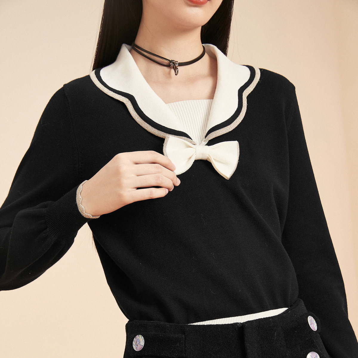 [Та же самая модель торгового центра] Taiping Bird 2020 Зимняя новая линия ветра -лука в колледже Sweet Sweet Swipes A5EEA4354