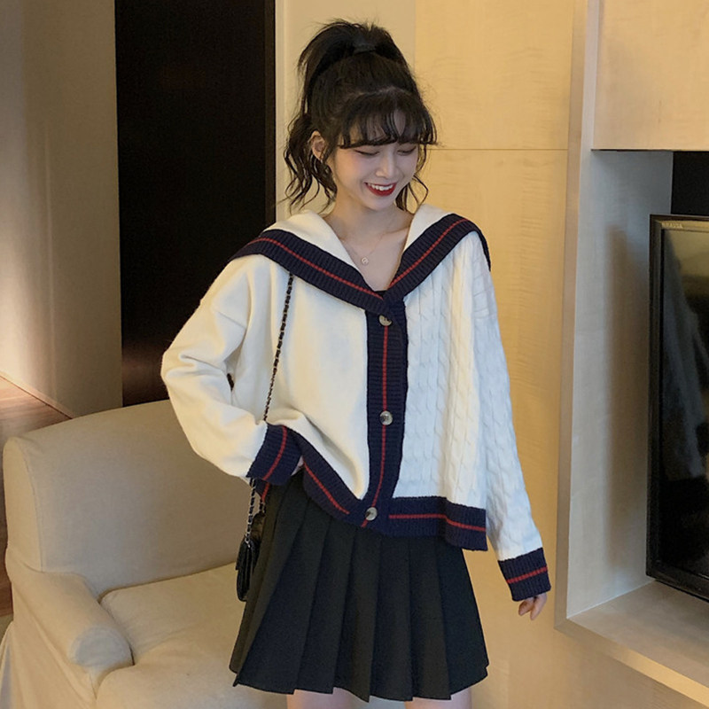 Трикотажный осенний свитер, военно-морской кардиган, куртка, подходит для подростков, оверсайз