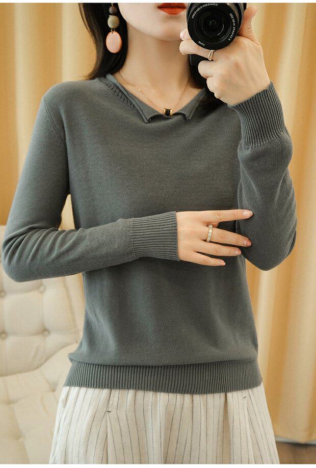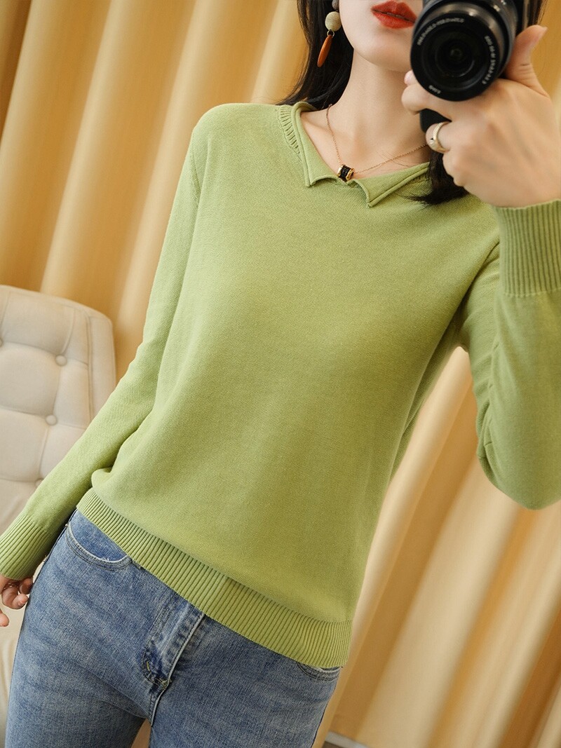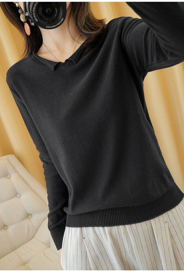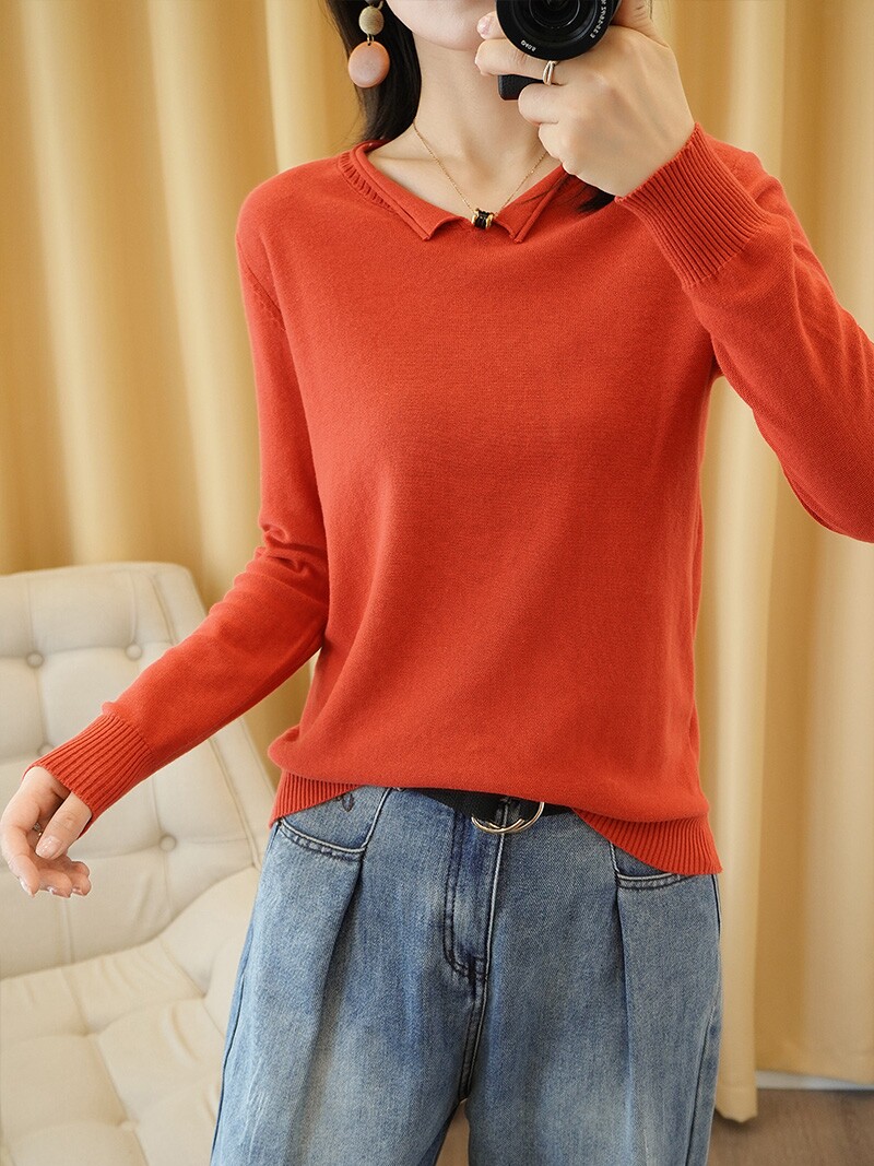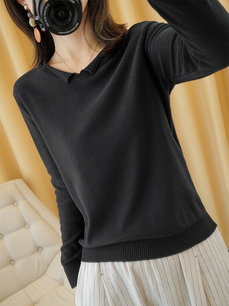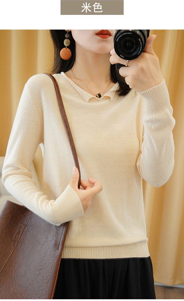Трикотажный хлопковый свитер, тонкий лонгслив, базовый комплект, из хлопка и льна, оверсайз