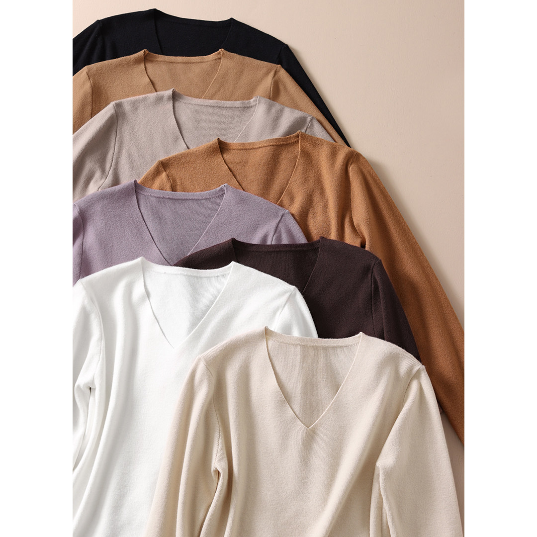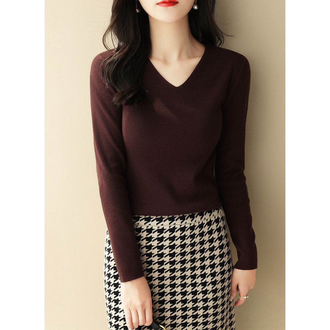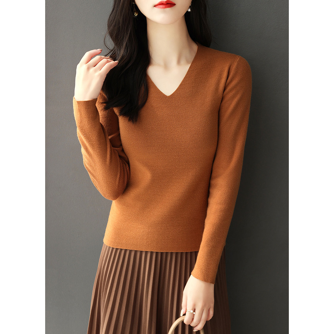 Демисезонный лонгслив, трикотажный свитер, 2021 года, V-образный вырез