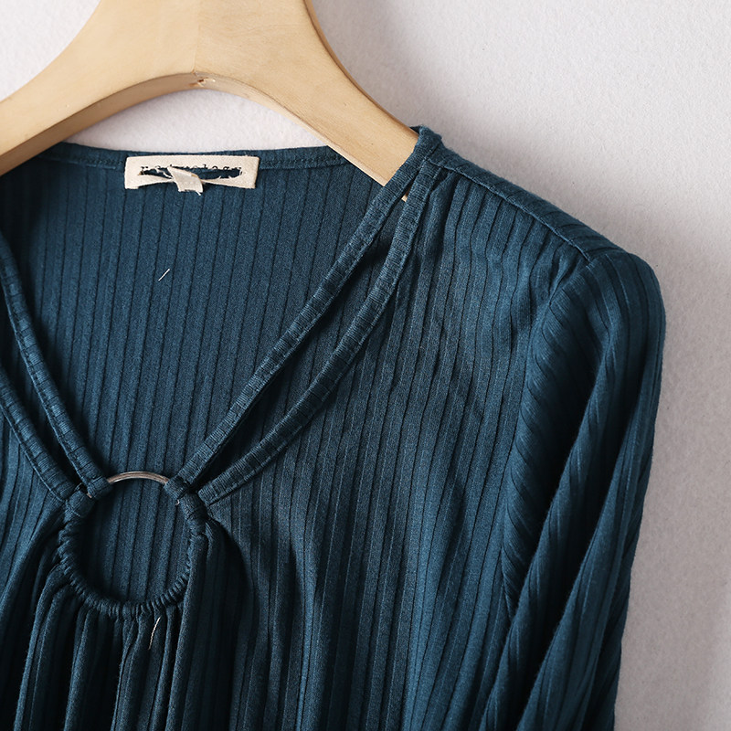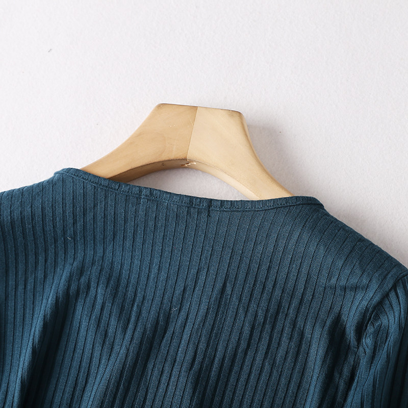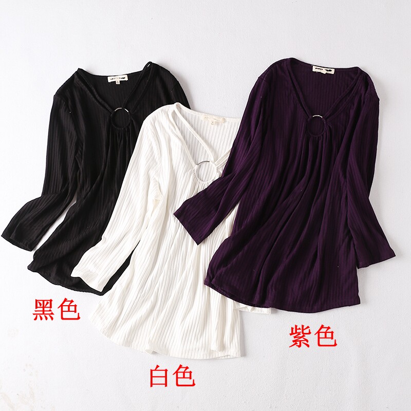 H45-4 Весна и осень Женская внешняя торговля Сплошной цвет Темпераментный пуловер с v-образным вырезом Полая модная нижняя рубашка Шерстяной свитер с рукавом три четверти