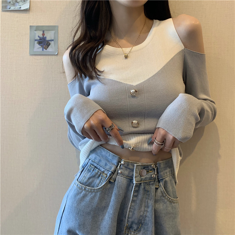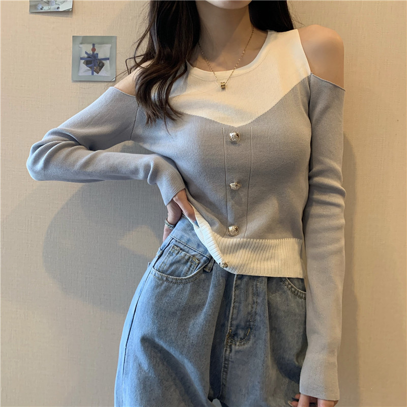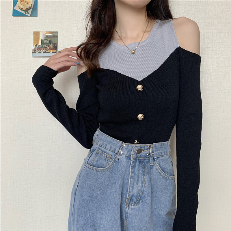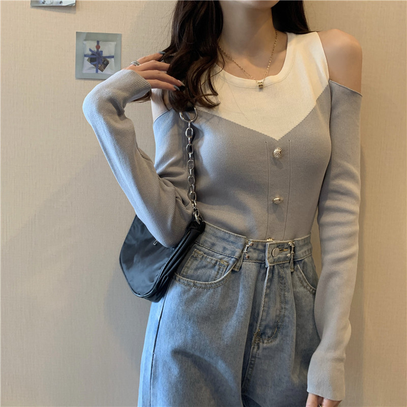 Лонгслив с круглым воротником, приталенный трикотажный свитер