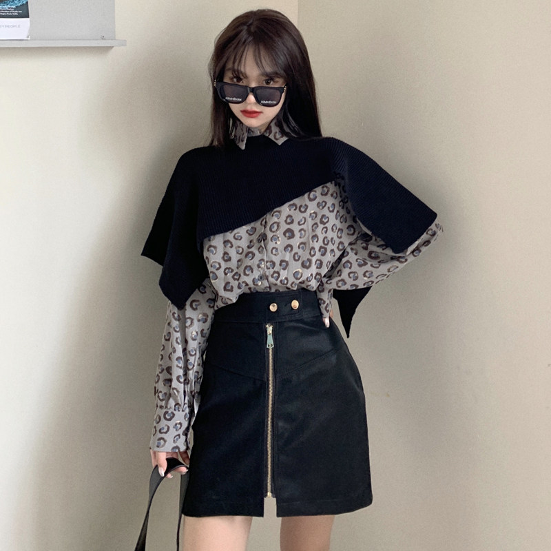 Трикотажный осенний свитер, комплект, накидка, рубашка, мини-юбка, 2020 года, 3 предмета