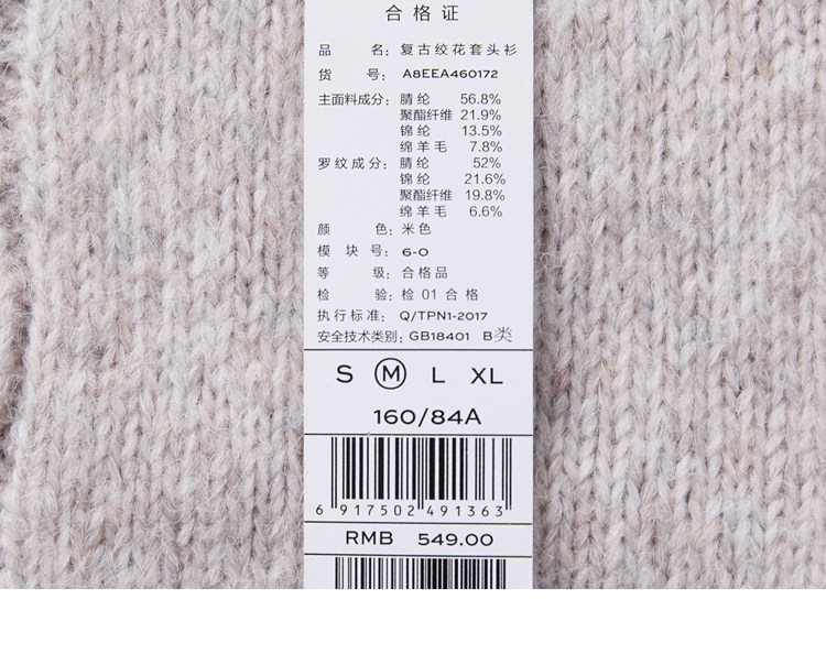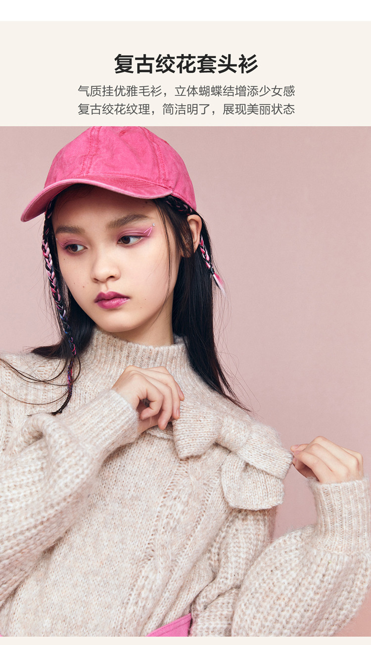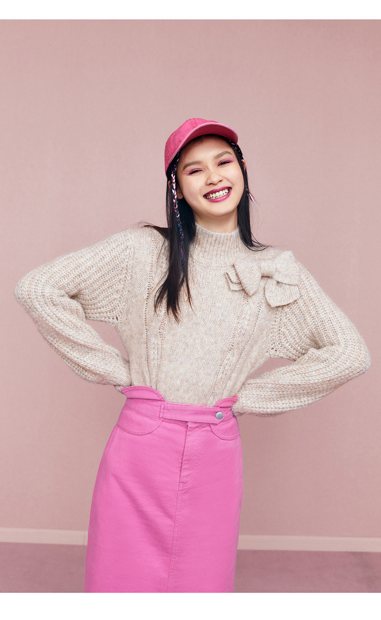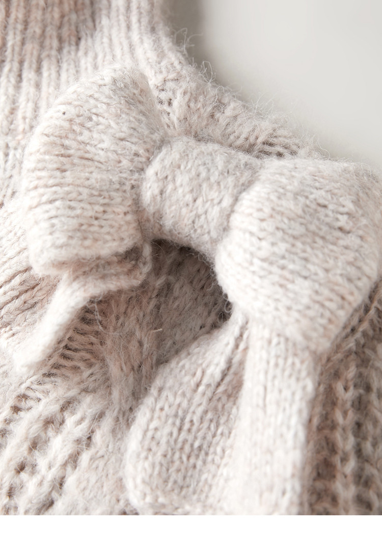 Бежевый ретро трикотажный зимний свитер с бантиком, 2020