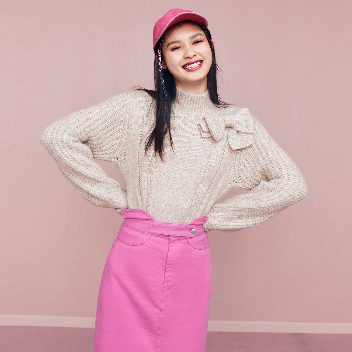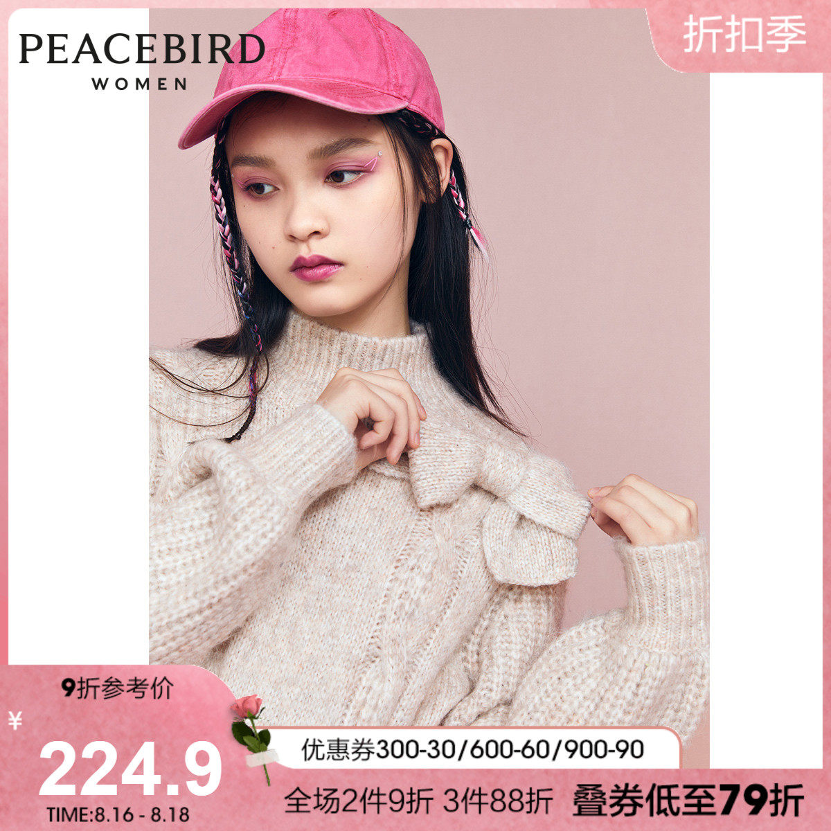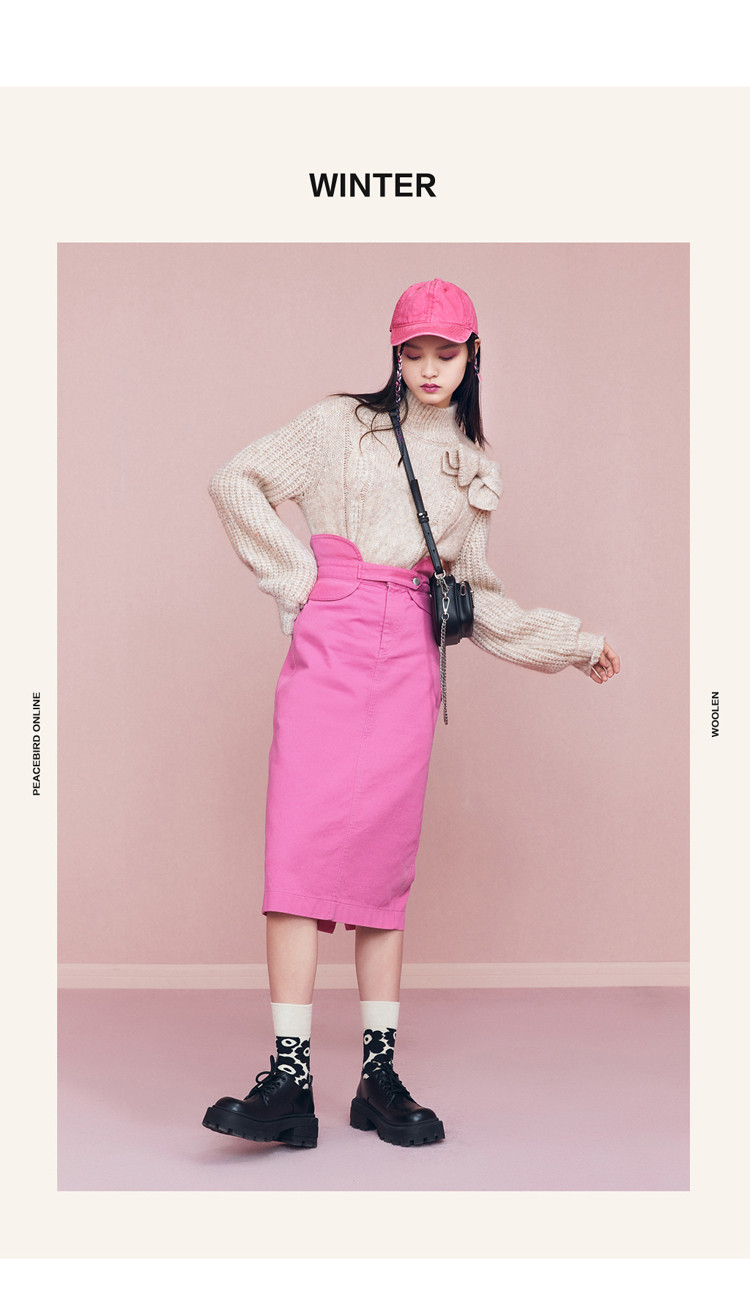 Бежевый ретро трикотажный зимний свитер с бантиком, 2020