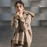 Хаки ретро свитер, зимняя трикотажная куртка, увеличенная толщина, оверсайз