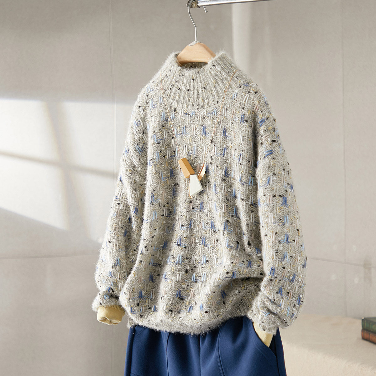Трикотажный осенний лонгслив, свитер, в стиле Шанель, коллекция 2021, по фигуре, свободный крой