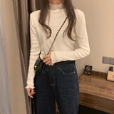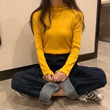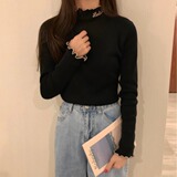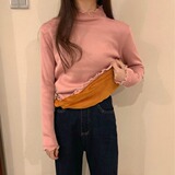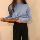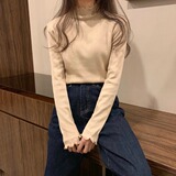 Базовый приятный телу демисезонный утепленный свитер, трикотажный лонгслив, высокий воротник, облегающий крой