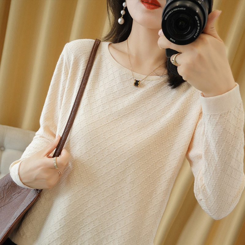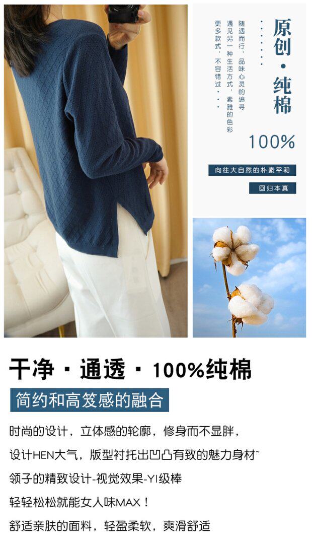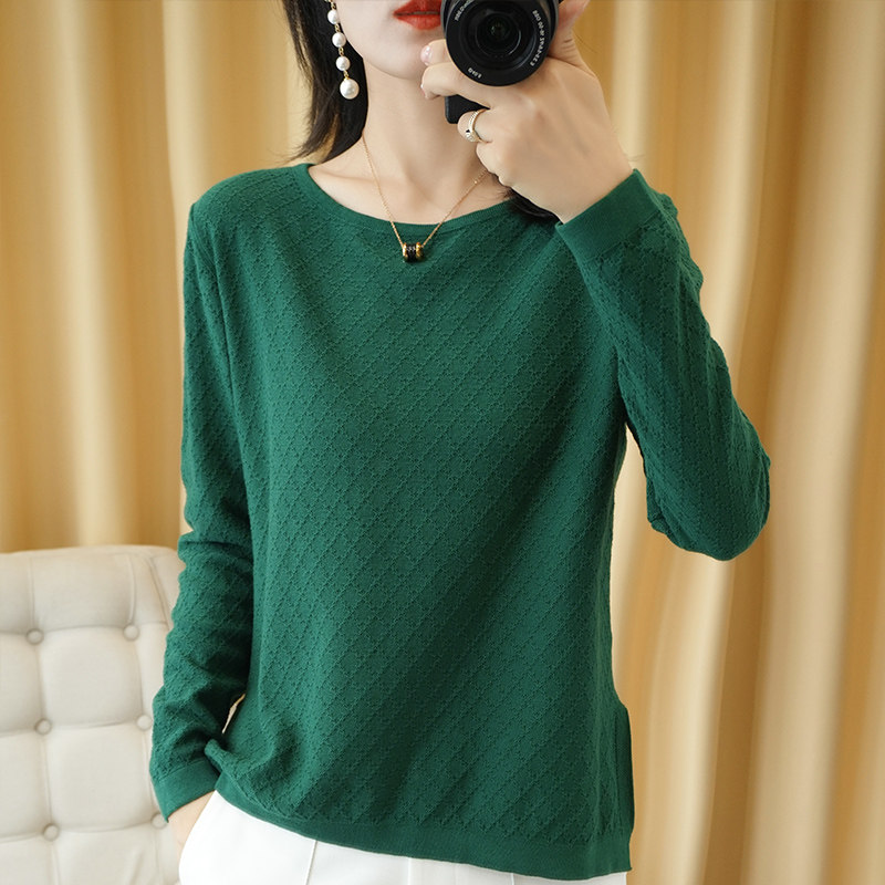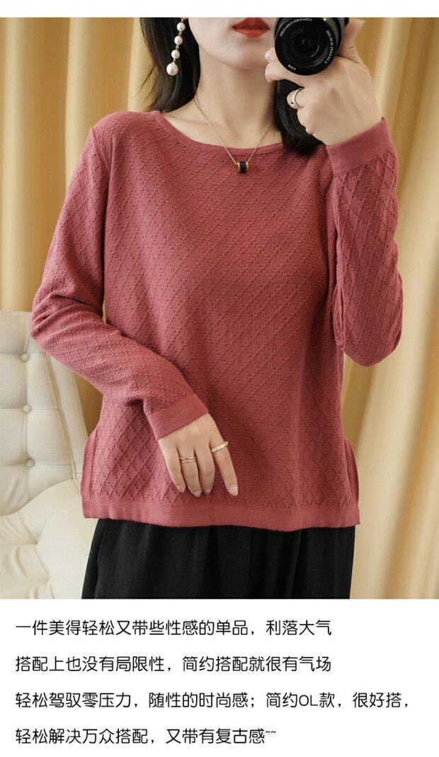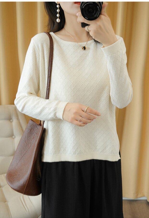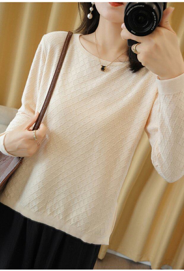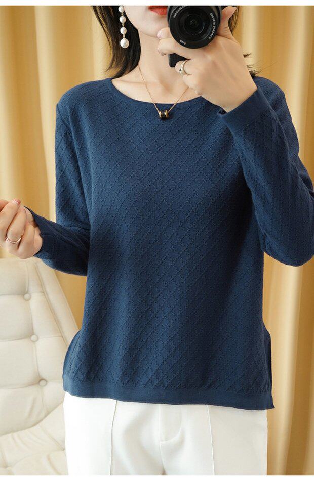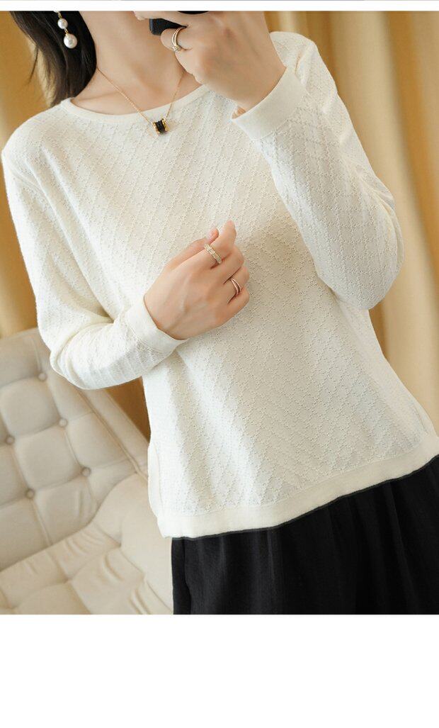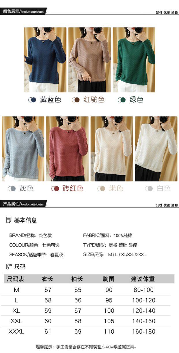 Трикотажный тонкий хлопковый свитер с круглым воротником, осенний базовый лонгслив, нарукавники