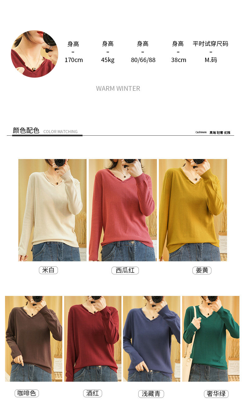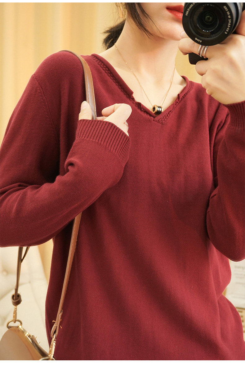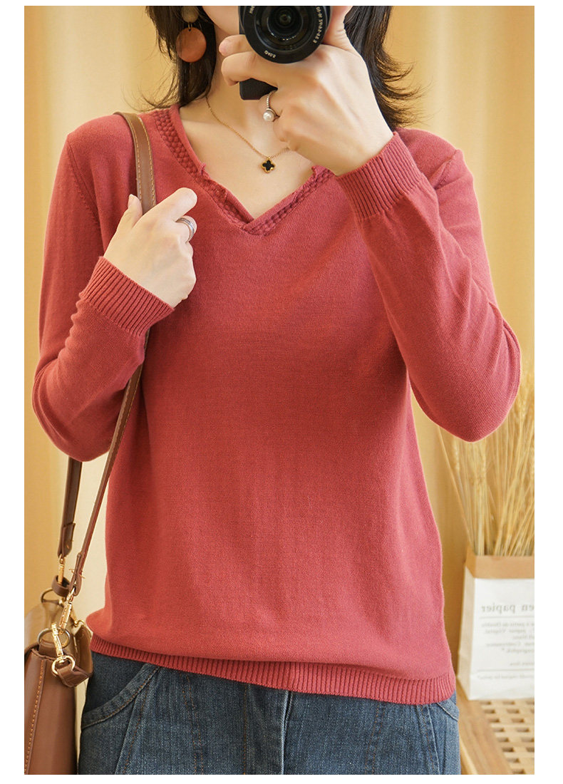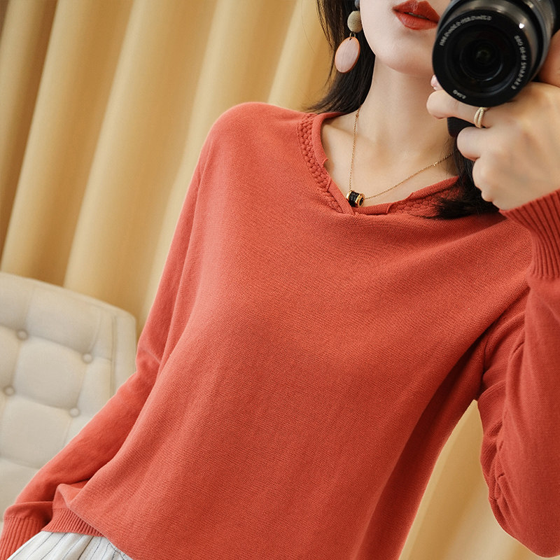 Хлопковый трикотажный свитер, базовый приятный телу лонгслив, 2020, V-образный вырез, из хлопка и льна, большой размер