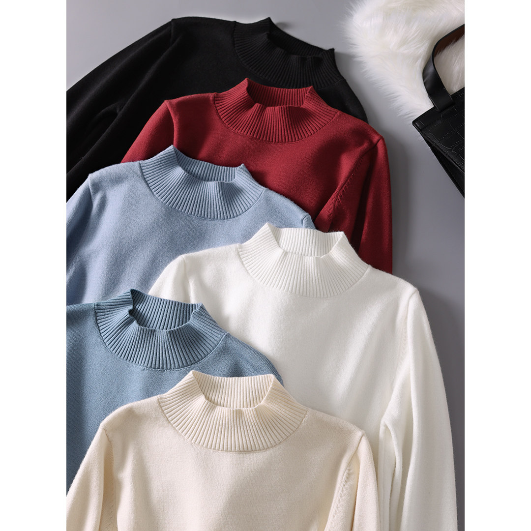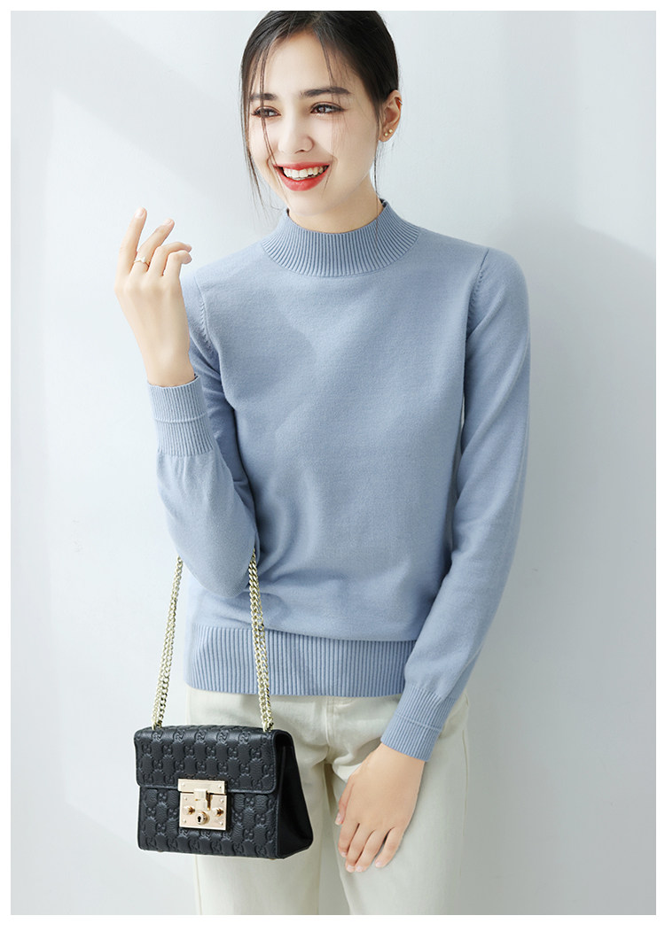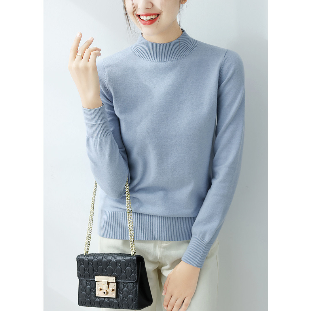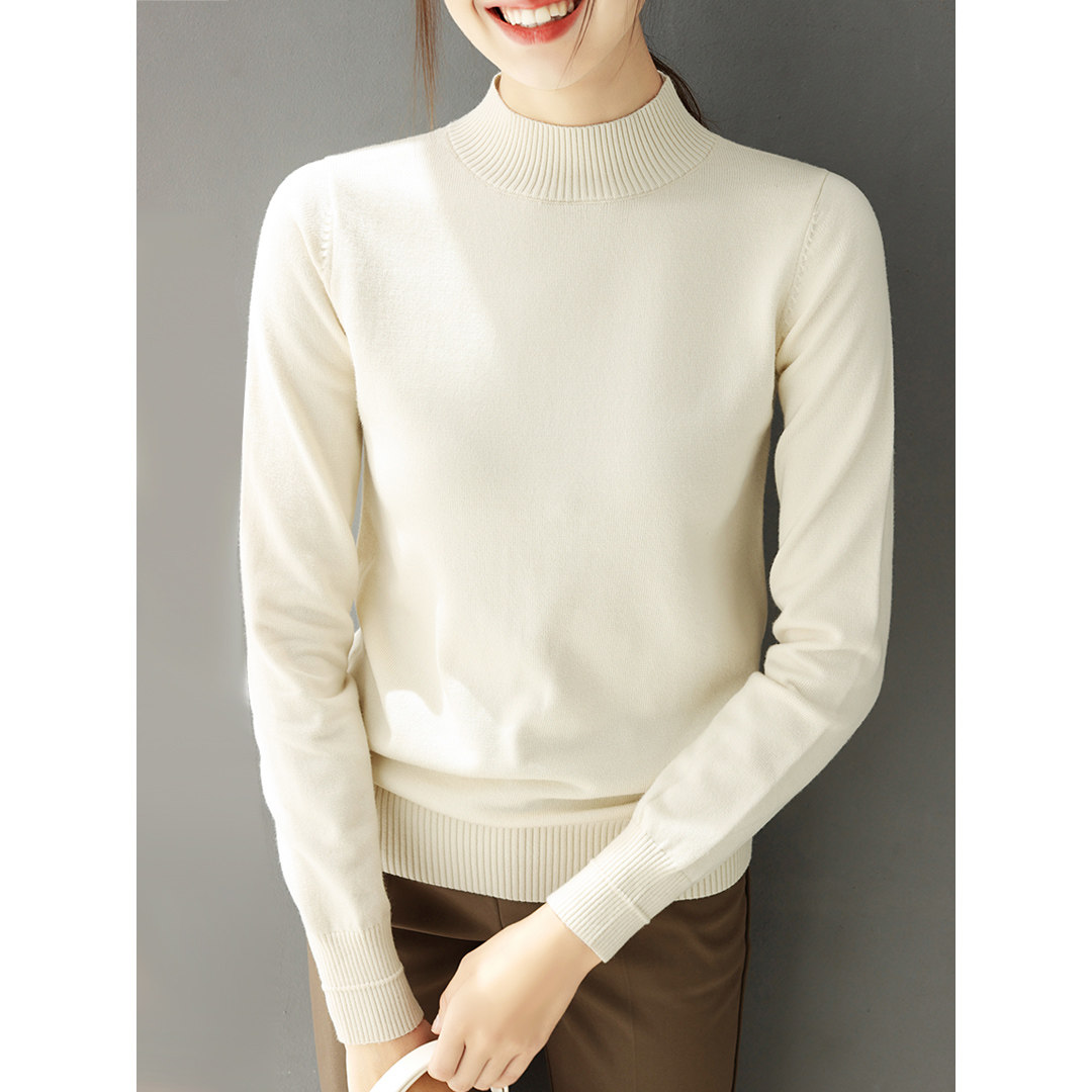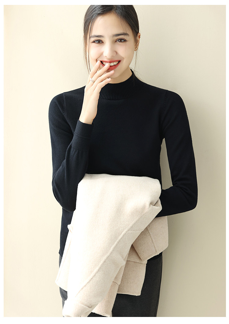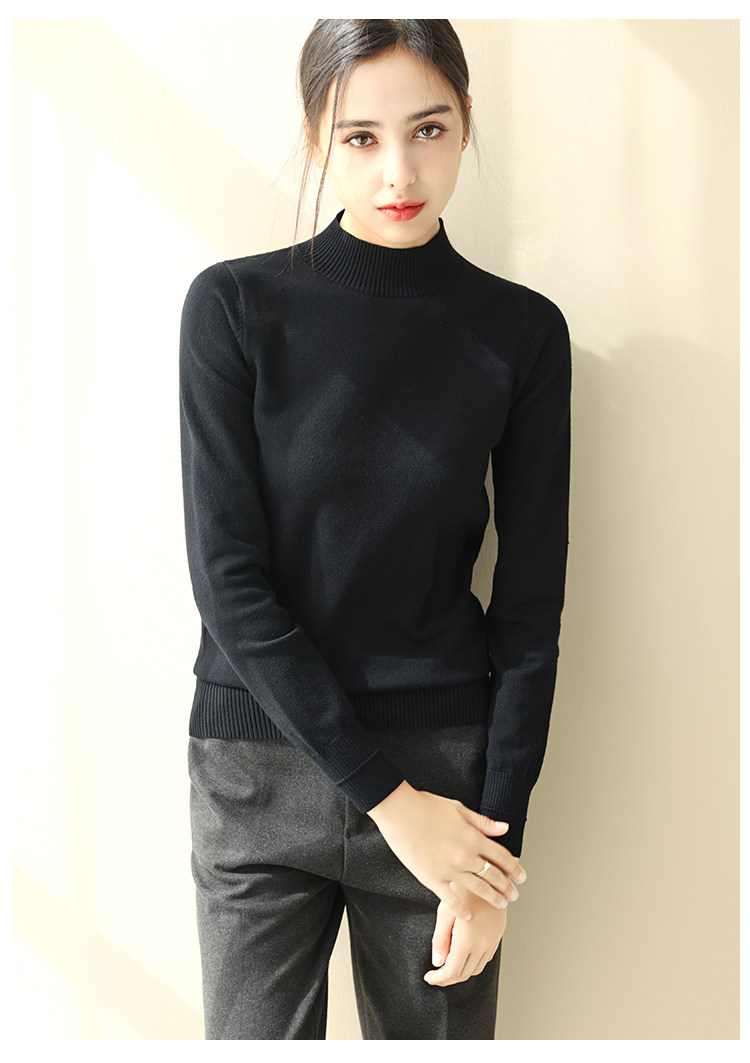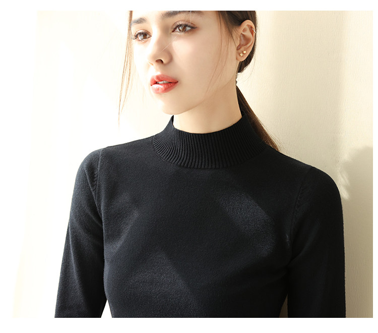 Базовый приятный телу демисезонный свитер, однотонный лонгслив, высокий воротник, облегающий крой