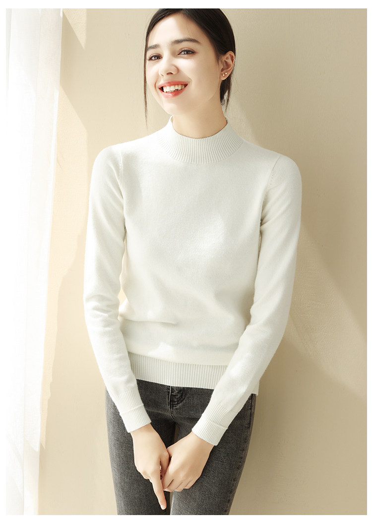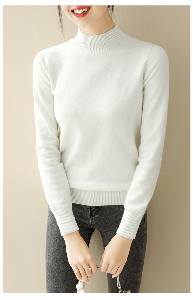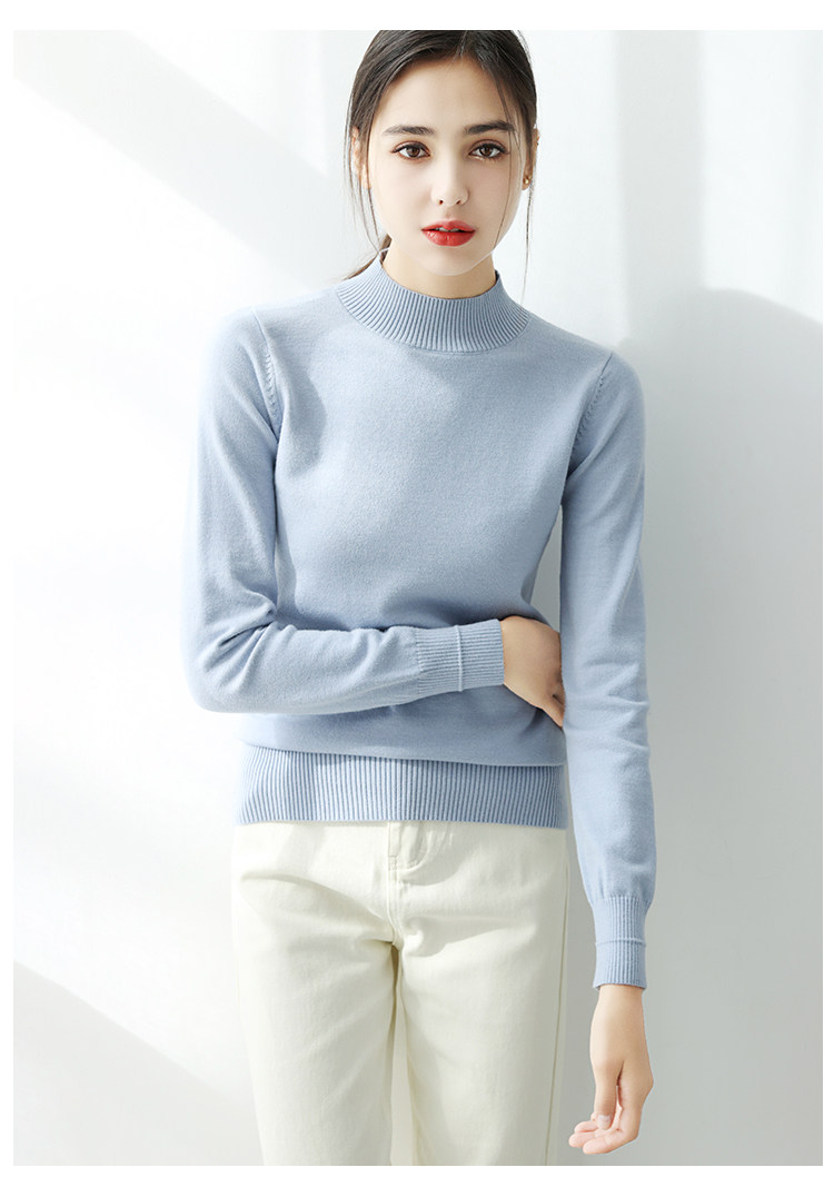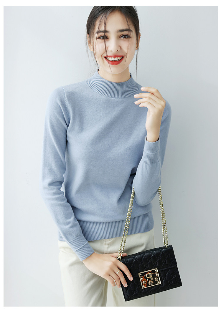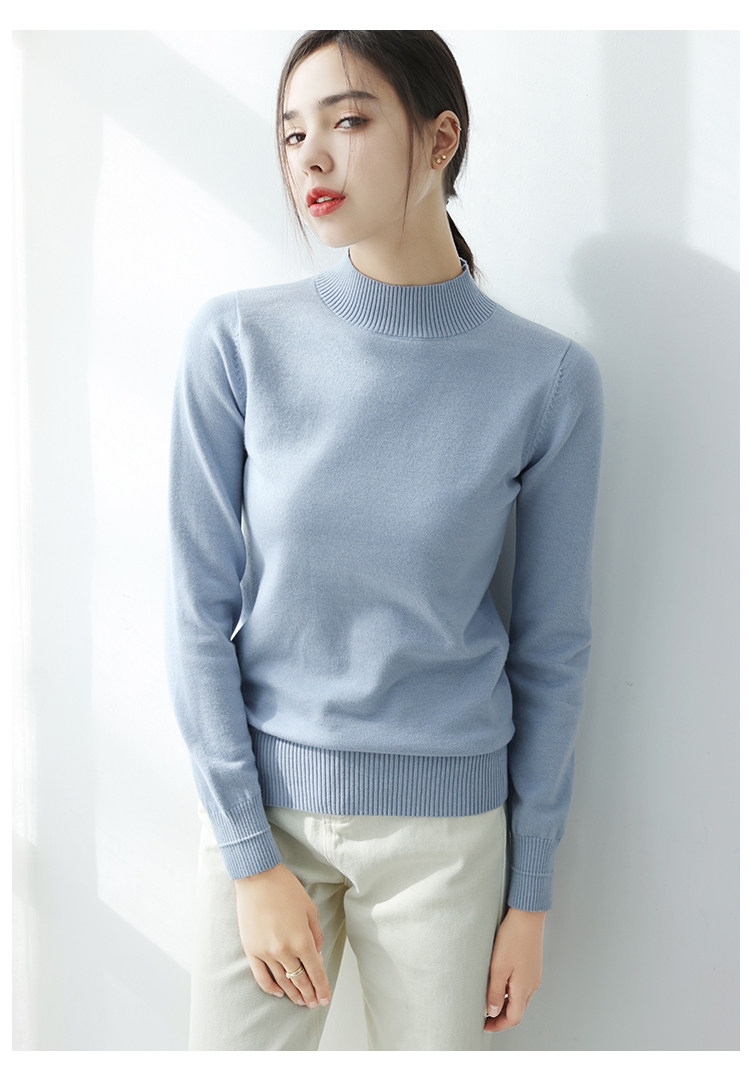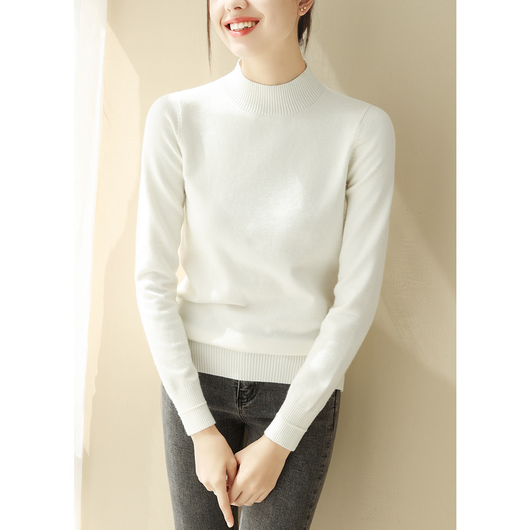 Базовый приятный телу демисезонный свитер, однотонный лонгслив, высокий воротник, облегающий крой
