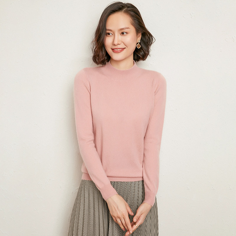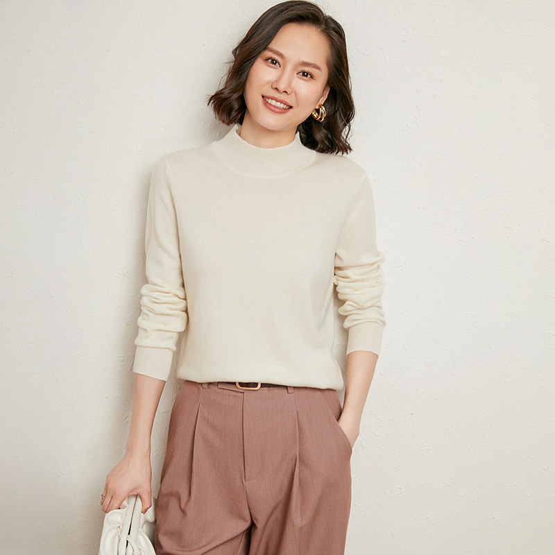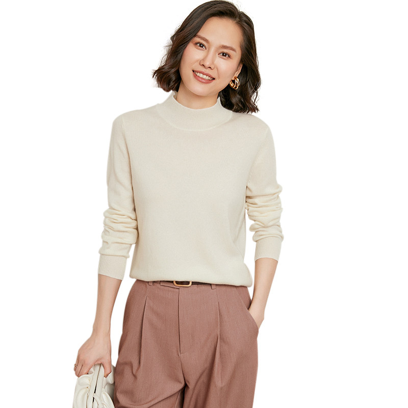 Кашемировый шерстяной свитер, лонгслив, трикотажные базовые приятные телу нарукавники, высокий воротник