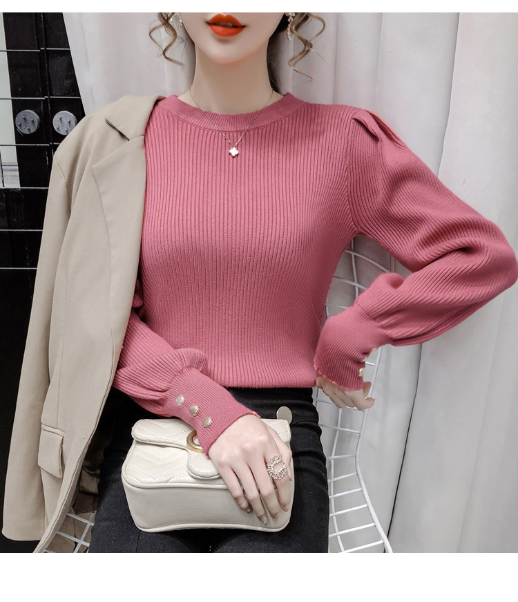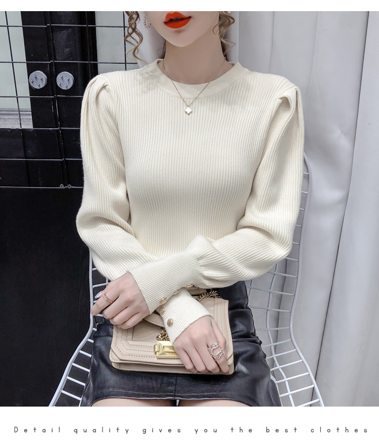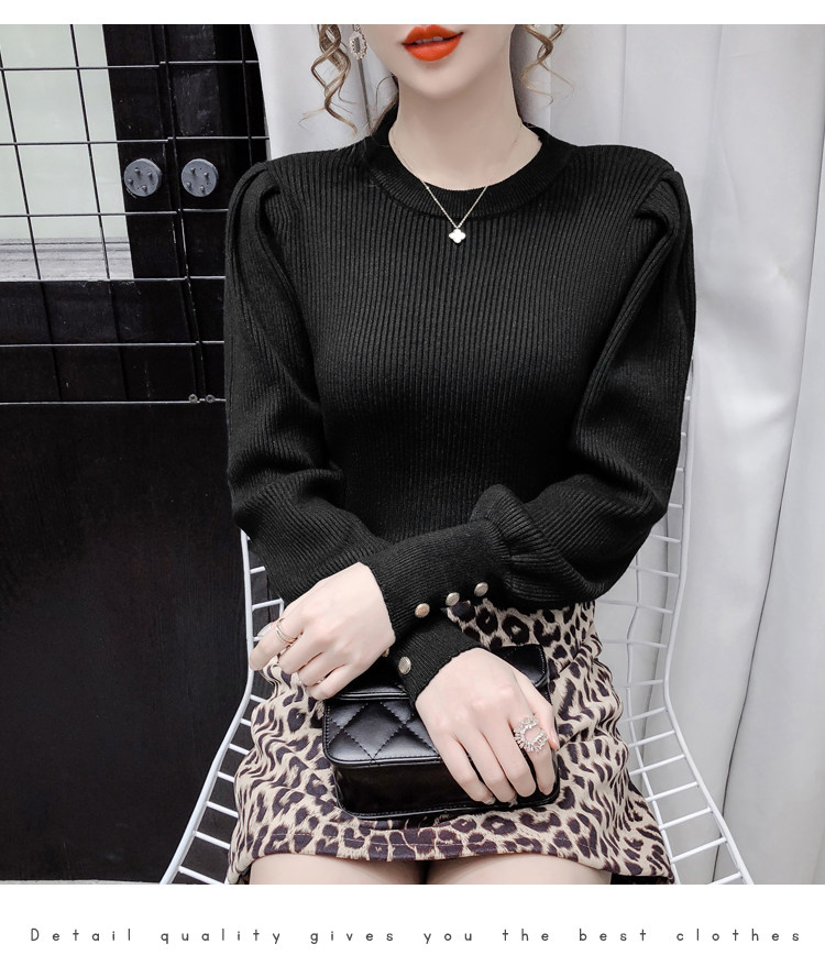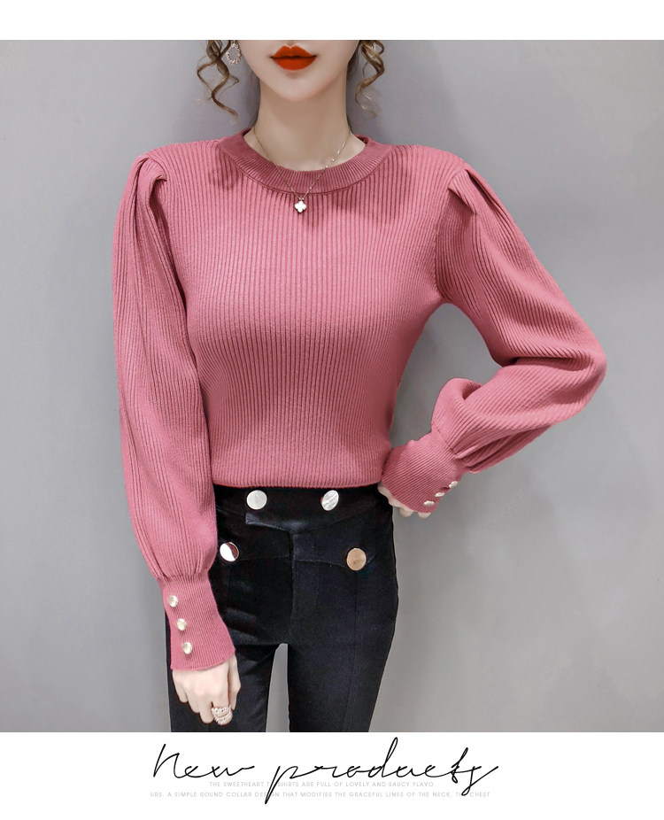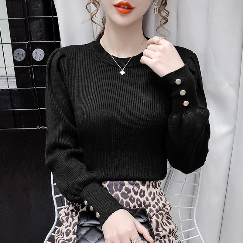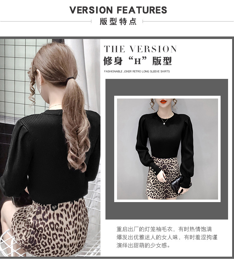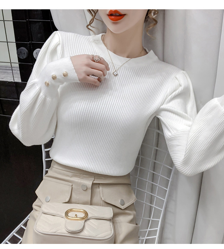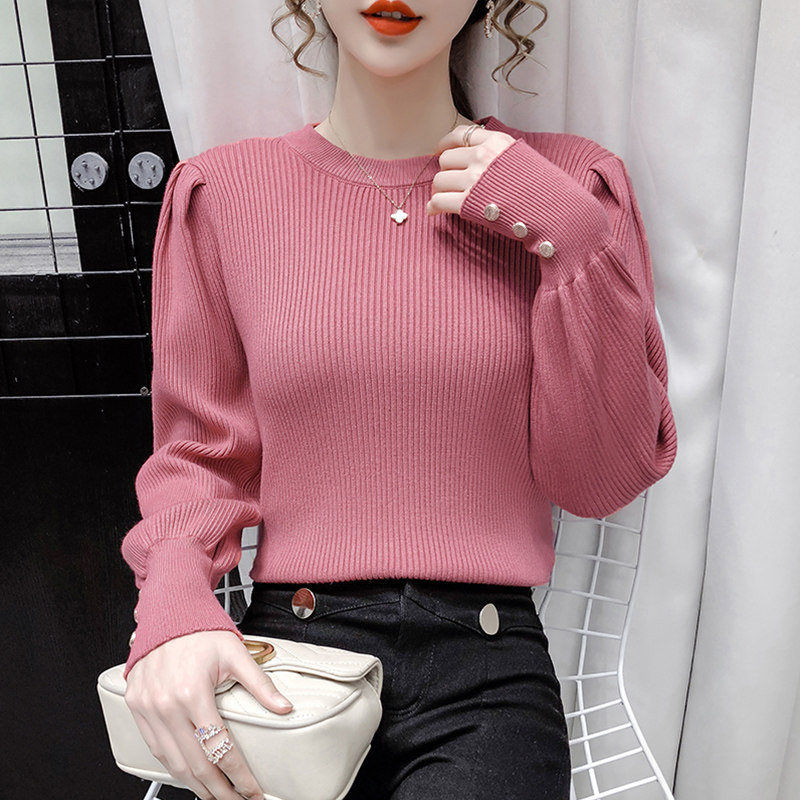 Трикотажный демисезонный свитер, приталенная базовая приятная телу футболка, 2020 года, в корейском стиле, в западном стиле, рукава фонарики