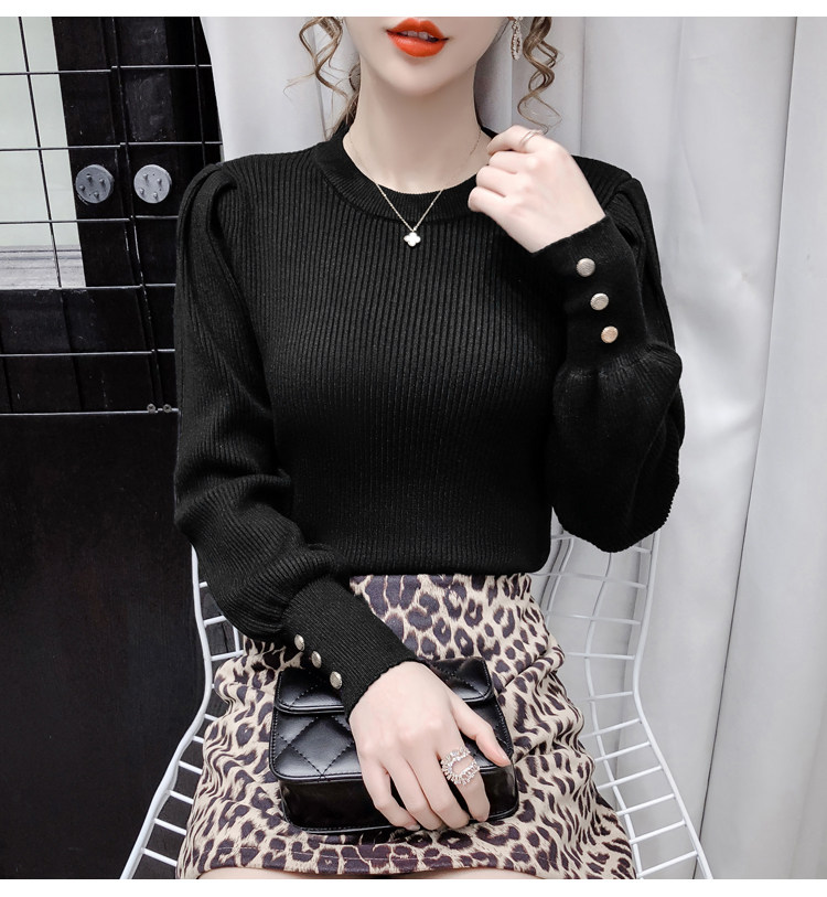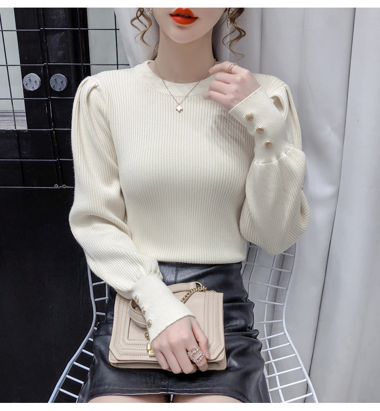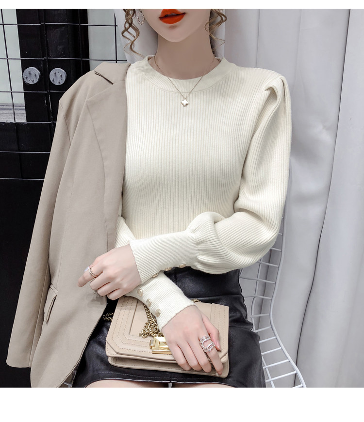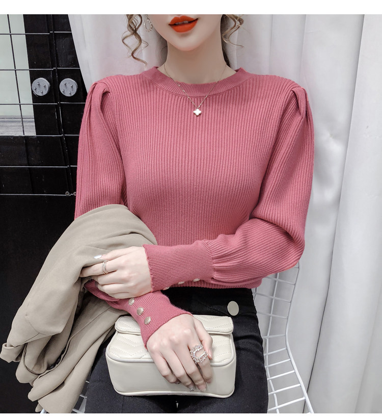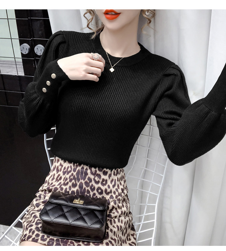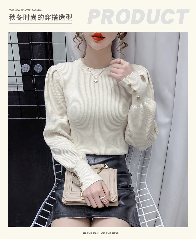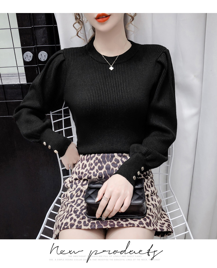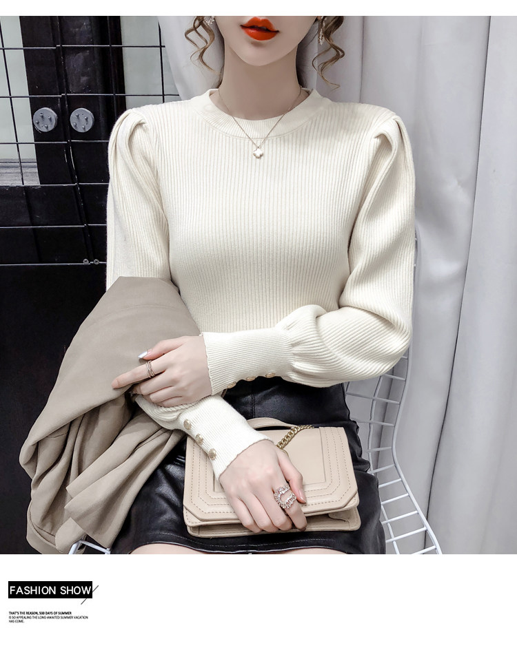 Трикотажный демисезонный свитер, приталенная базовая приятная телу футболка, 2020 года, в корейском стиле, в западном стиле, рукава фонарики