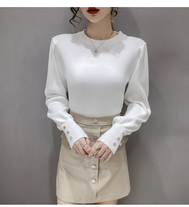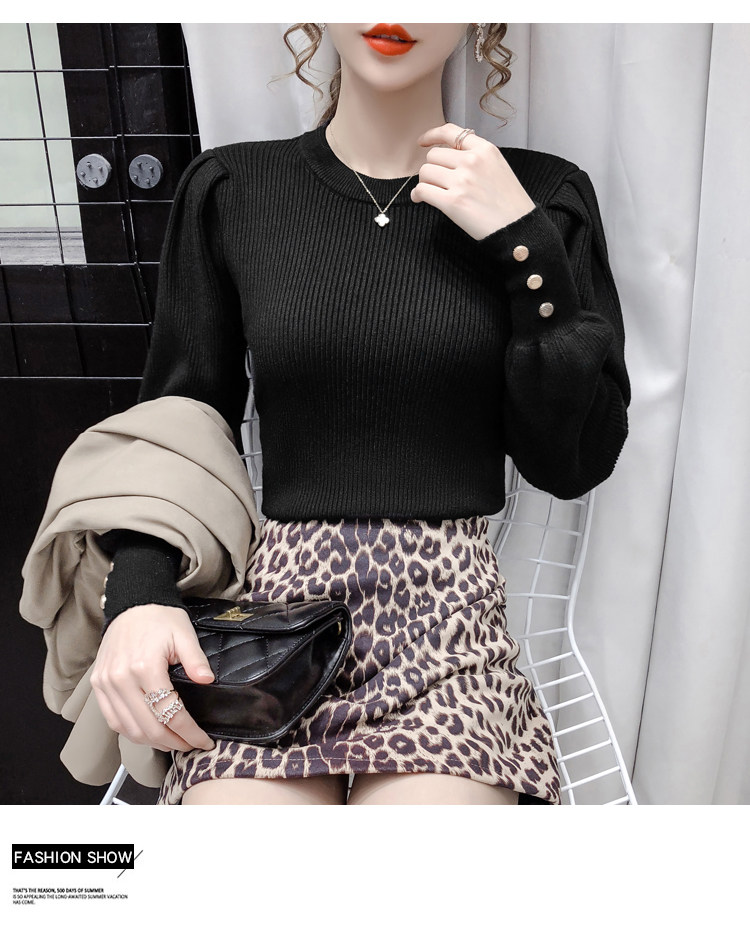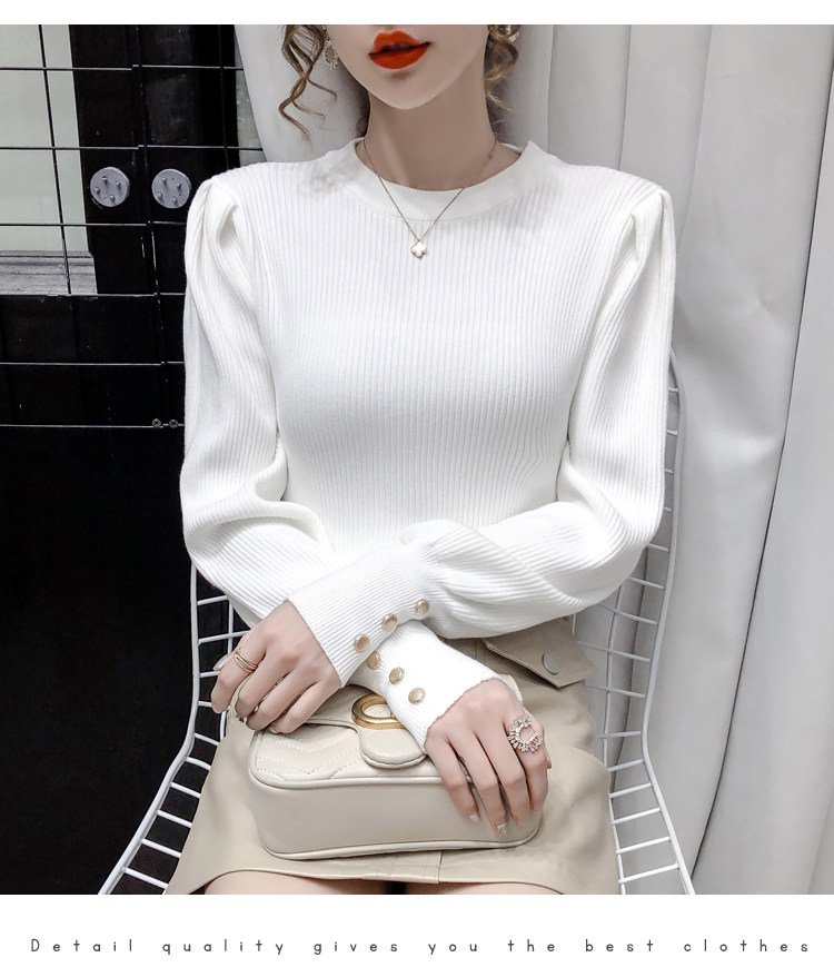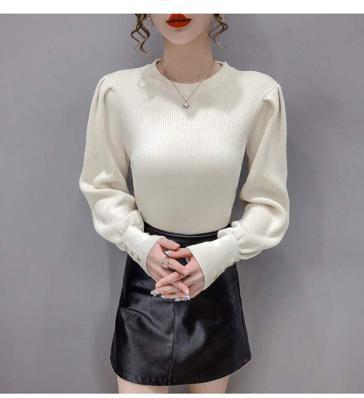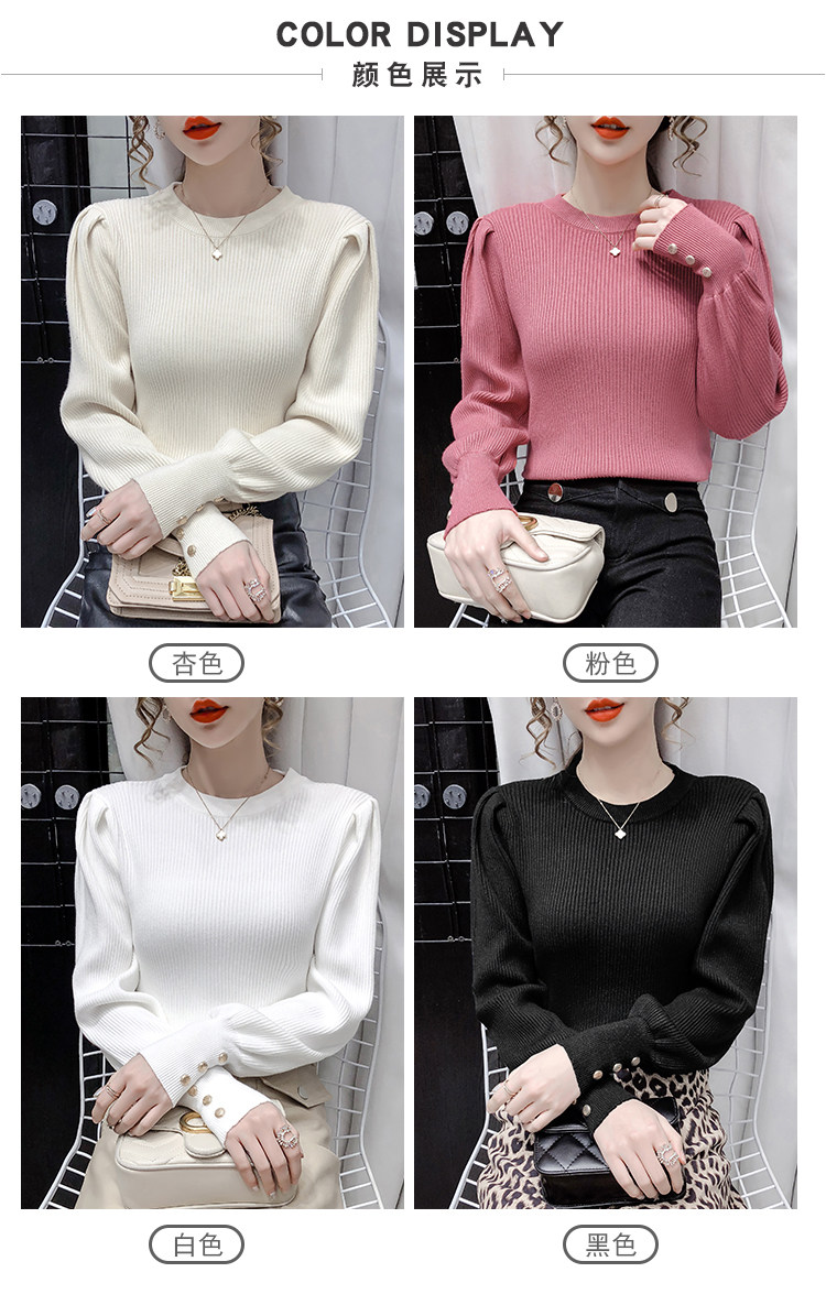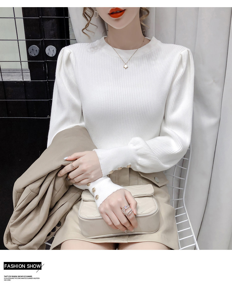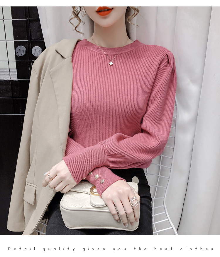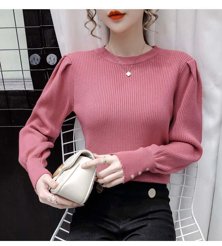 Трикотажный демисезонный свитер, приталенная базовая приятная телу футболка, 2020 года, в корейском стиле, в западном стиле, рукава фонарики