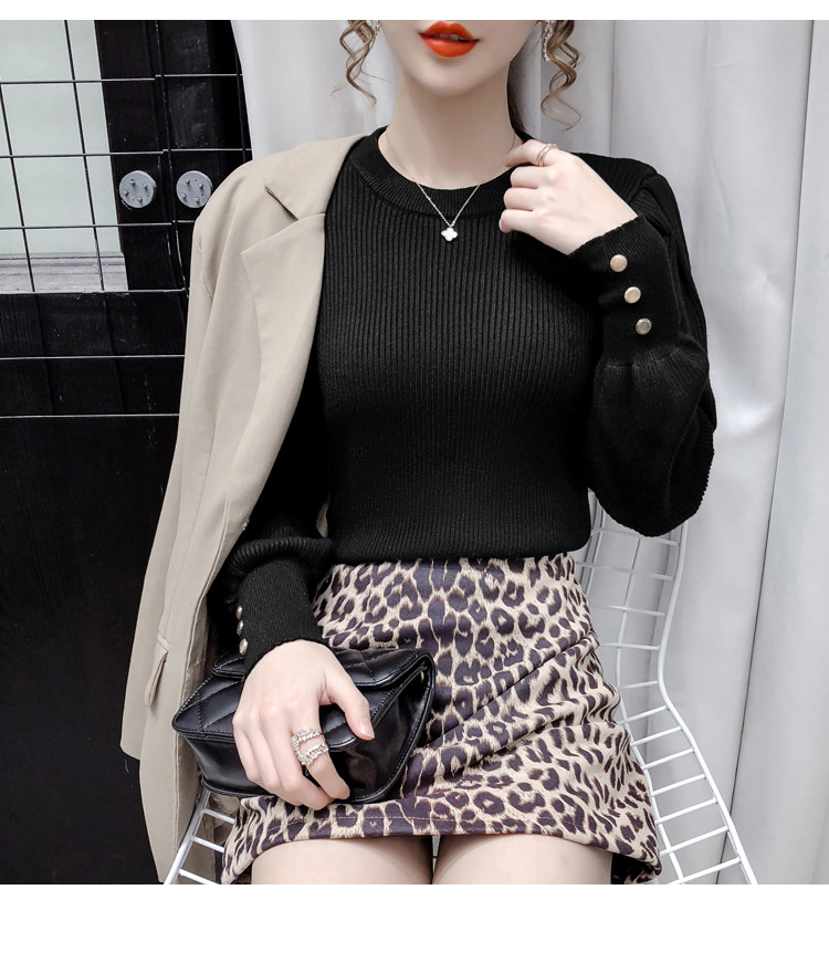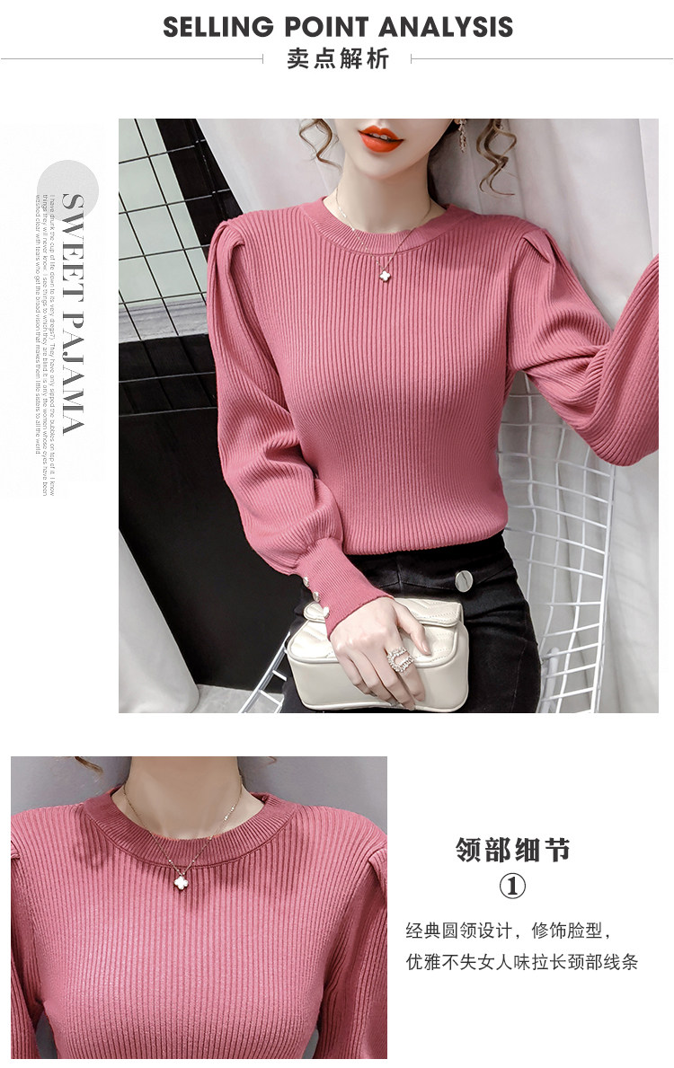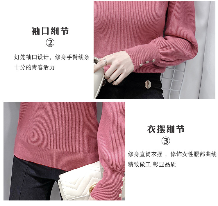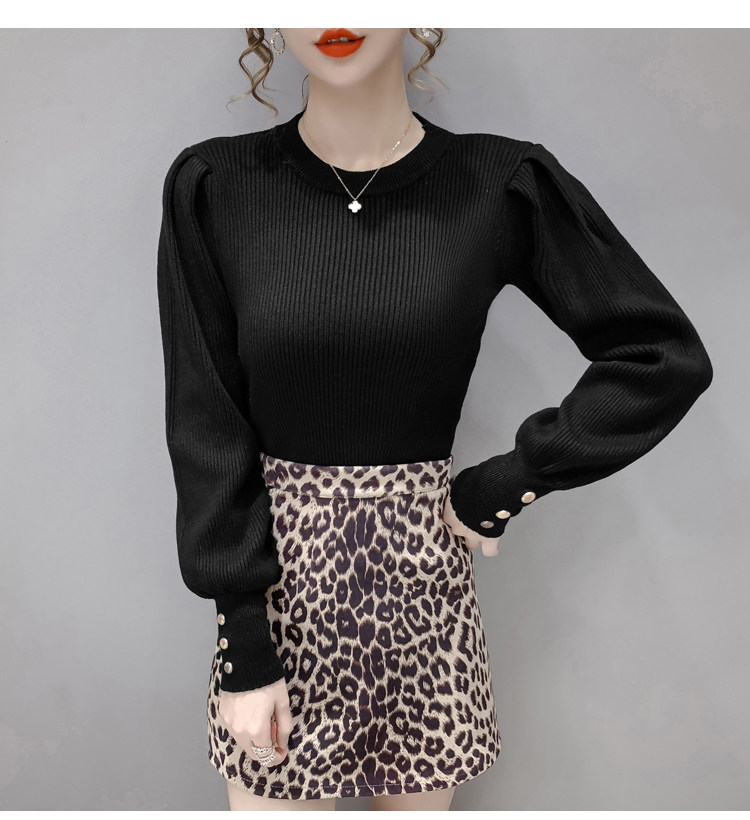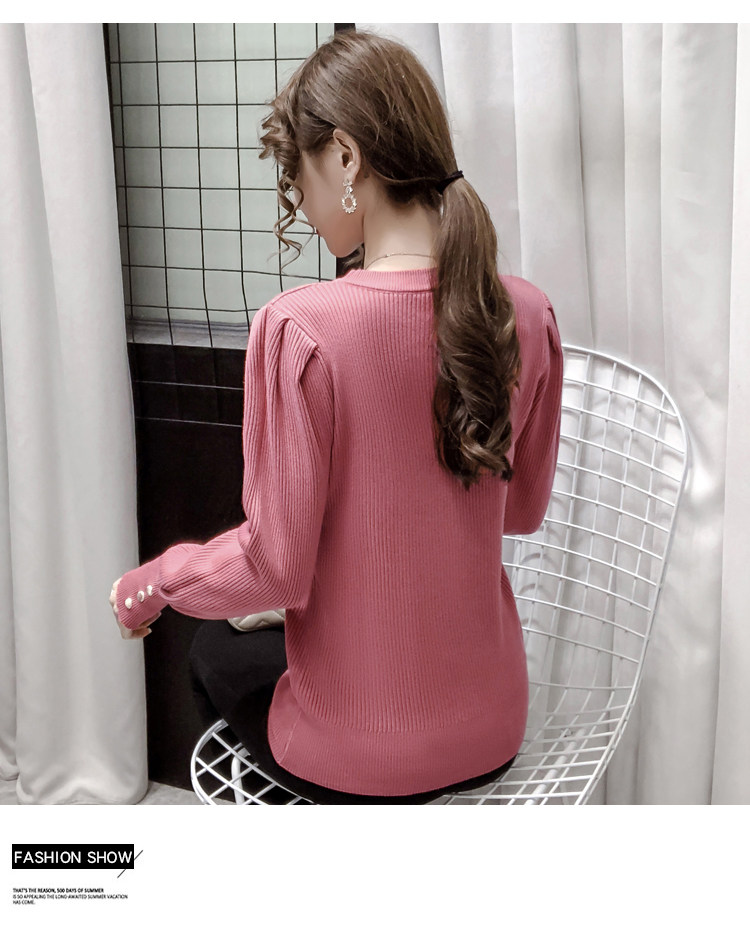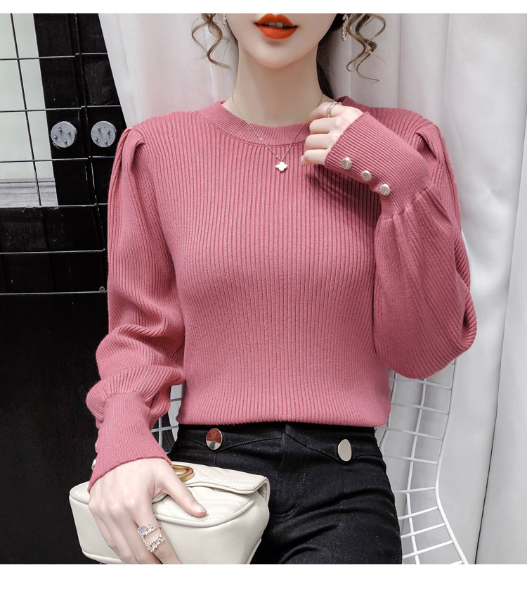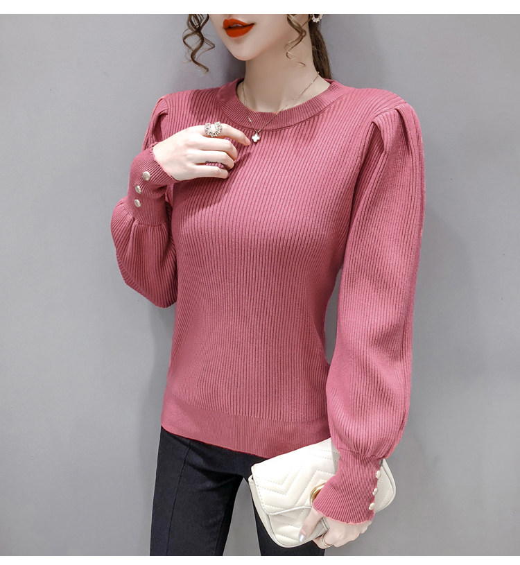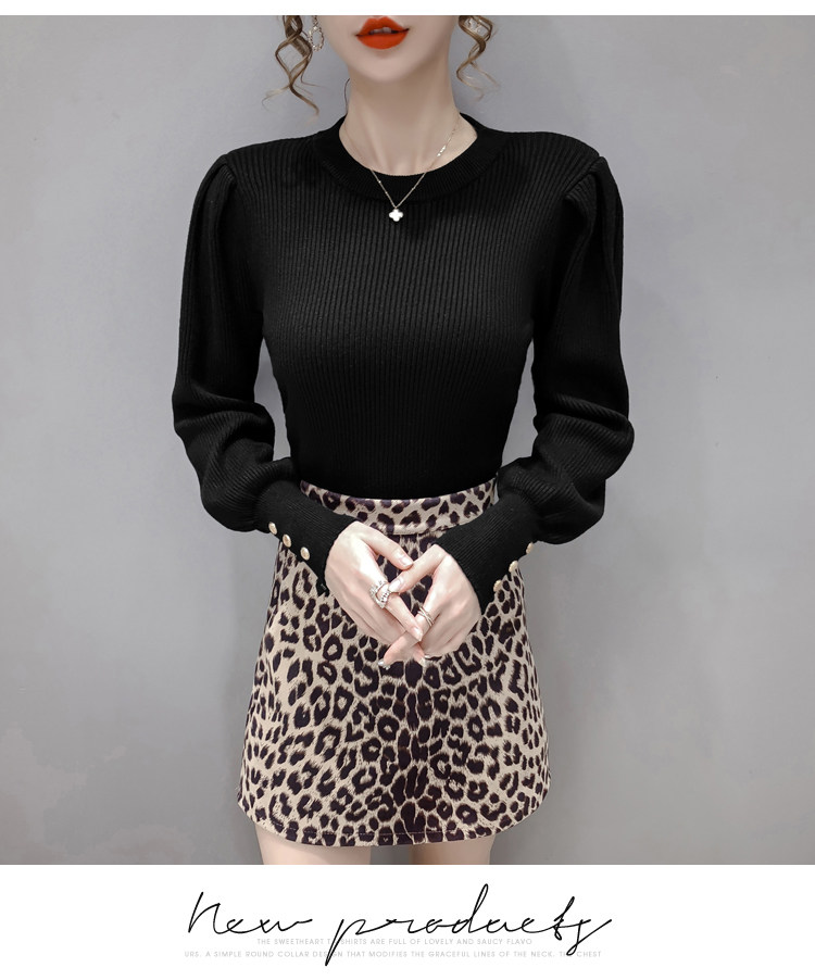 Трикотажный демисезонный свитер, приталенная базовая приятная телу футболка, 2020 года, в корейском стиле, в западном стиле, рукава фонарики