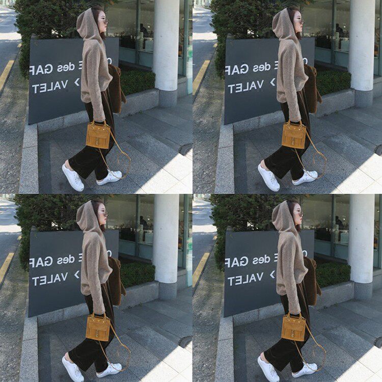Осенняя трикотажная толстовка с капюшоном, свитер, короткий лонгслив, комплект, базовая куртка, 2020, оверсайз