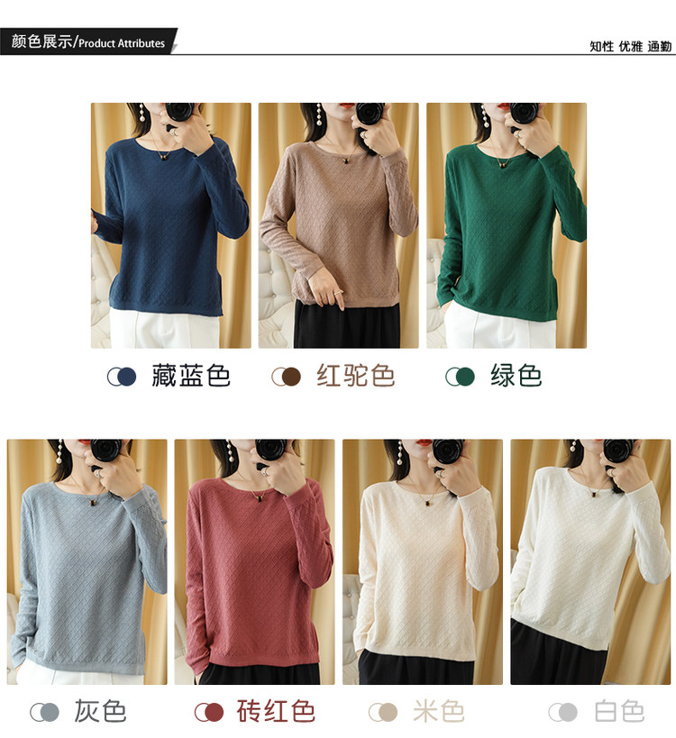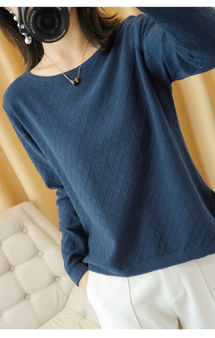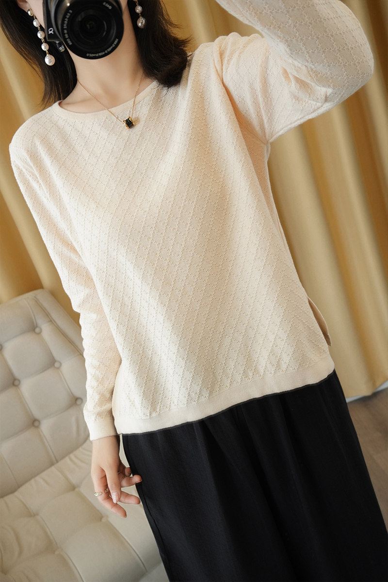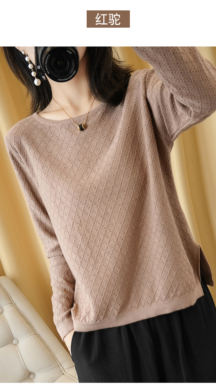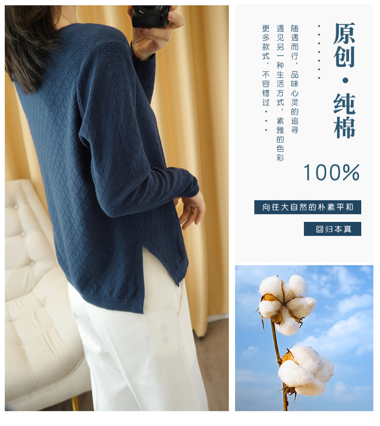 Хлопковый трикотажный свитер с круглым воротником, базовый лонгслив, 100% хлопок, из хлопка и льна, большой размер