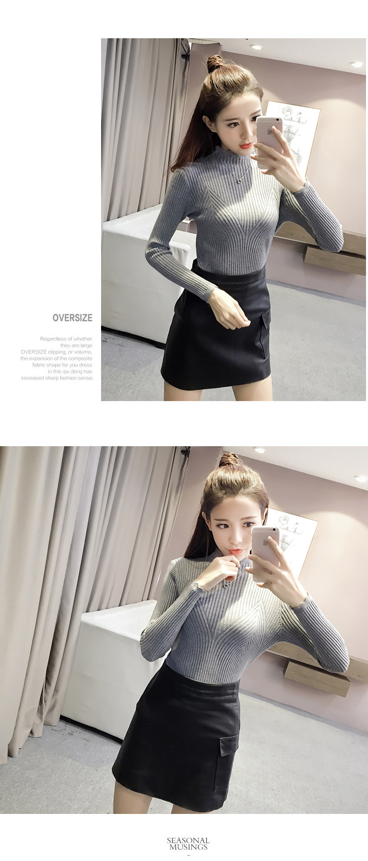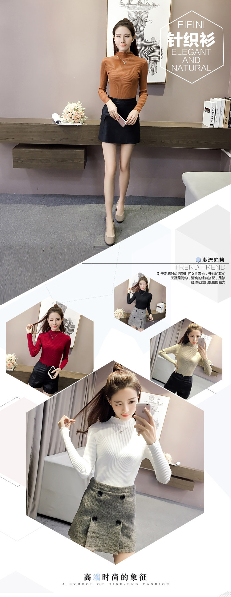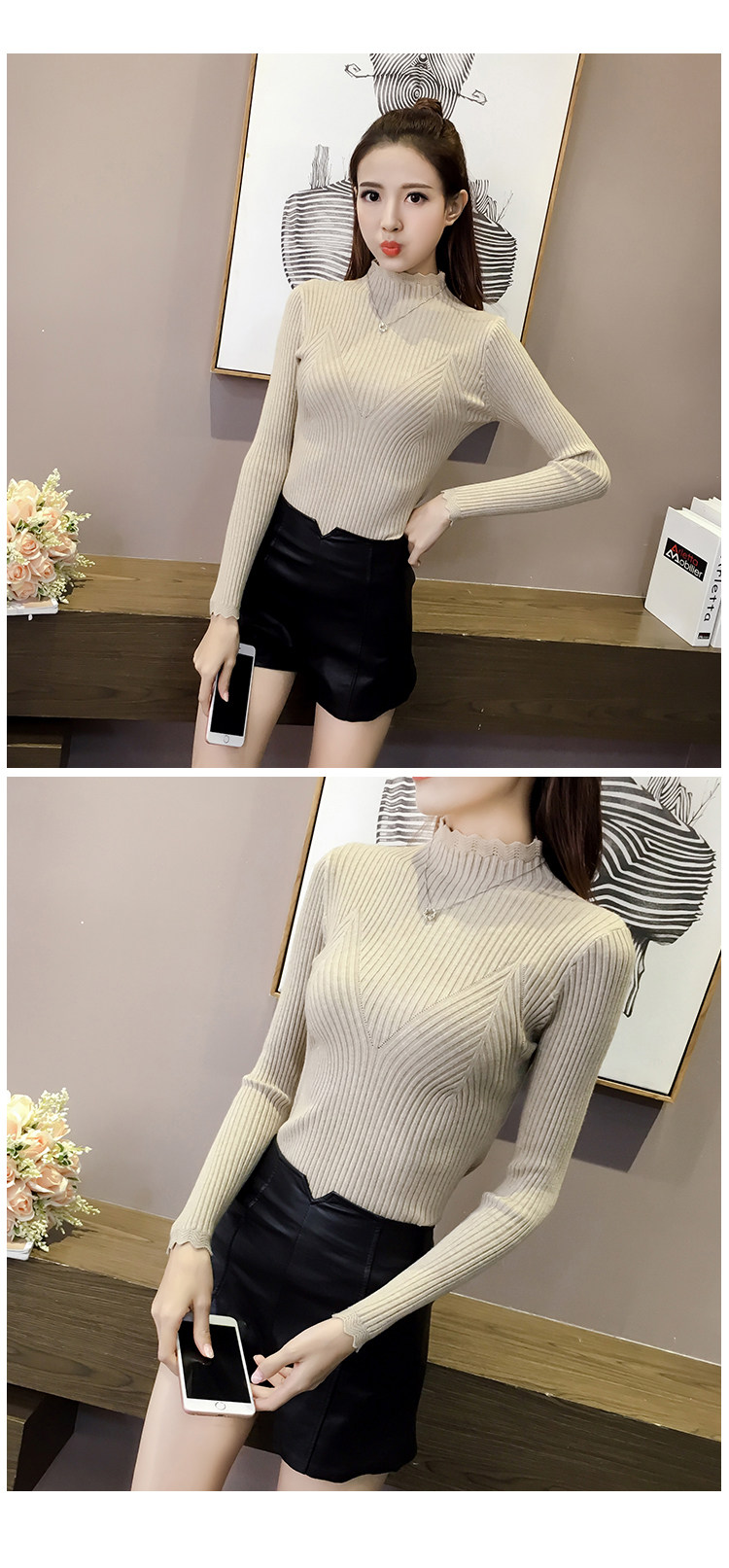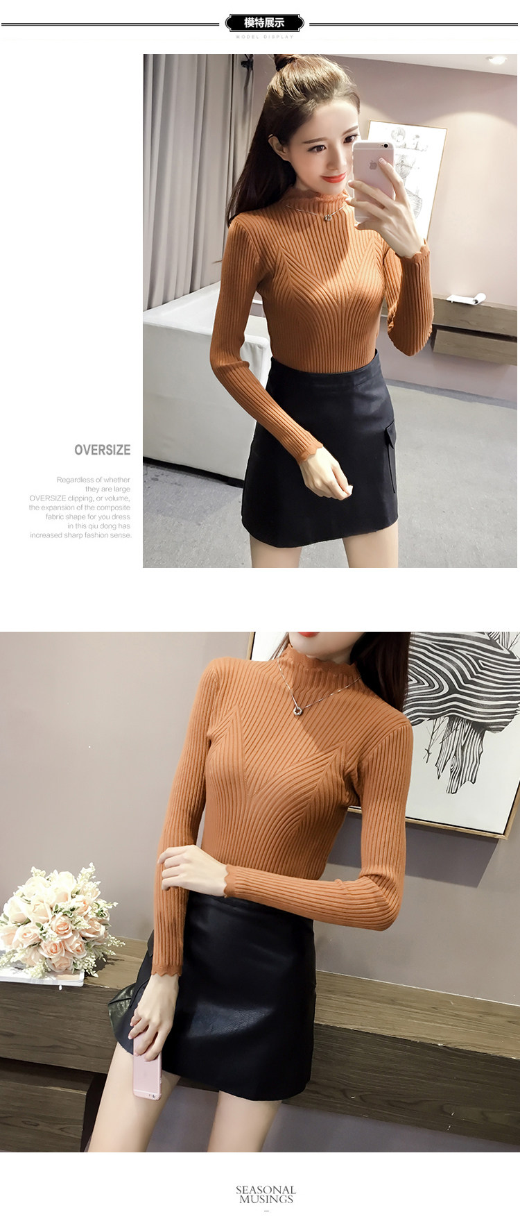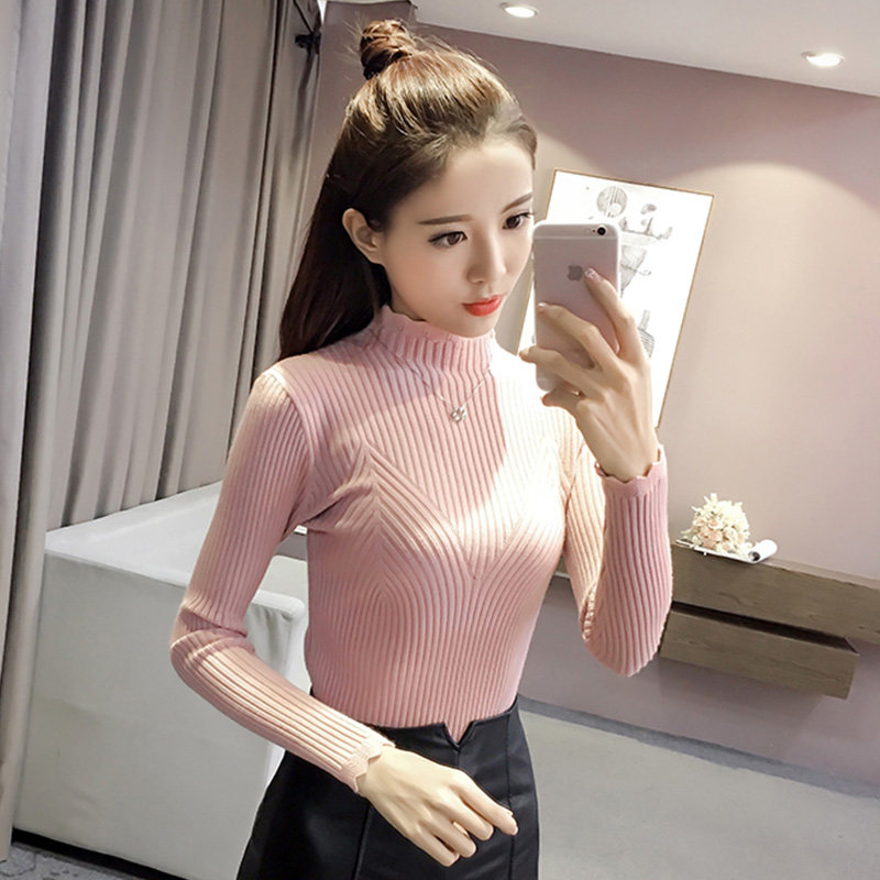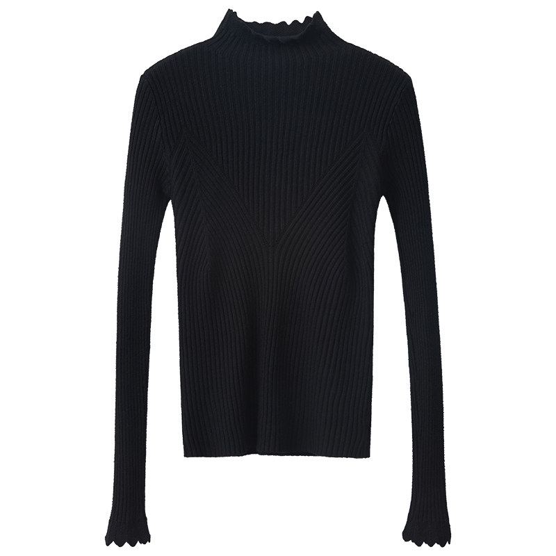 Утепленный трикотажный демисезонный приталенный лонгслив, черный цветной свитер, 2024 года, высокий воротник
