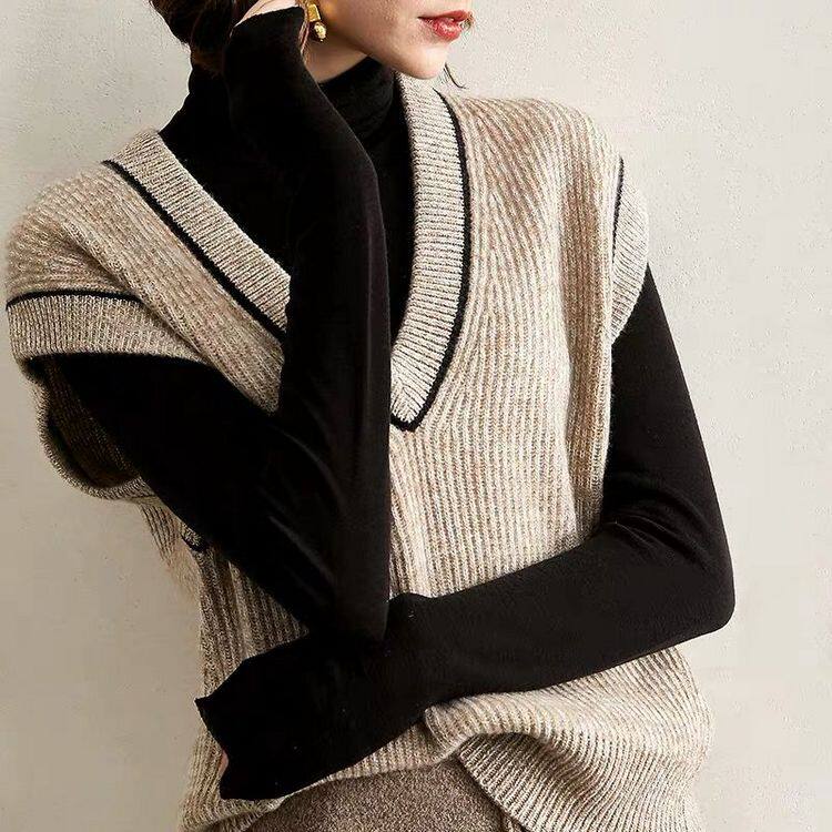 Демисезонный трикотажный свитер, жилет, шерстяная майка топ без рукавов, 2020, свободный крой, V-образный вырез