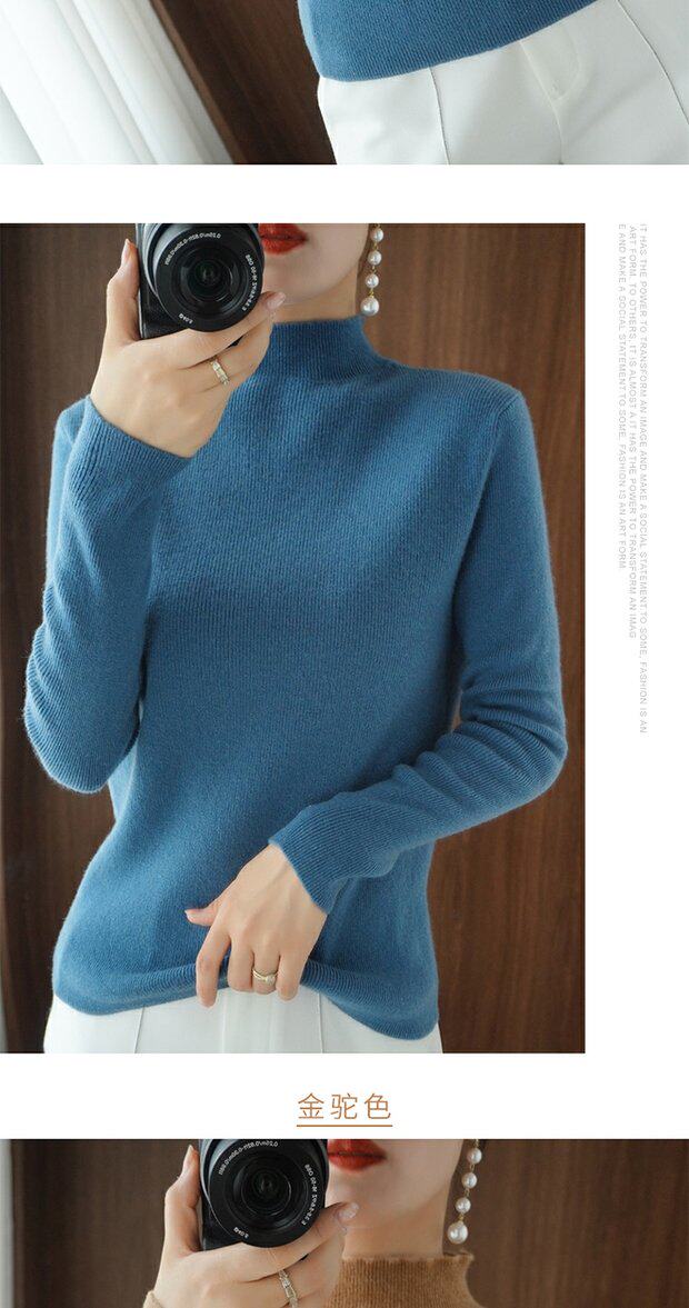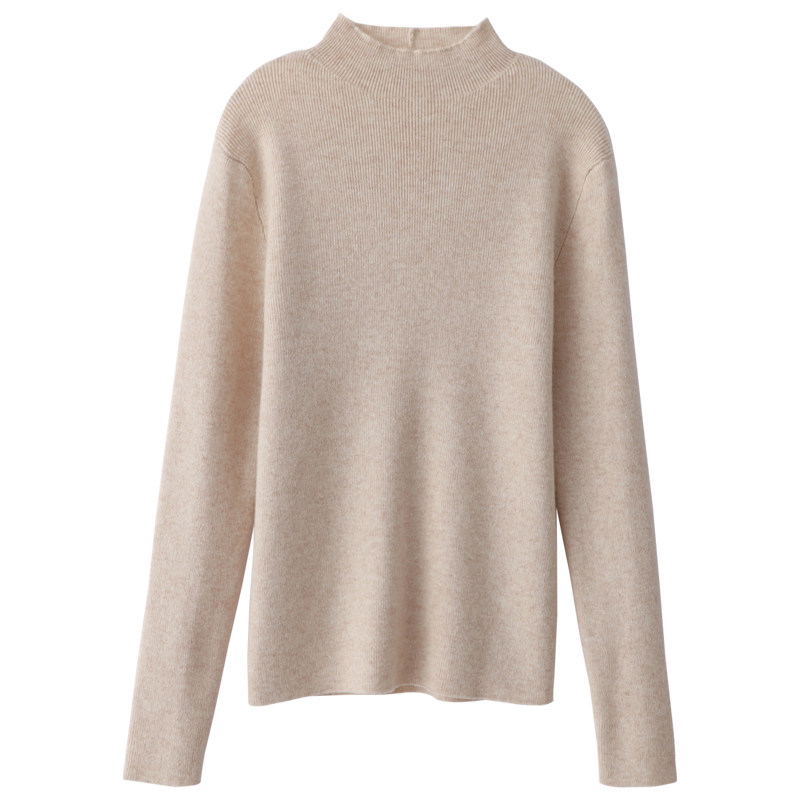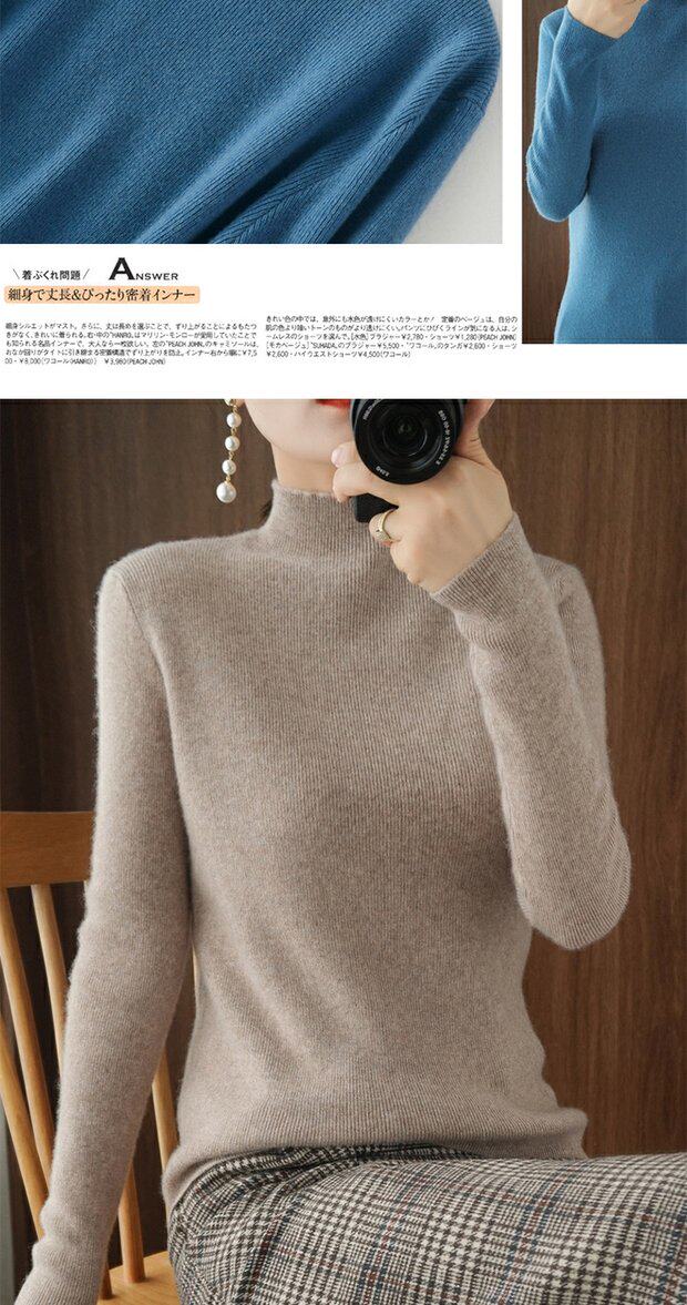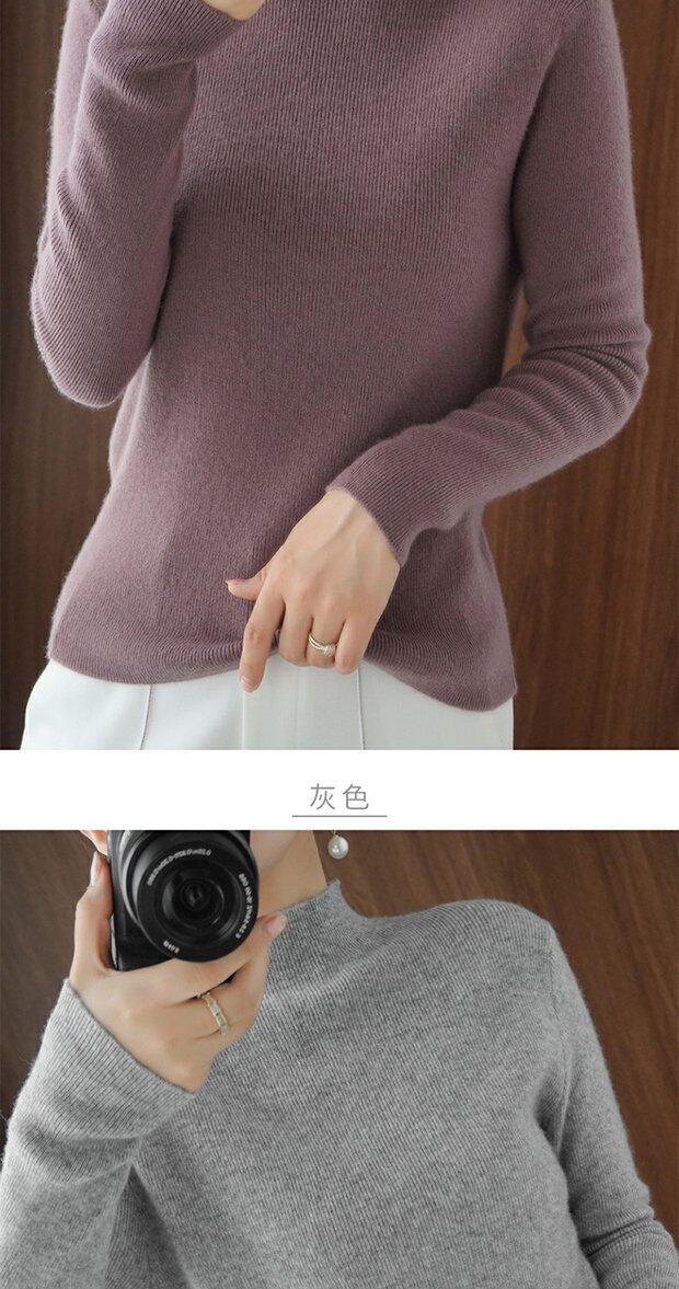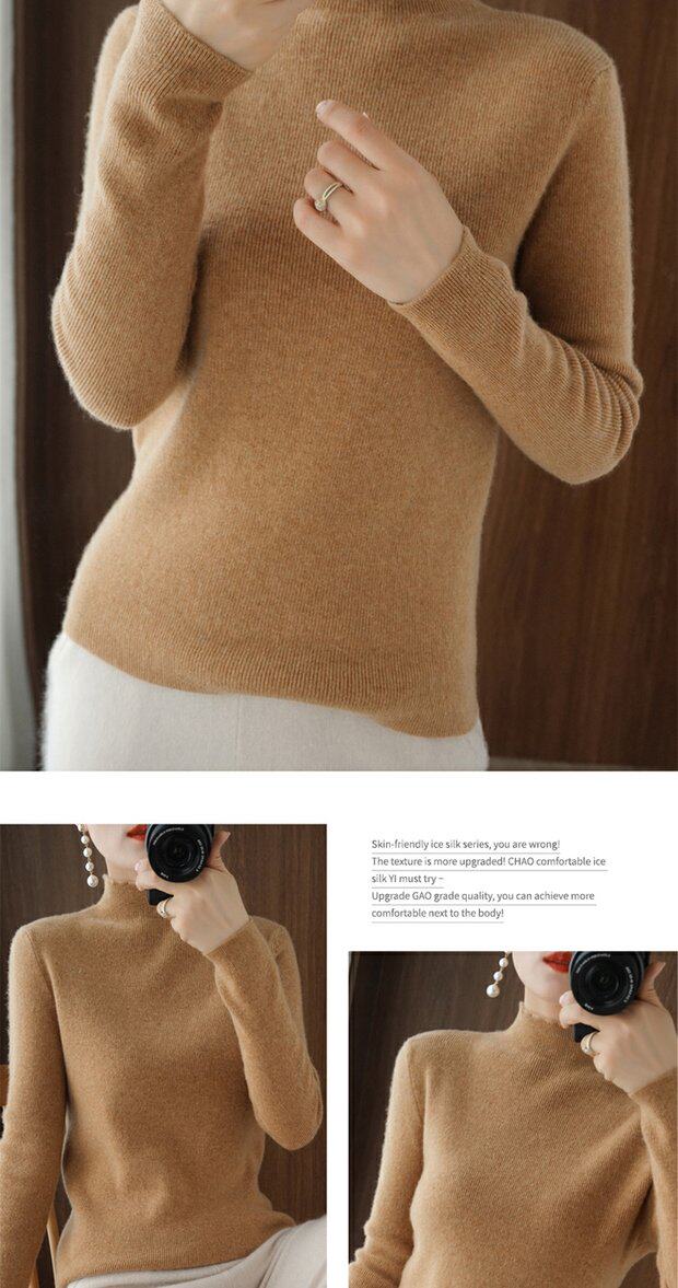 Демисезонный кашемировый приталенный трикотажный свитер, высокий воротник