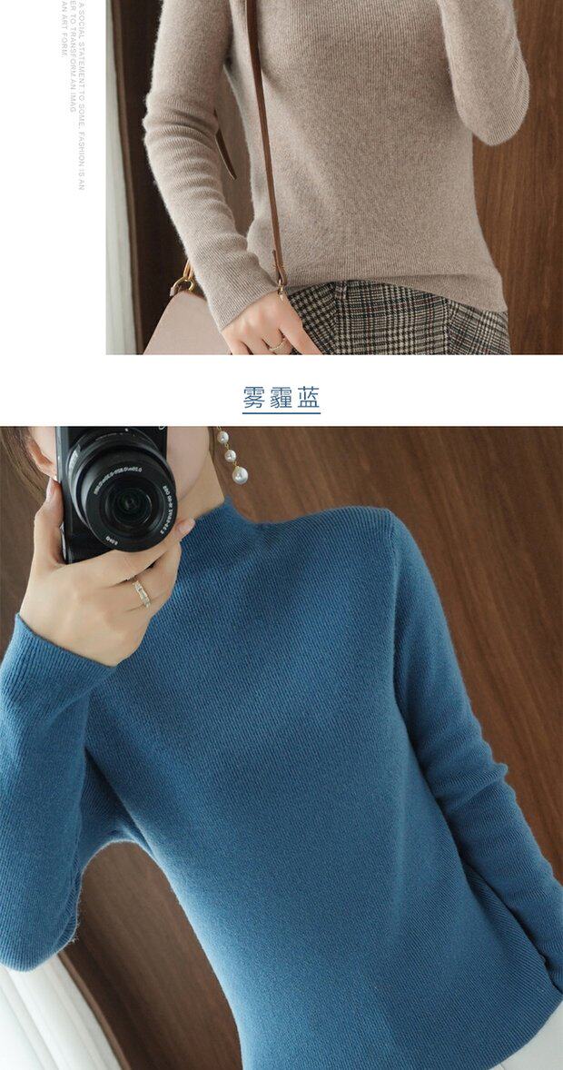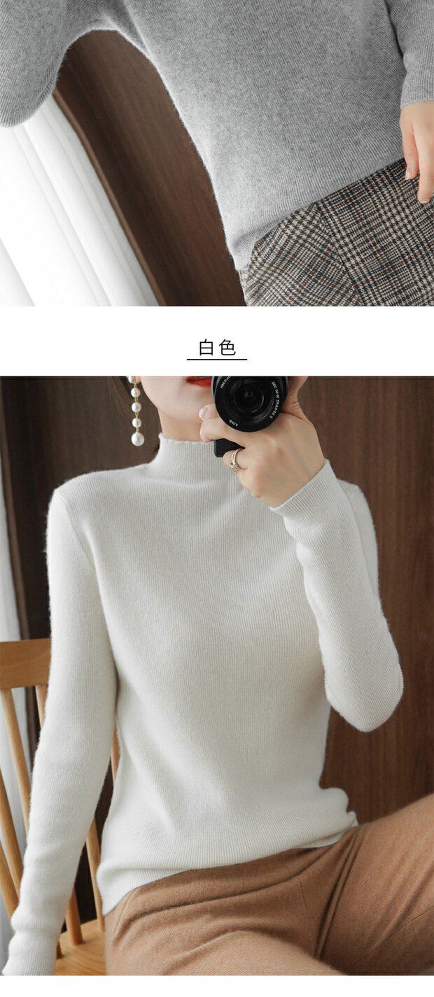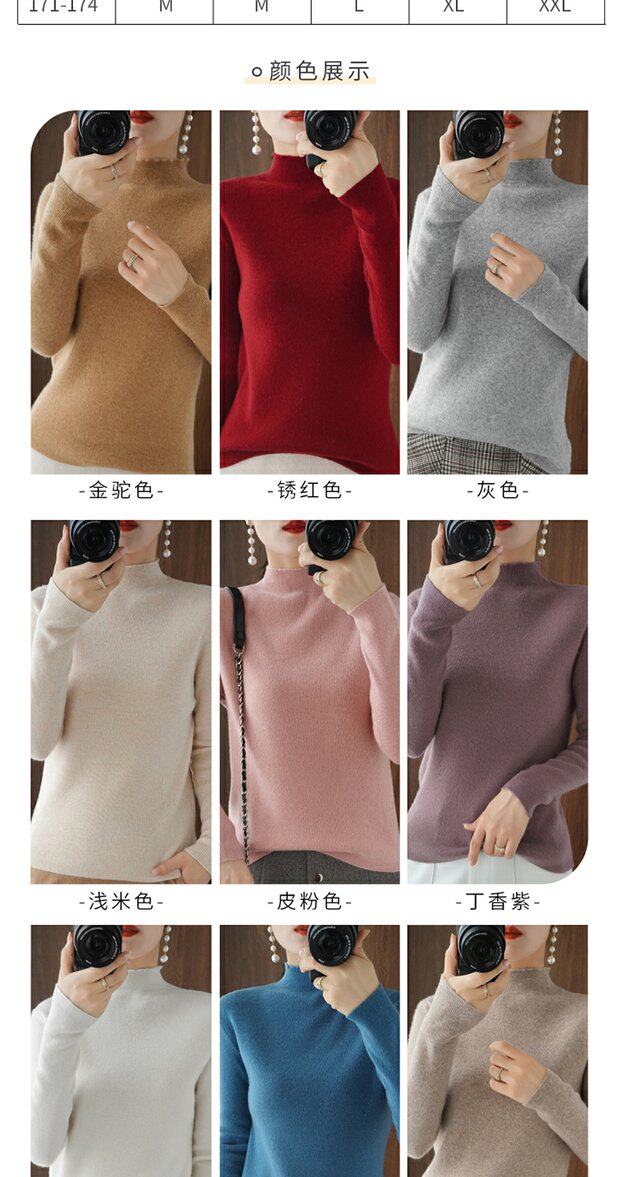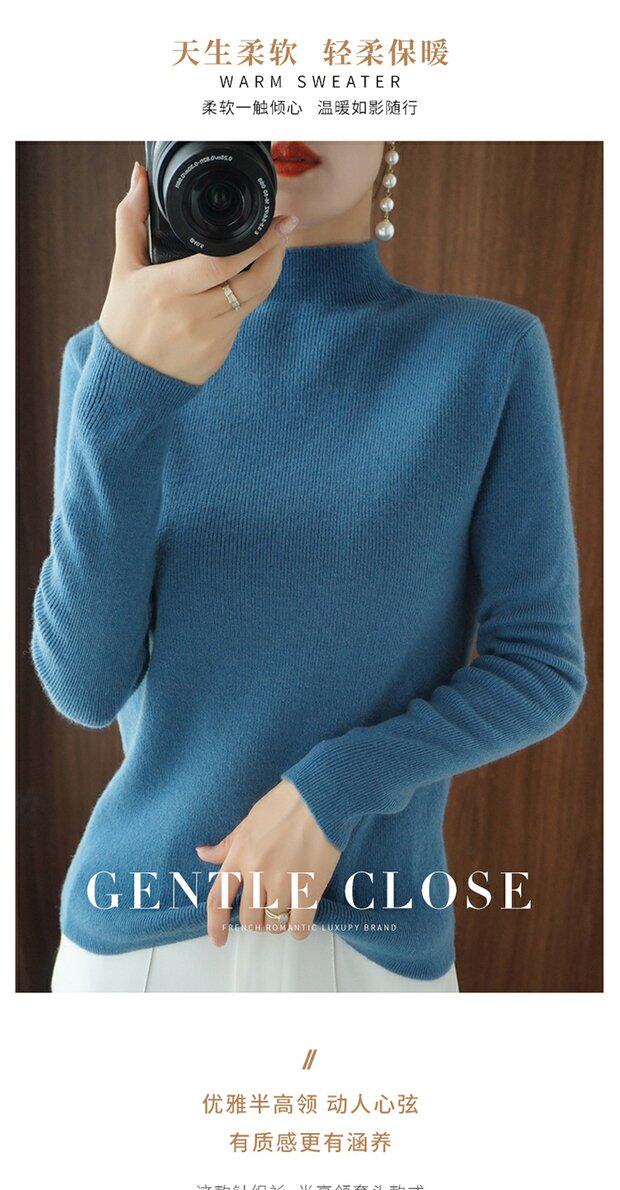 Демисезонный кашемировый приталенный трикотажный свитер, высокий воротник