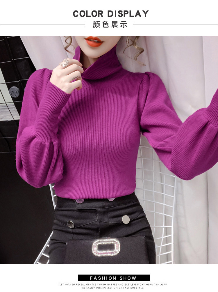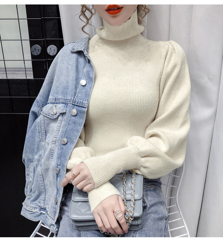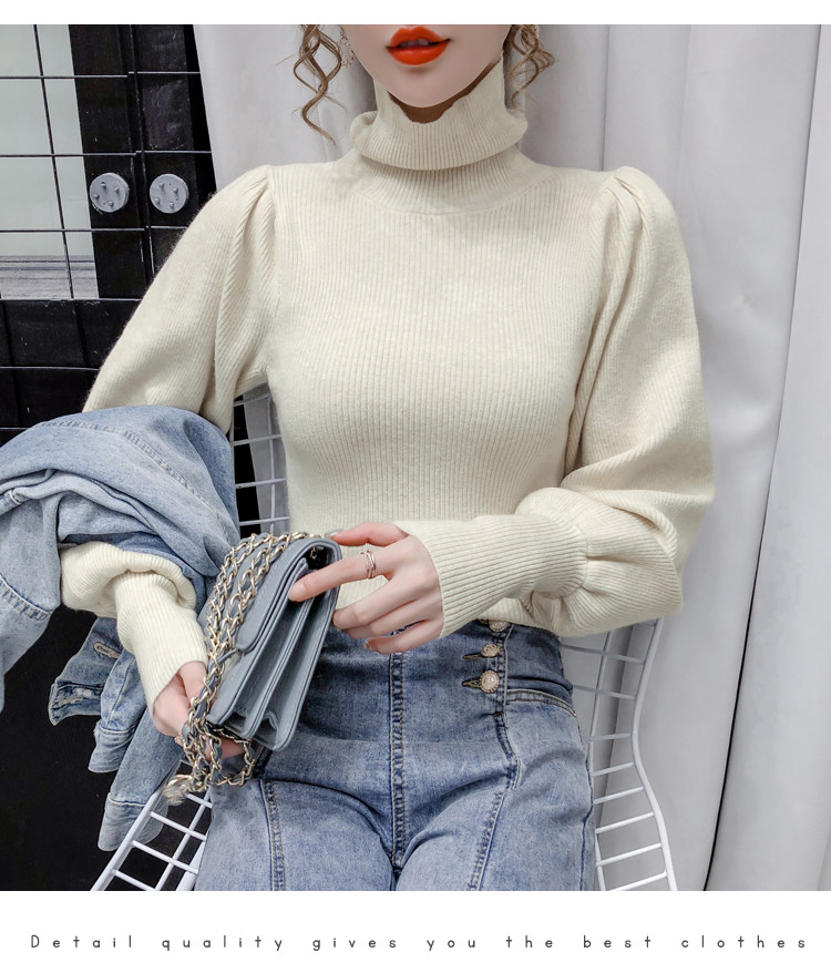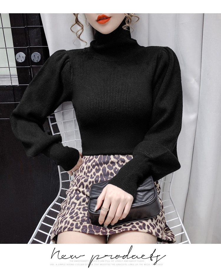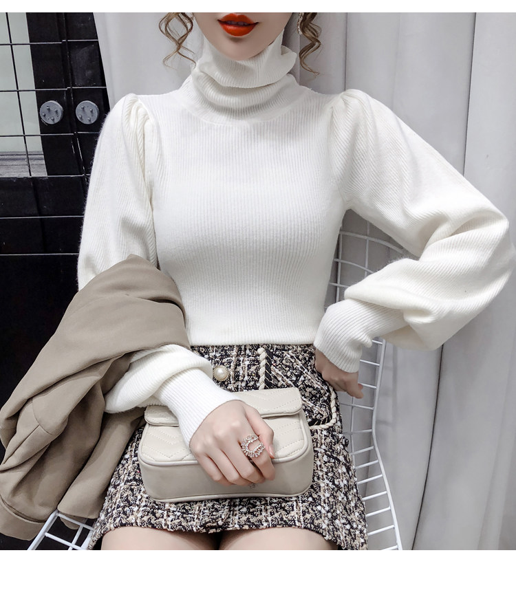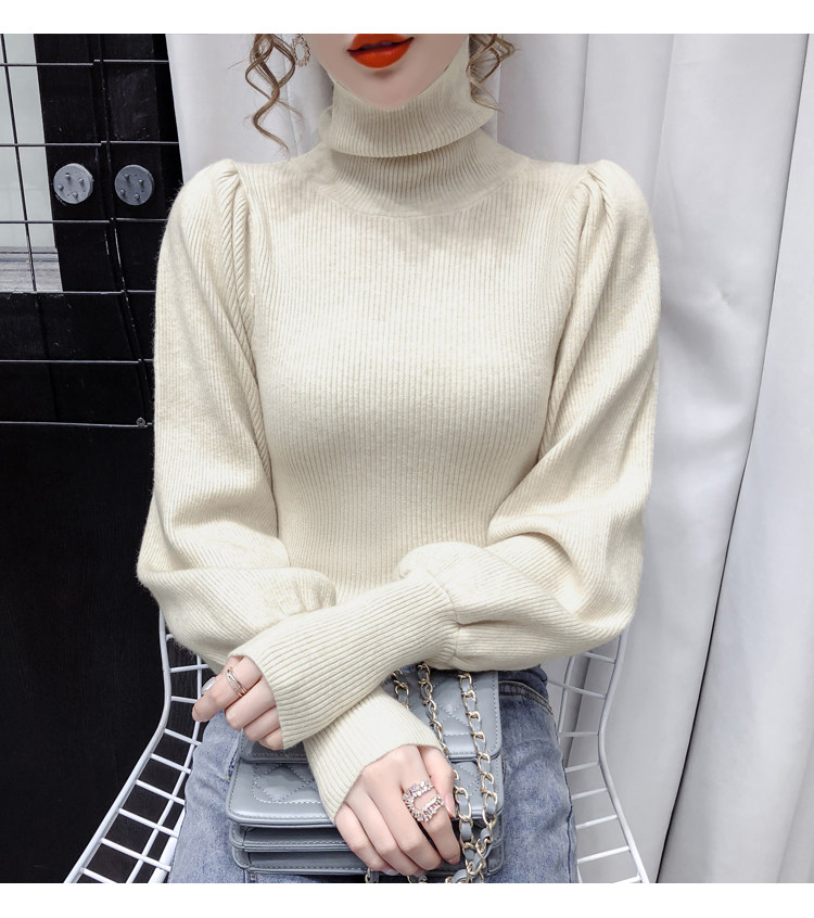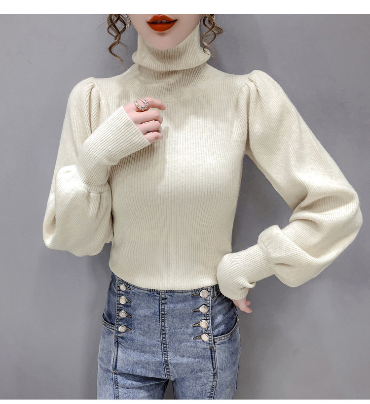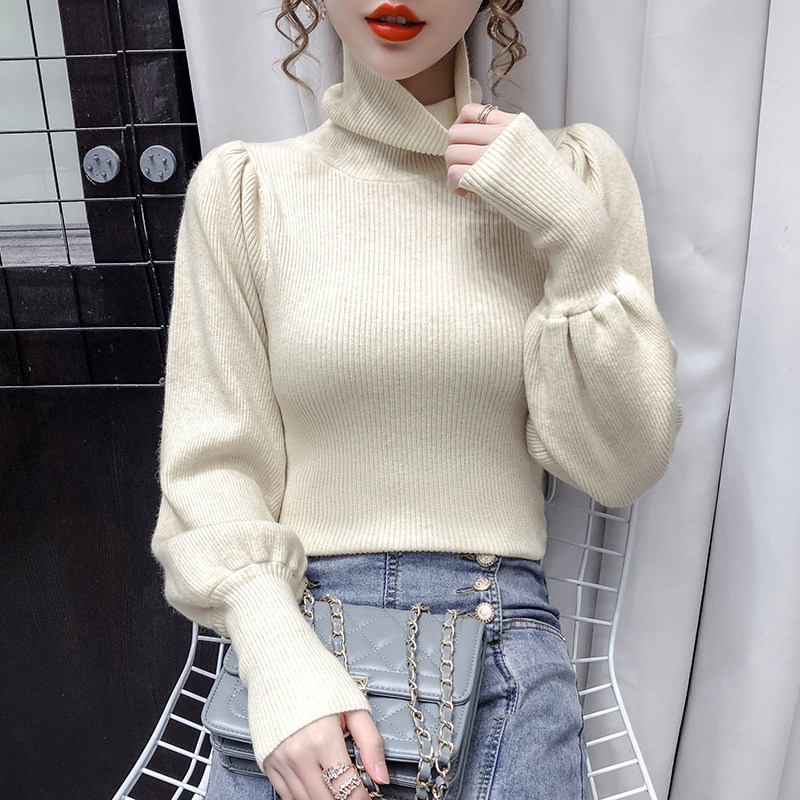 Демисезонный базовый трикотажный свитер, коллекция 2021, в корейском стиле, рукава фонарики, облегающий крой, в западном стиле