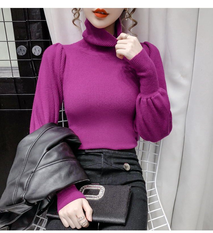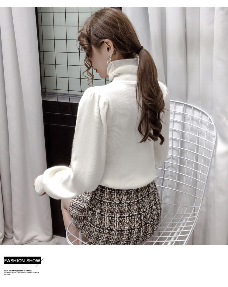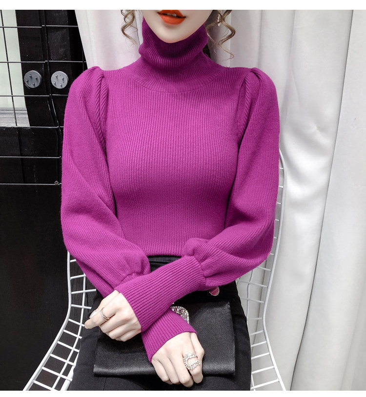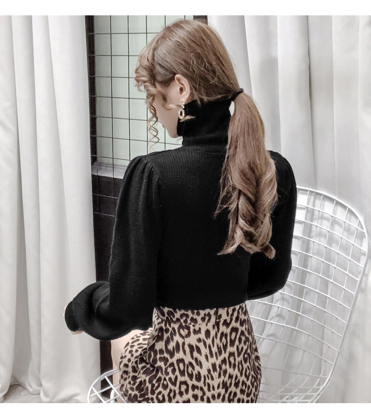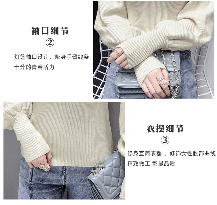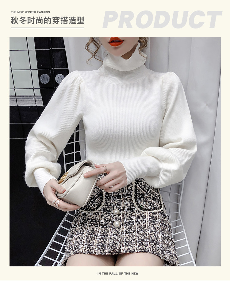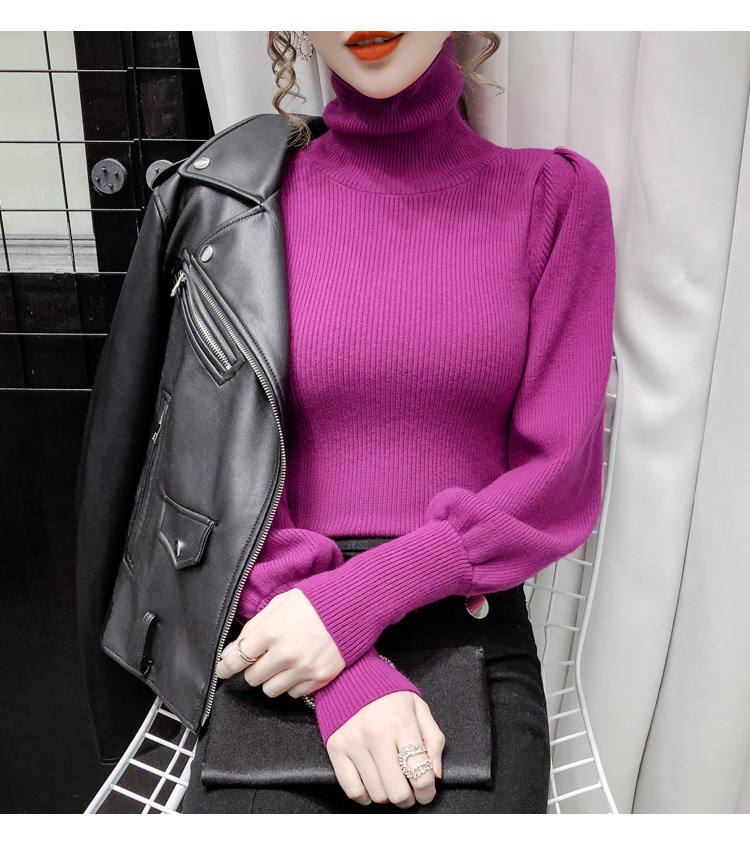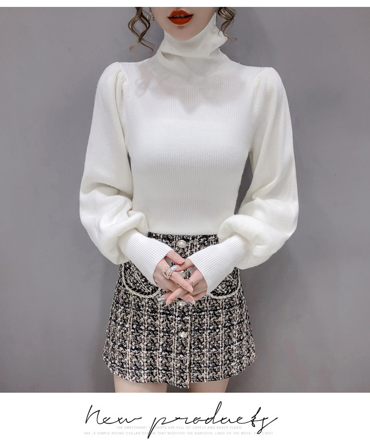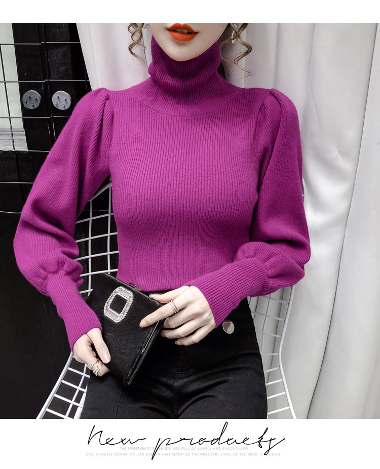 Демисезонный базовый трикотажный свитер, коллекция 2021, в корейском стиле, рукава фонарики, облегающий крой, в западном стиле
