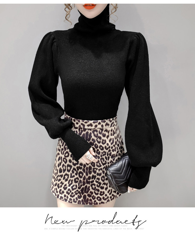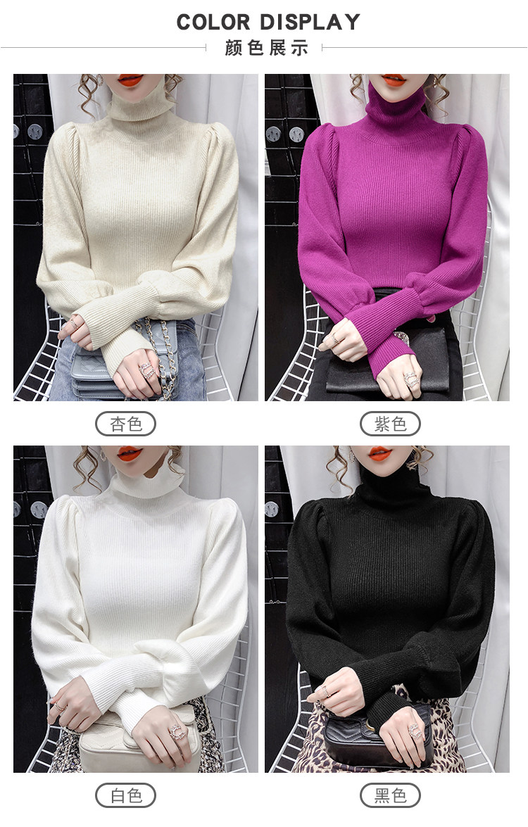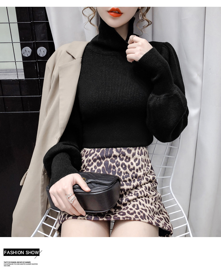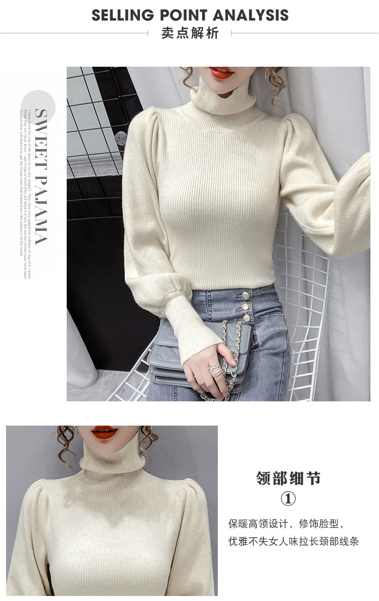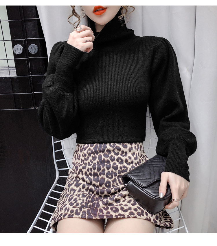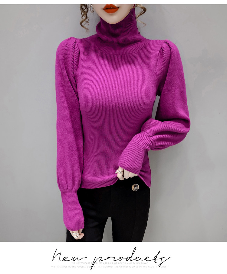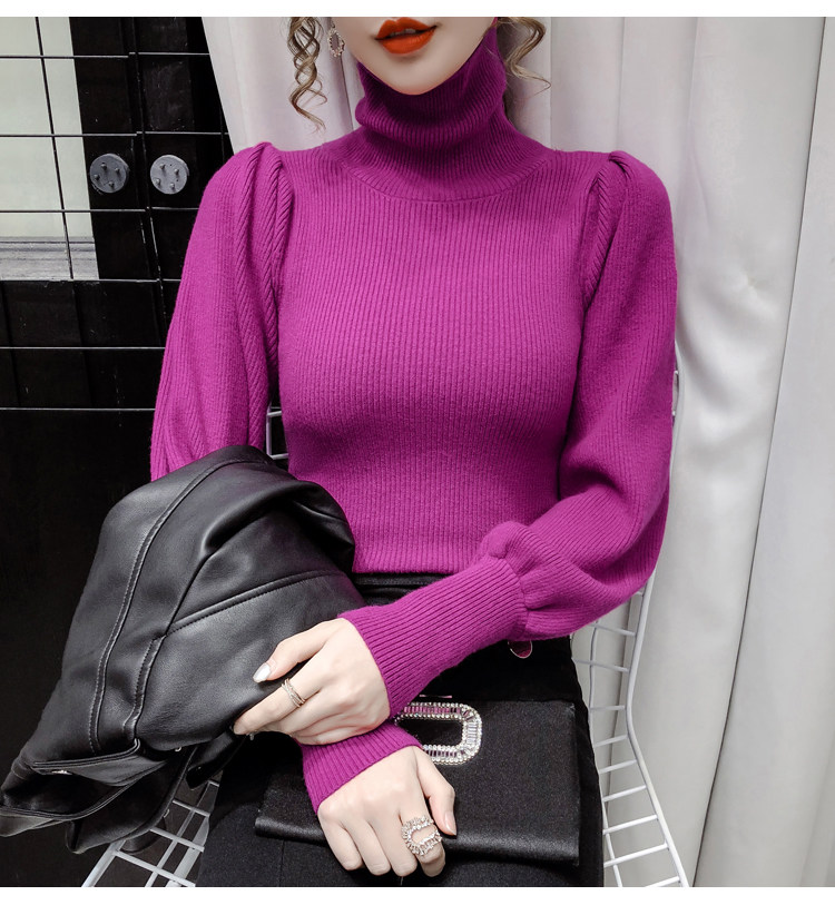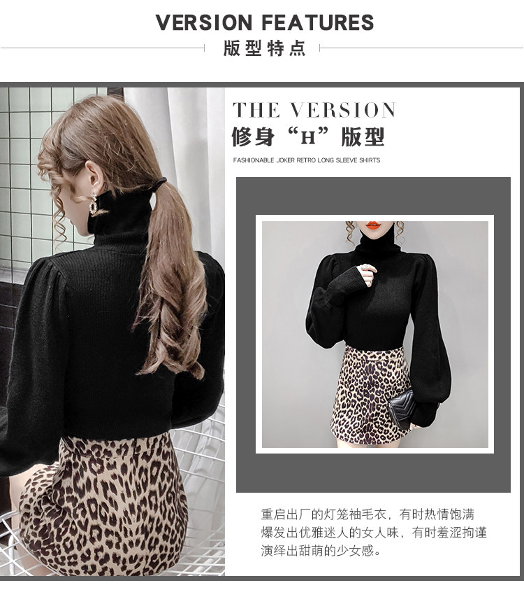 Демисезонный базовый трикотажный свитер, коллекция 2021, в корейском стиле, рукава фонарики, облегающий крой, в западном стиле