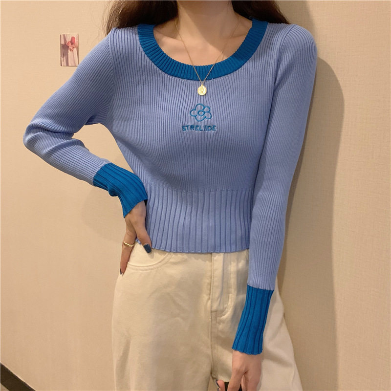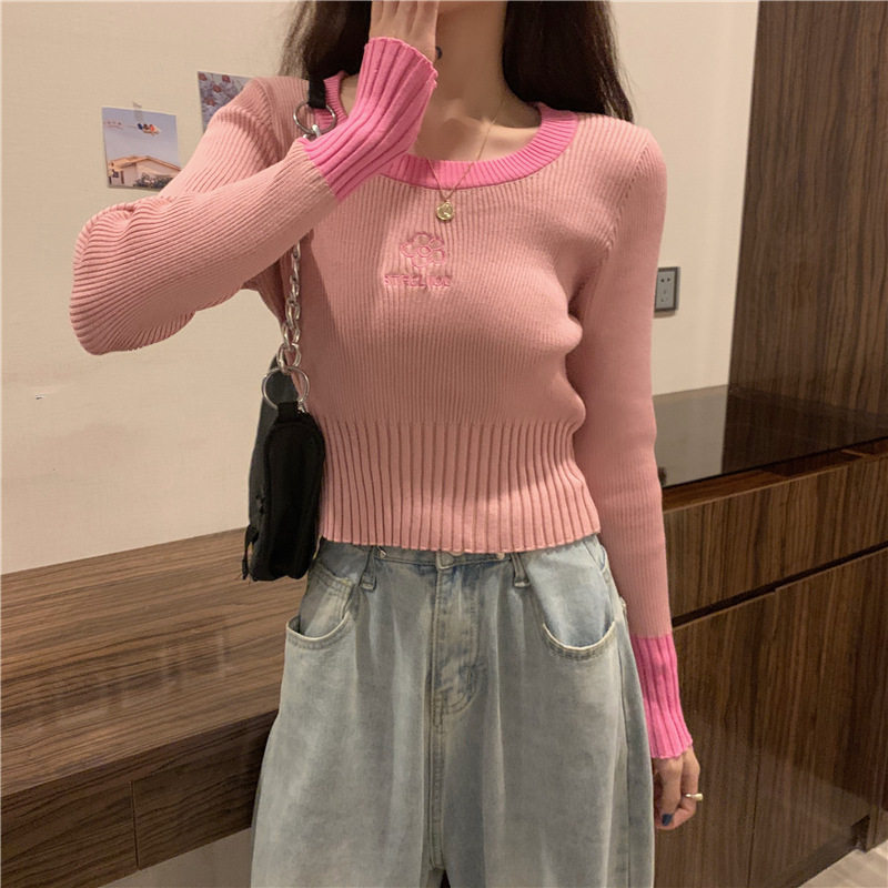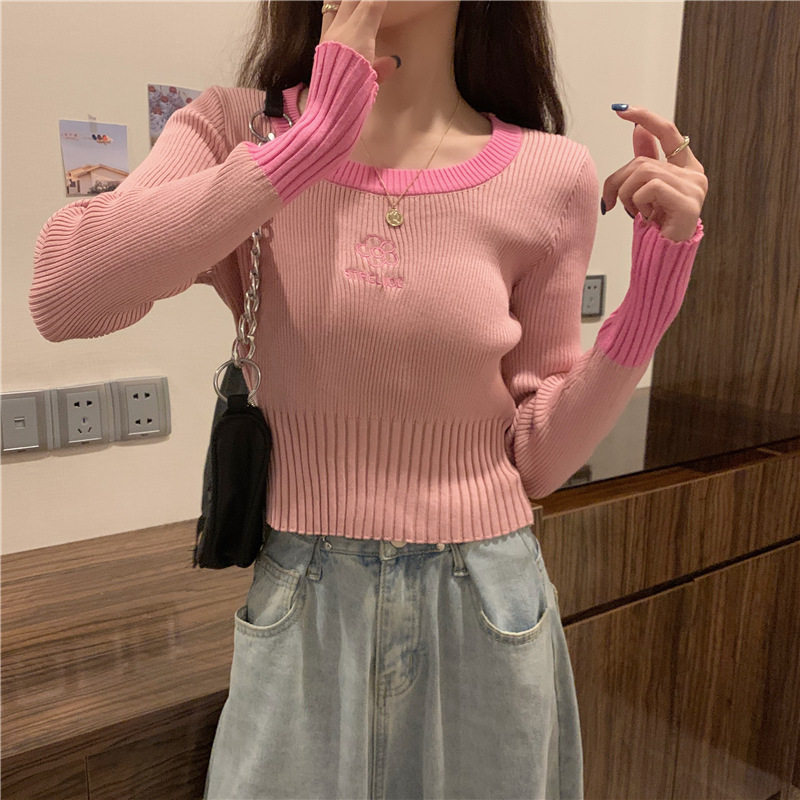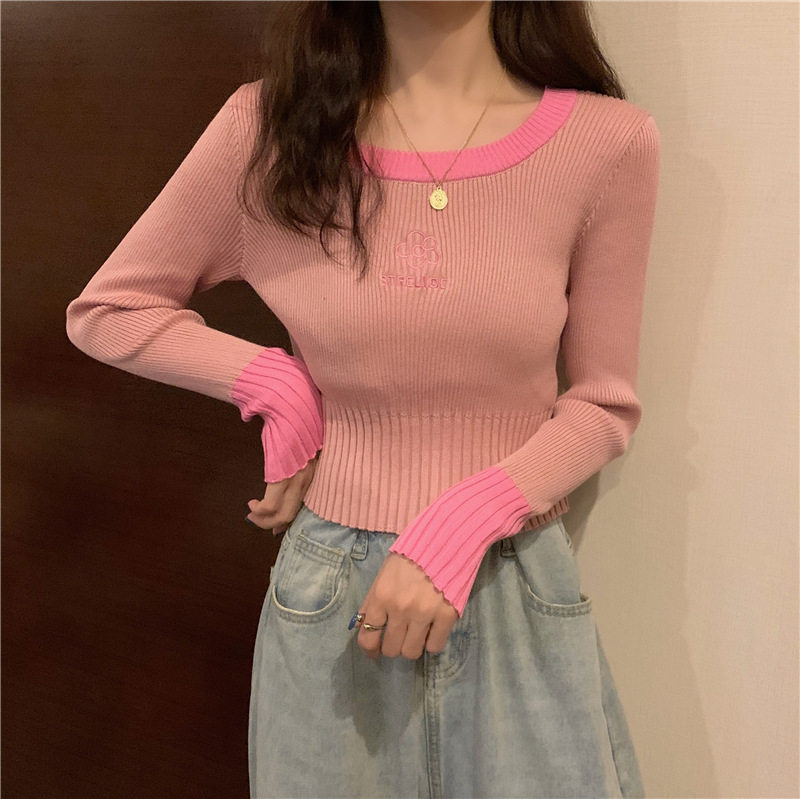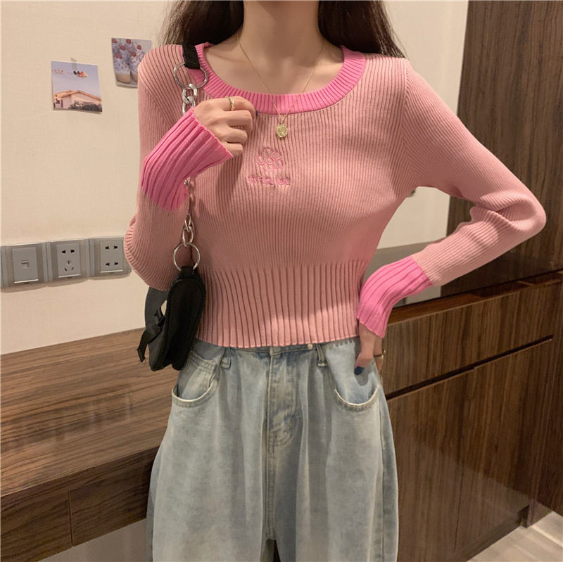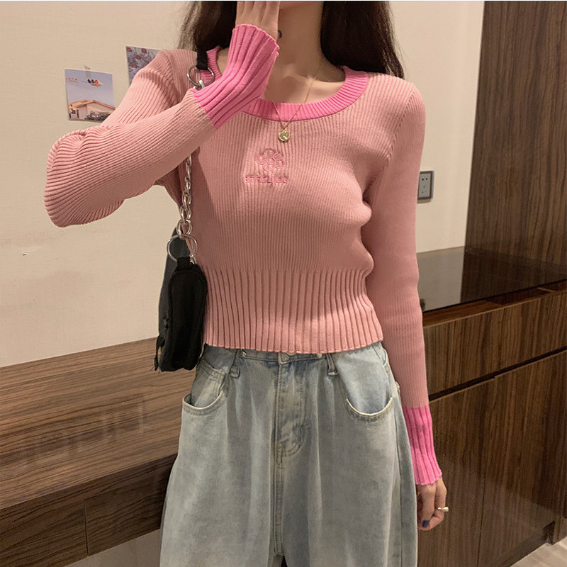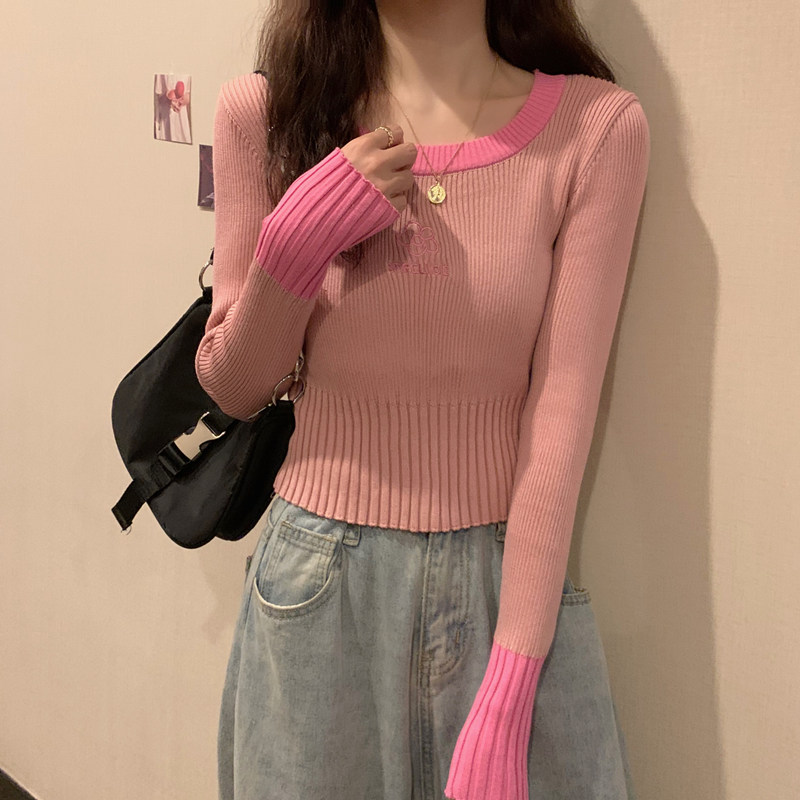Демисезонный приталенный трикотажный лонгслив, короткий базовый свитер, в западном стиле