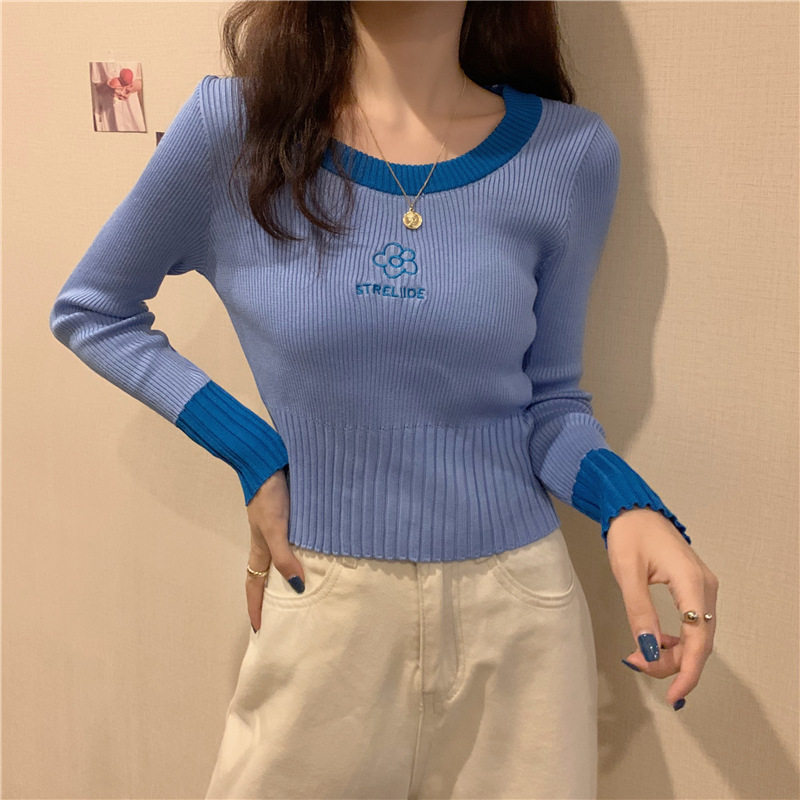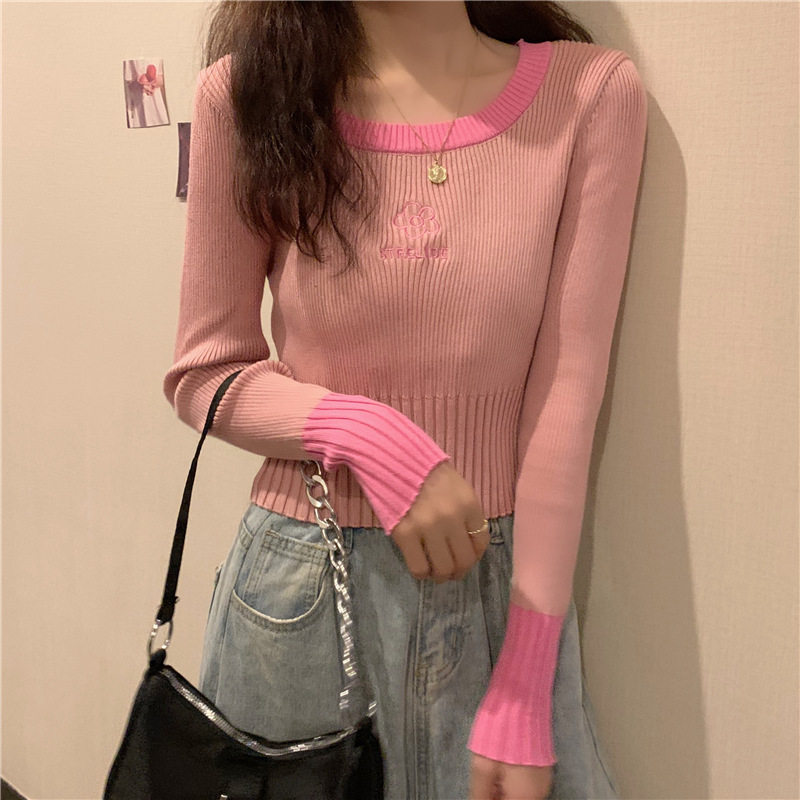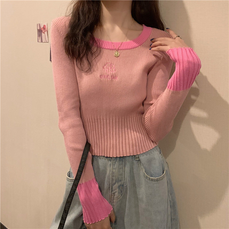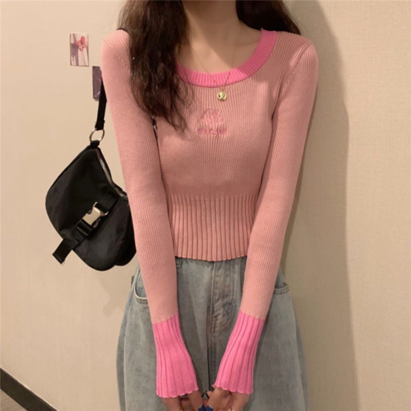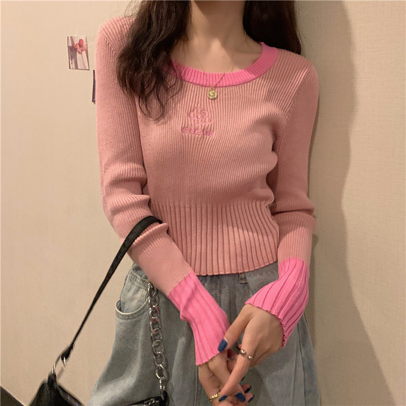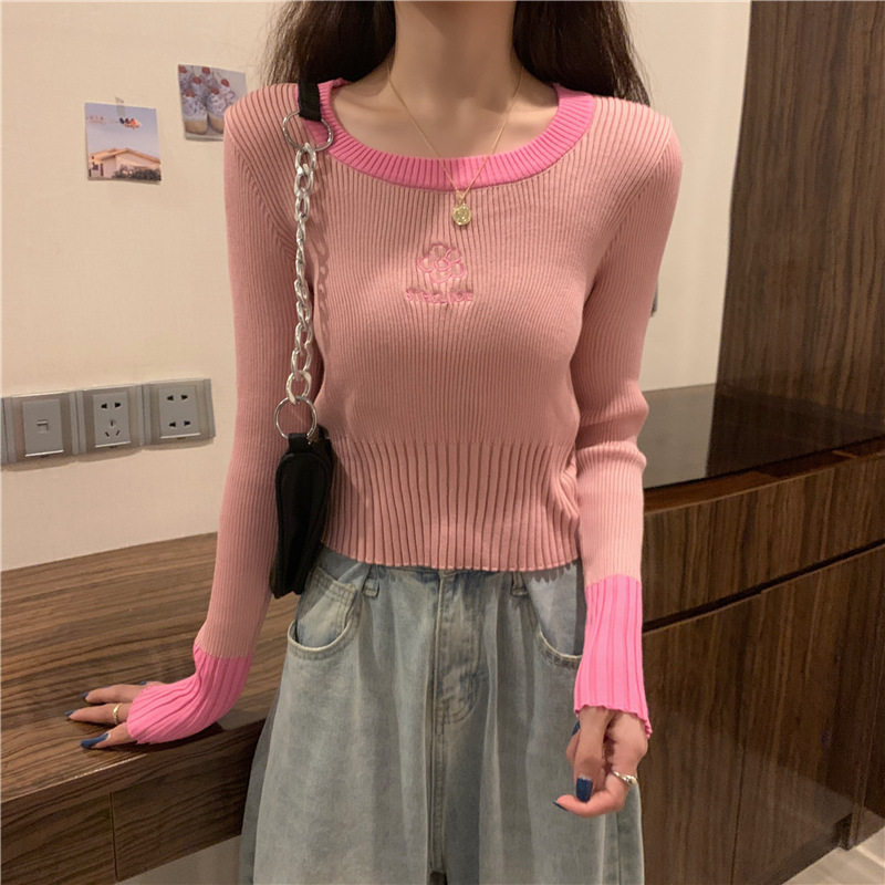 Демисезонный приталенный трикотажный лонгслив, короткий базовый свитер, в западном стиле